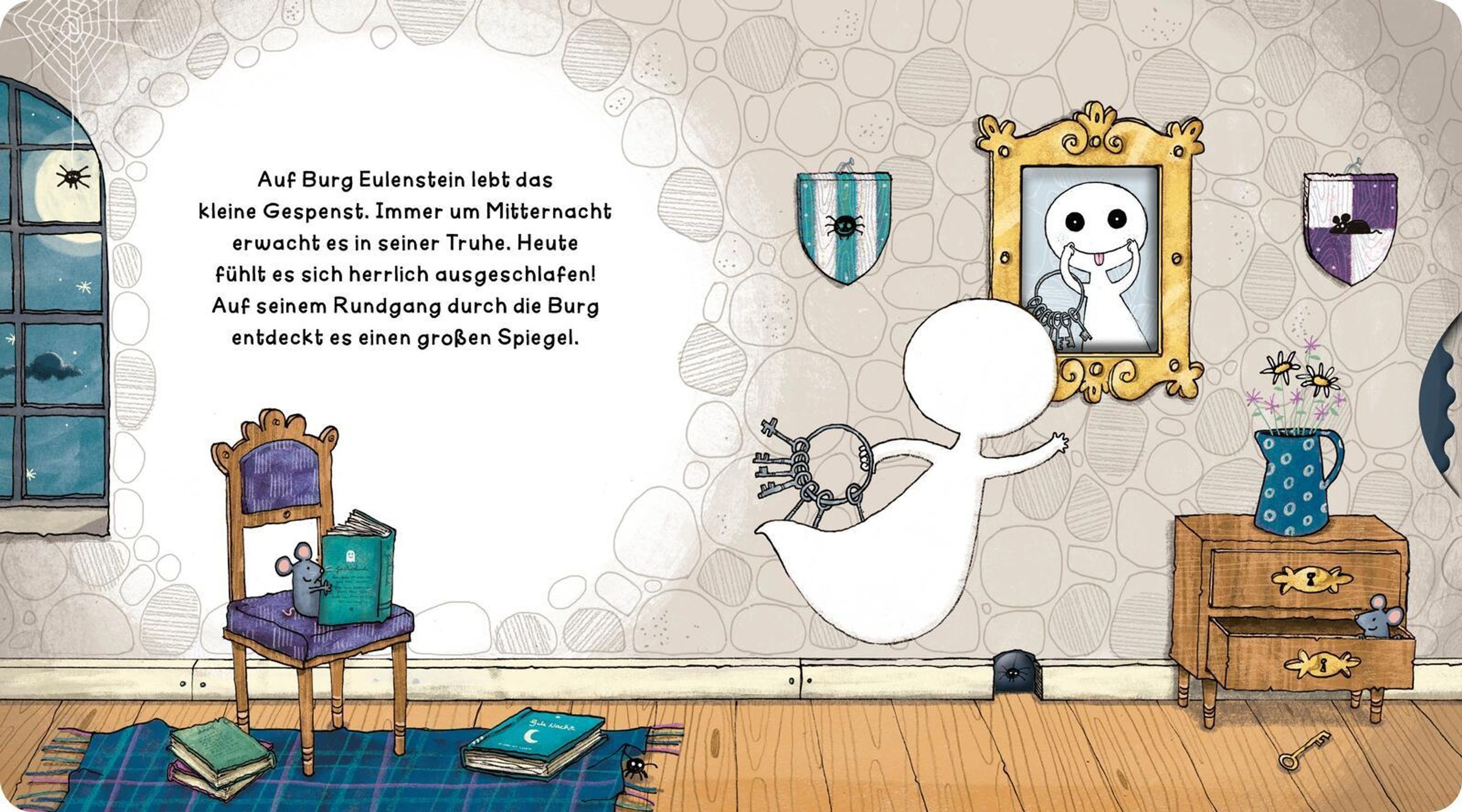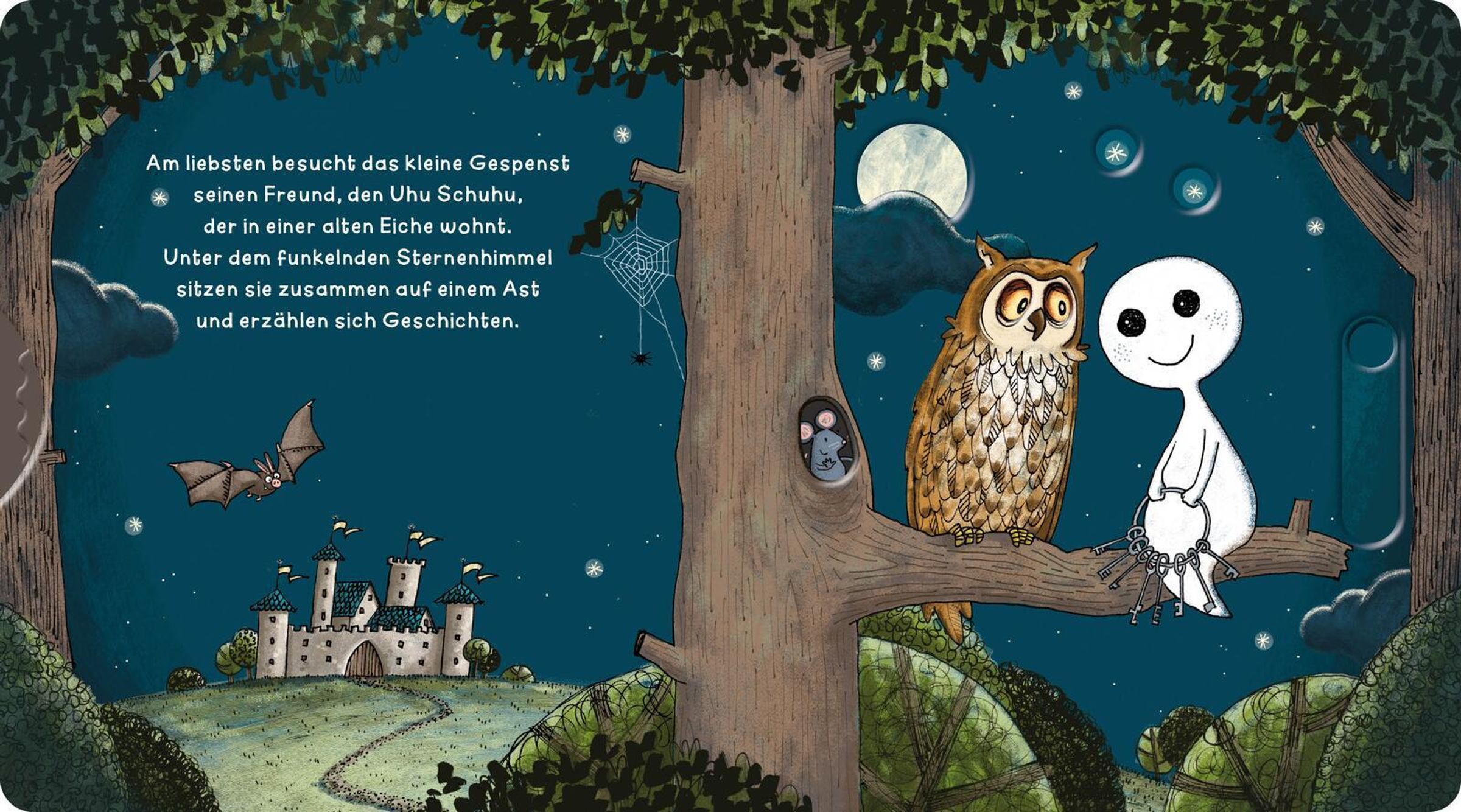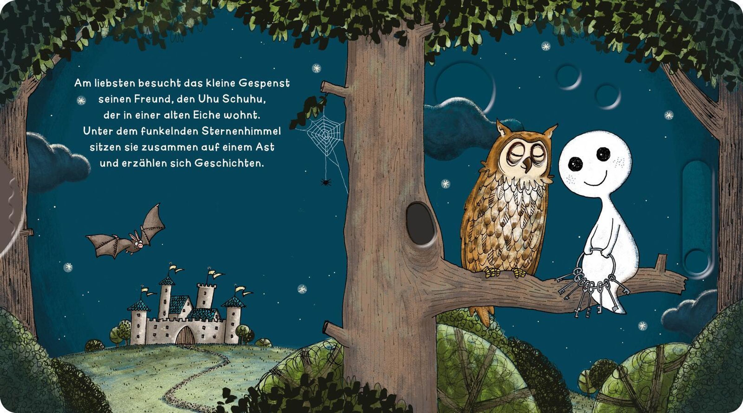 Willkommen in der zauberhaften Welt des kleinen Gespenst! Die interaktiven Schiebeelemente laden Kinder ab 18 Monaten ein, aktiv mitzuspielen und spielerisch ihre Feinmotorik zu trainieren, wenn sich das kleine Gespenst in der Burg versteckt, Fledermäuse tanzen sieht oder den Uhu Schuhu besucht. Liebevolle Illustrationen und kindgerechte Texte fördern den Spracherwerb und sorgen für ein besonderes Vorleseerlebnis. Ein hochwertiges, stabiles Mitmachbuch, das immer wieder aufs Neue begeistert!