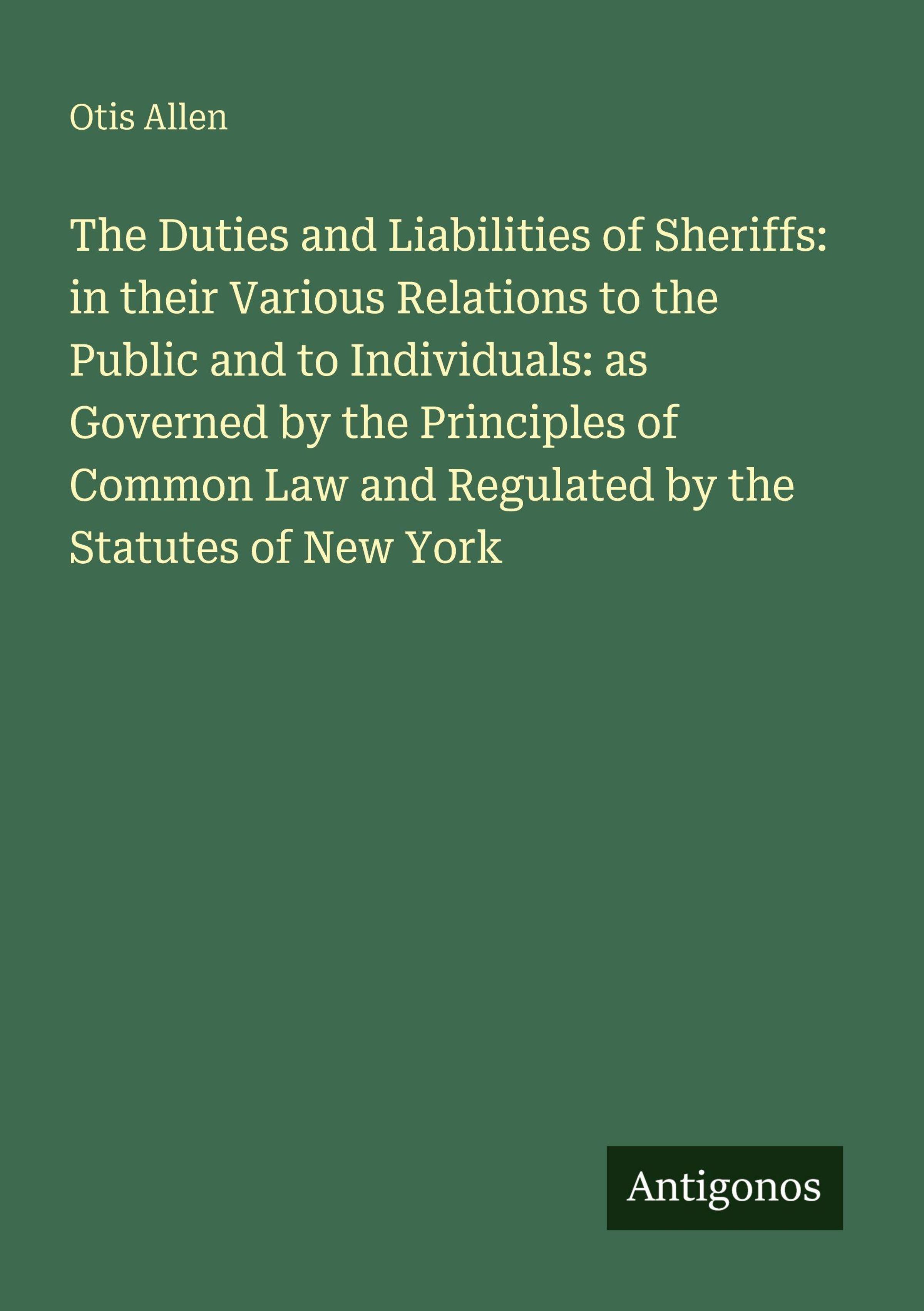 Otis Allen: The Duties and Liabilities of Sheriffs: in their Various Relations to the Public and to Individuals:..., Kartoniert / Broschiert