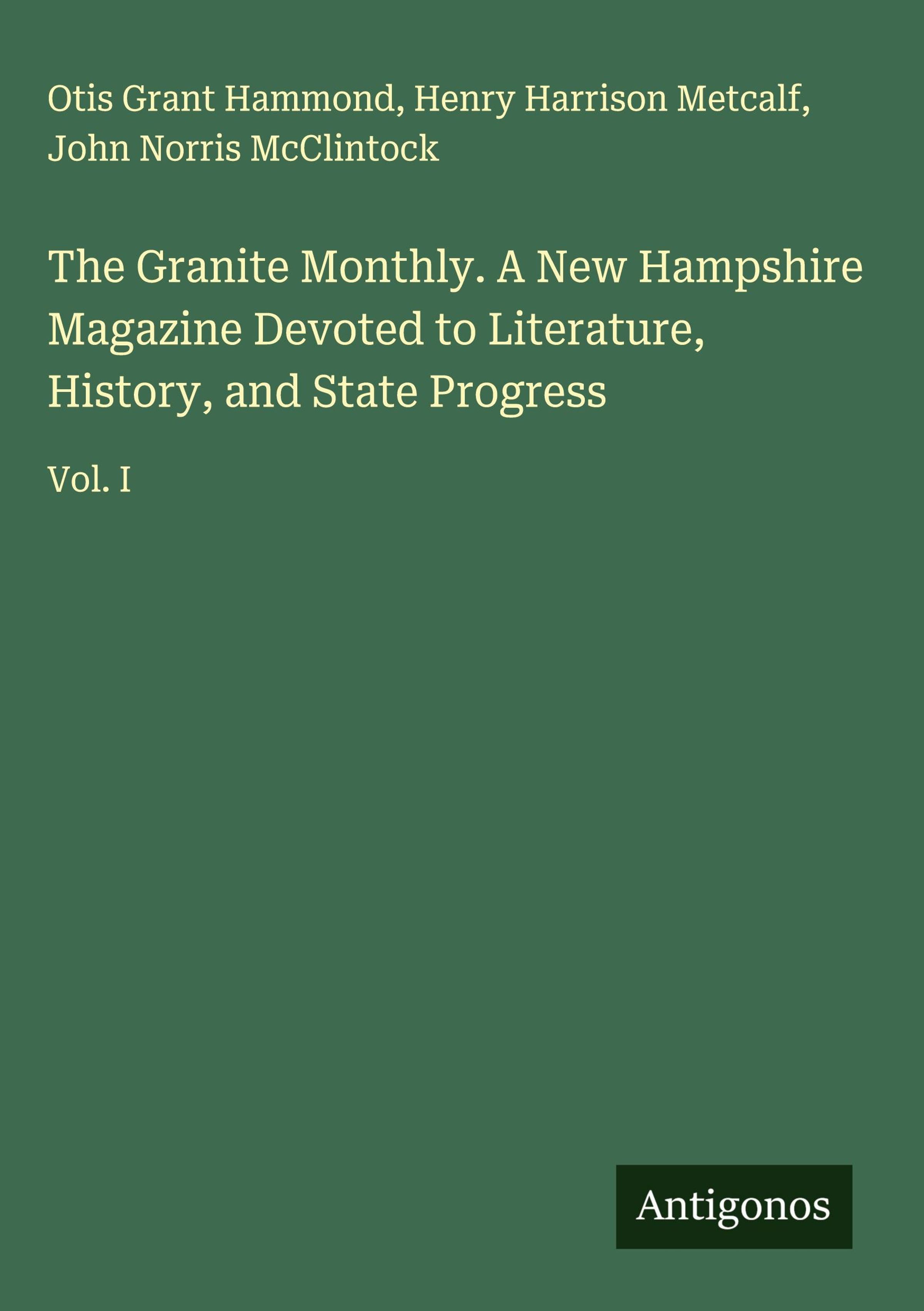 Otis Grant Hammond: The Granite Monthly. A New Hampshire Magazine Devoted to Literature, History, and State..., Gebunden