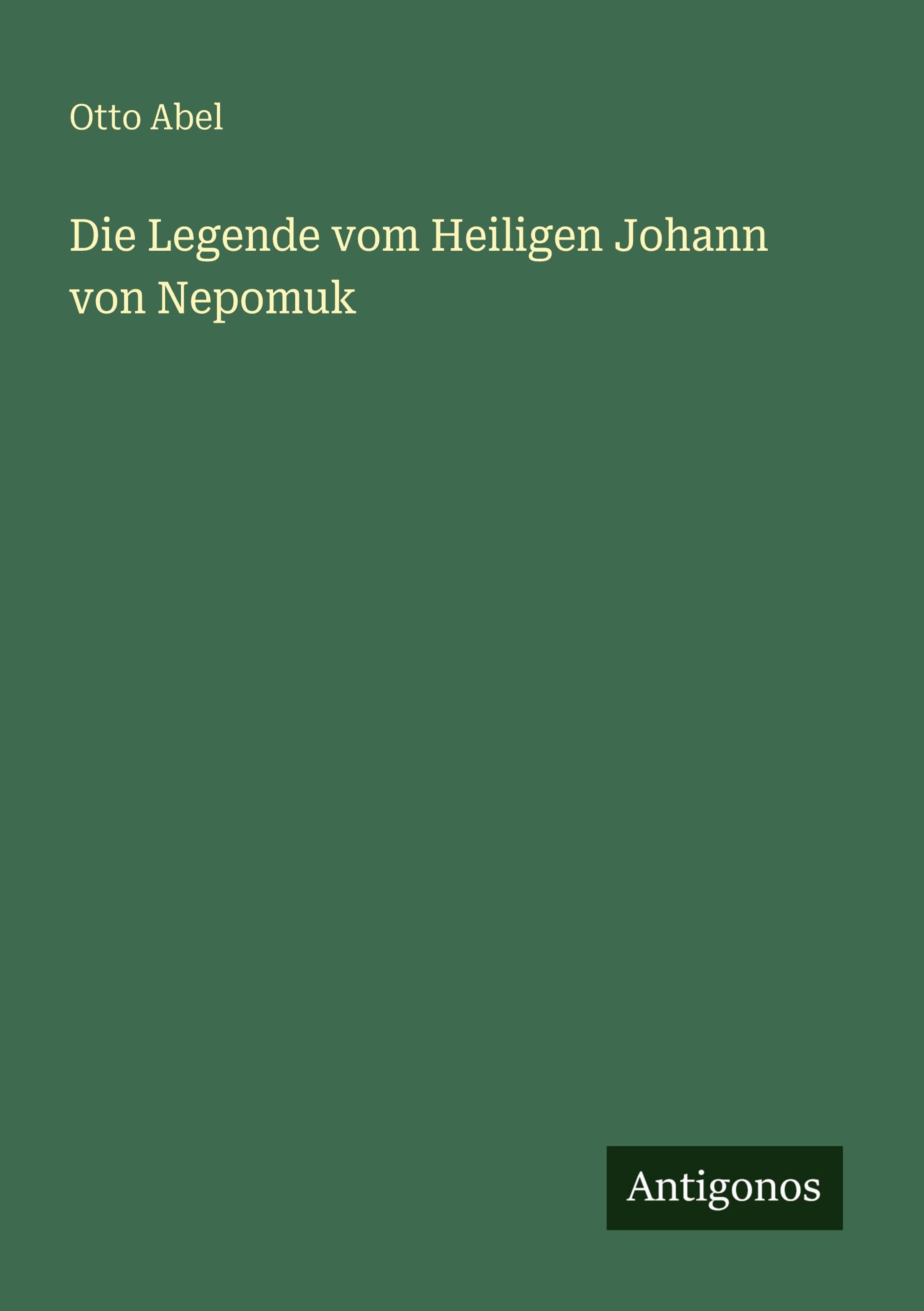 "Otto Abel. Die Legende vom Heiligen Johann von Nepomuk. Antigonos." Auf dunkelgrünem Hintergrund., Buch