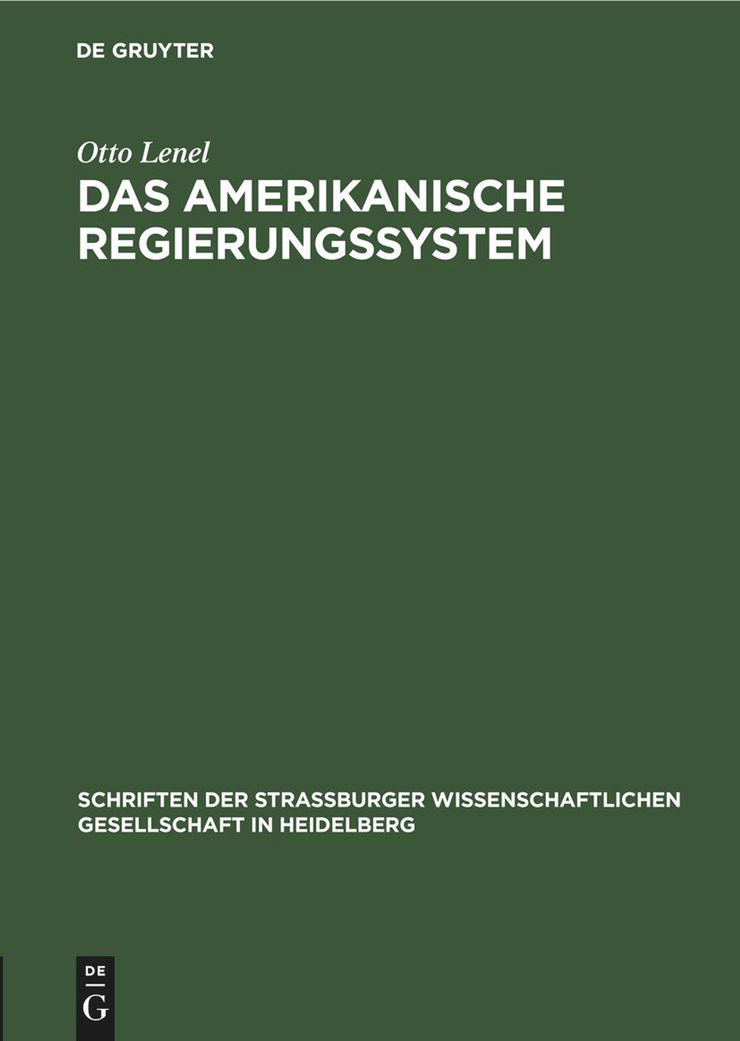 Otto Lenel: Das amerikanische Regierungssystem, Gebunden
