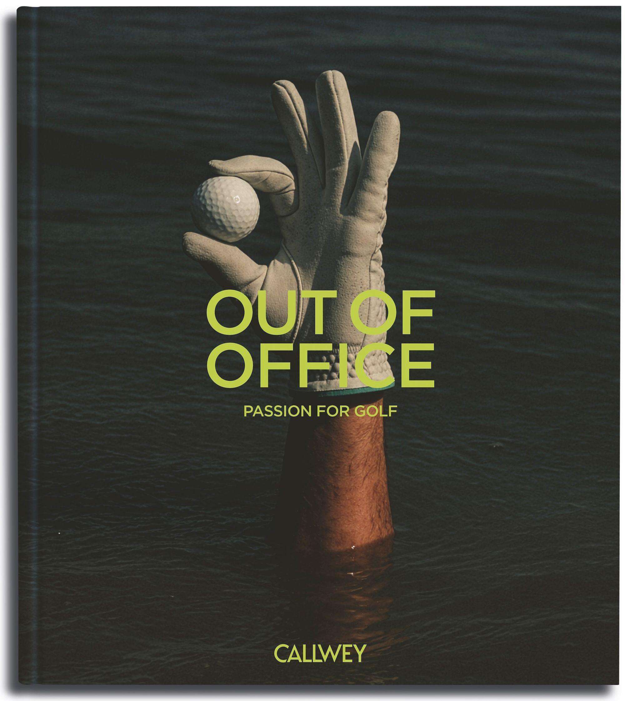 Text: "OUT OF OFFICE: PASSION FOR GOLF". Ein behandschuhter Arm hält einen Golfball über Wasser. Darunter: "CALLWEY"., Buch
