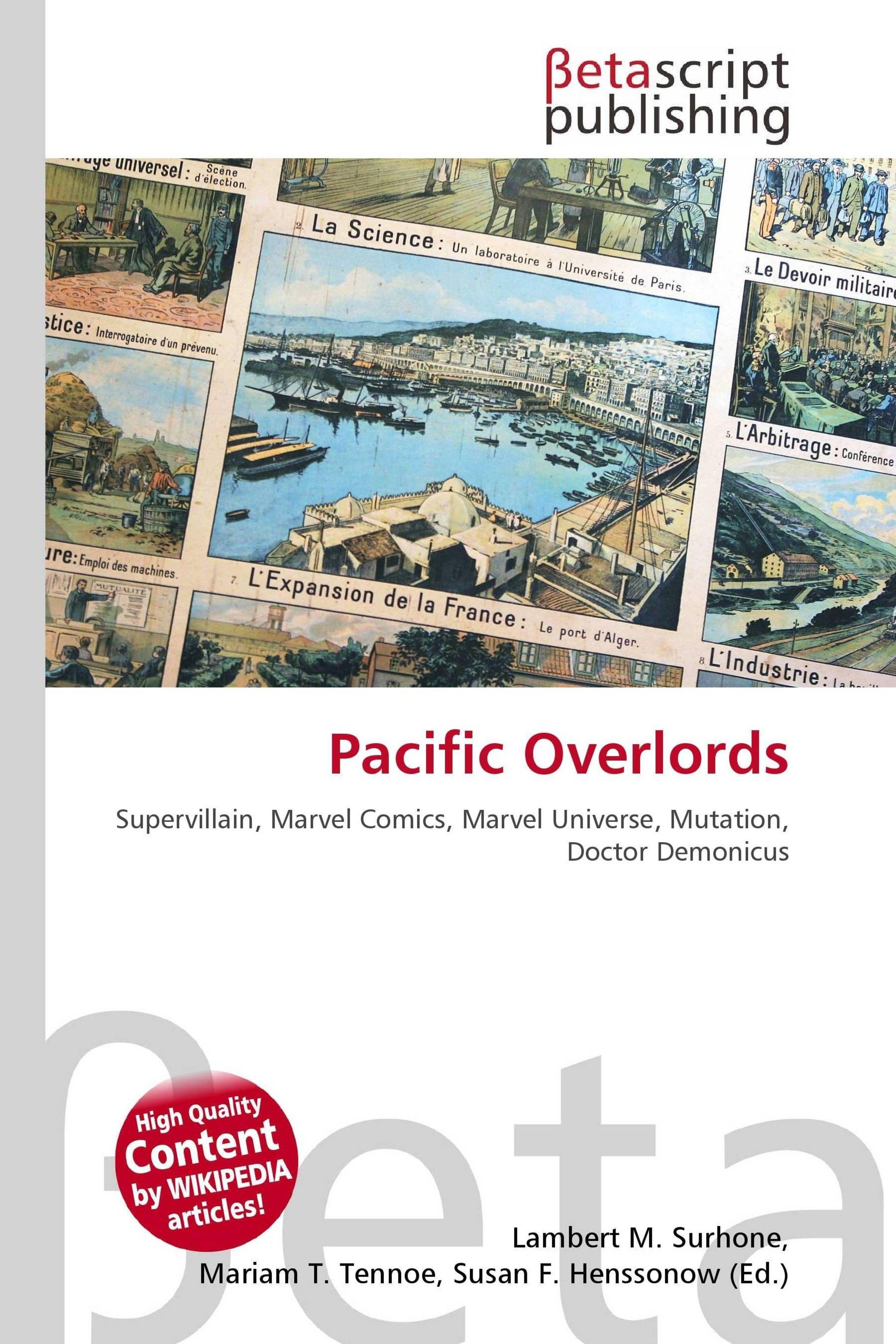 Please note that the content of this book primarily consists of articles available from Wikipedia or other free sources online. The Pacific Overlords are a supervillain team seen in the Marvel Comics universe. The team consisted largely of humans mutated by Doctor Demonicus. Marvel Publishing, Inc., commonly referred to as Marvel Comics, is an American company that publishes specializing comic books and related media. Marvel Entertainment, Inc., a subsidiary of The Walt Disney Company, owns Marvel Publishing.
