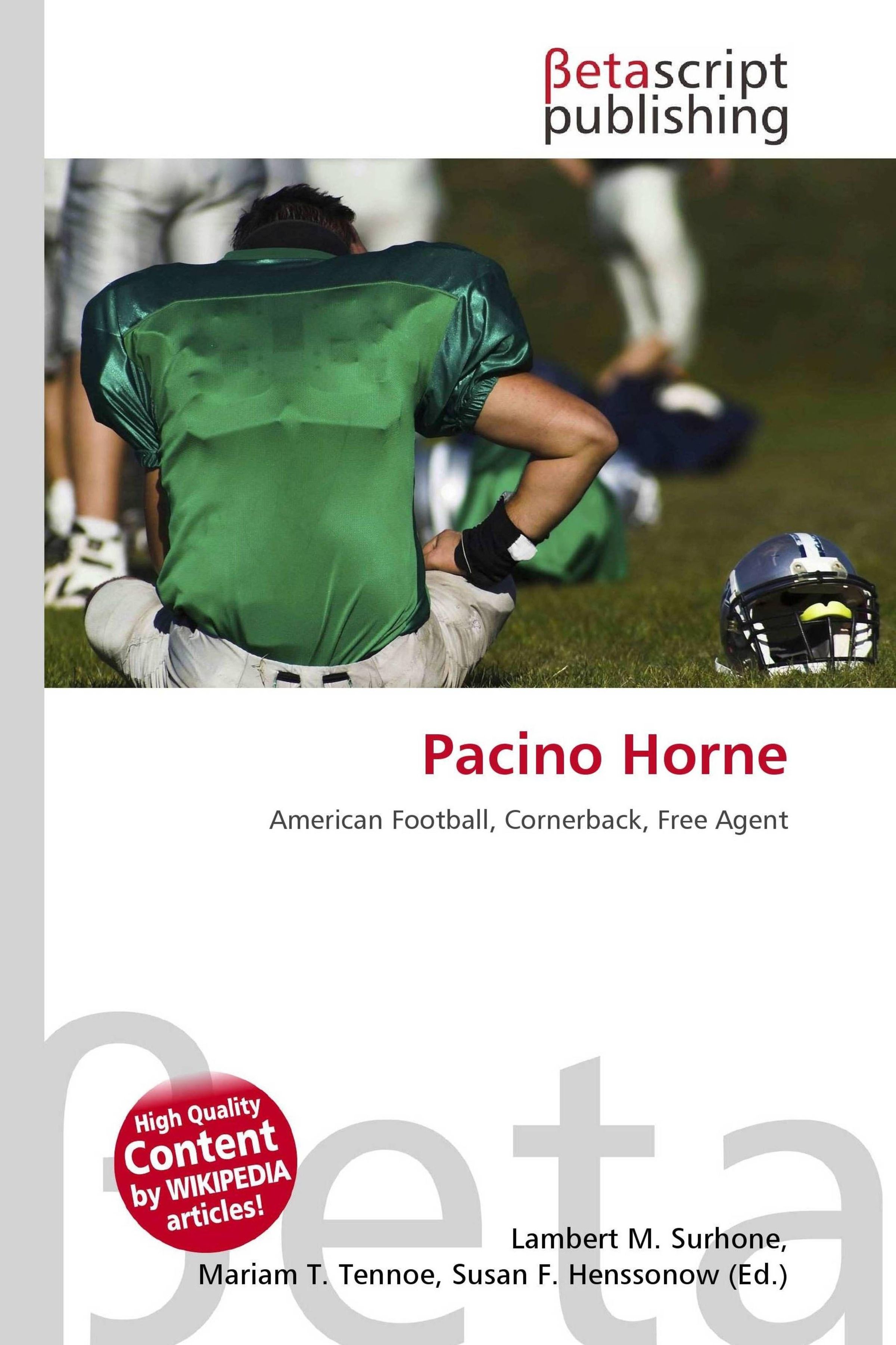 "Pacino Horne, American Football, Cornerback, Free Agent. Spieler in grüner Ausrüstung auf Rasen, Helm liegt daneben.", Buch
