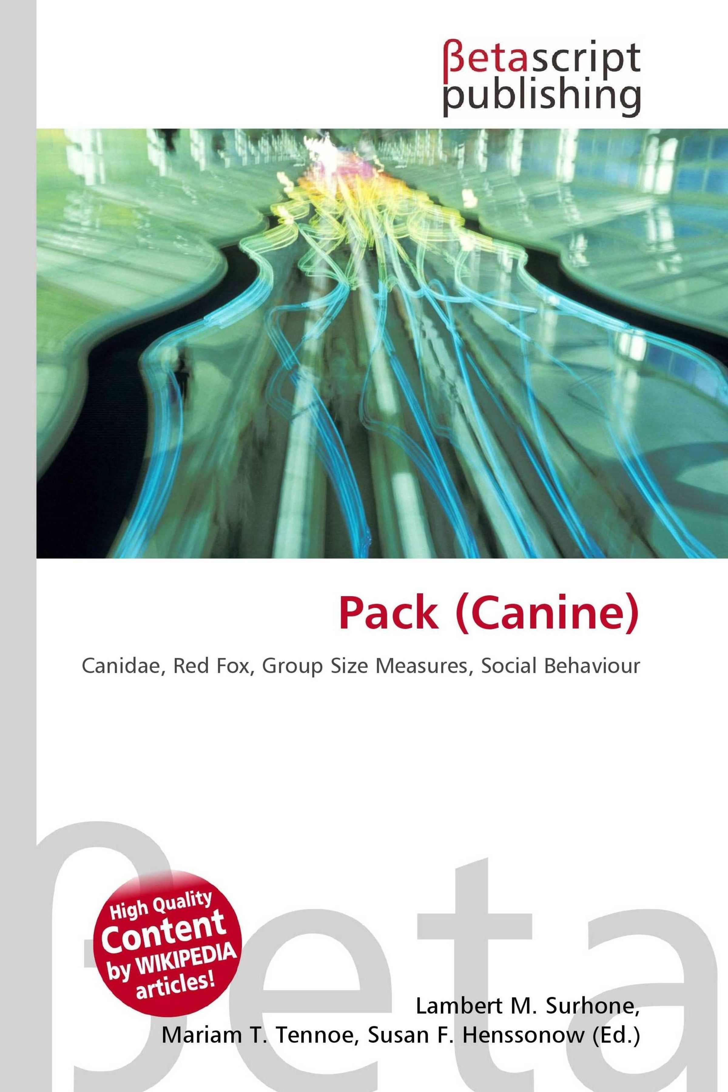 Please note that the content of this book primarily consists of articles available from Wikipedia or other free sources online. Canine packs often work cooperatively, as in this bison hunt. A hunting pack of African Wild Dogs Pack size distribution of the African Wild Dog. Pack is a social group of conspecific canids. Not all species of canids - notably the red fox - form packs. Pack size and social behaviour within packs varies across species. African wild dogs (Lycaon pictus) live and hunt in packs. Males assist in raising the pups, and remain with their pack for life, while the females leave their birth pack at about age two and a half years old to join a pack with no females. Males outnumber the females in a pack, and usually only one female breeds, with all of the males. African wild dogs are not territorial, and they hunt cooperatively in their packs, running down large game and tearing it apart.