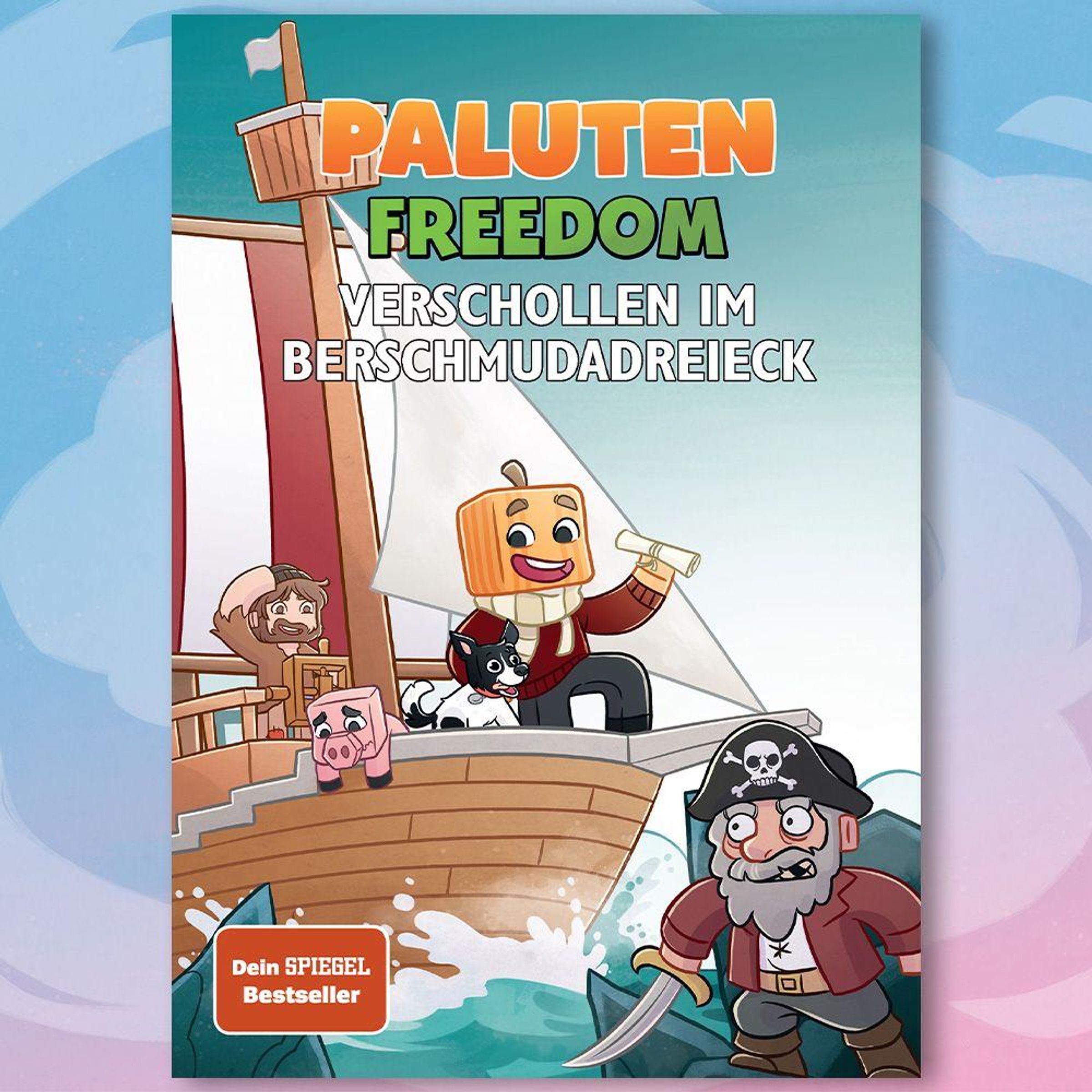 „PALUTEN FREEDOM, Band 4-6“. Illustration: Figuren in Cartoonstil, inklusive Auto, Schwein, Hund und humanoiden Charakteren., Buch
