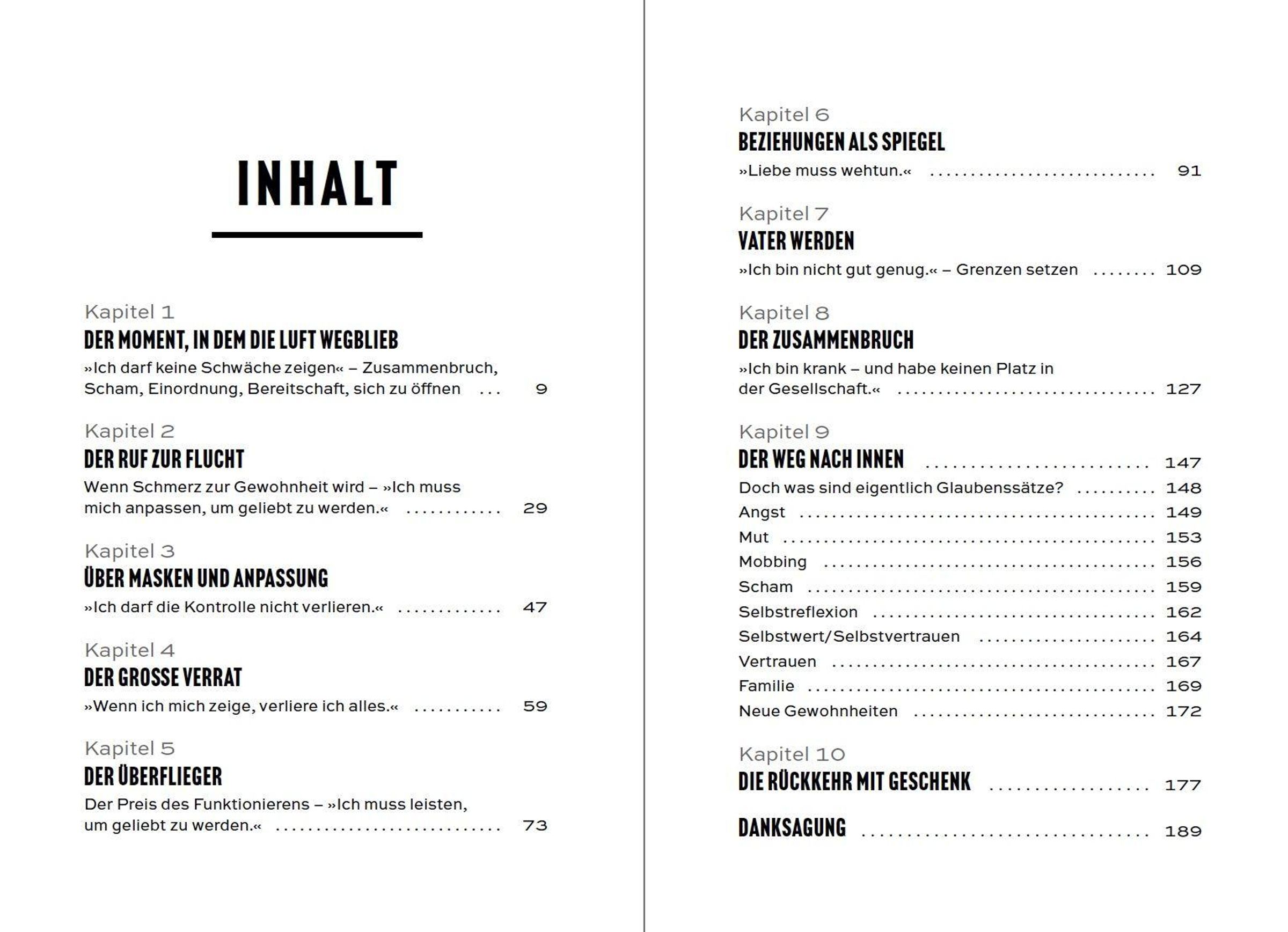 In diesem Buch erzählt Christian Behr seine Geschichte. Er nimmt dich mit auf die Reise von seiner Kindheit bis zu jenem Moment, an dem sein Körper einfach stoppte. Er erzählt von erlernten Glaubenssätzen, die antreiben und gleichzeitig einengen. Vom Druck, immer stark zu sein, von der Angst, Schwäche zu zeigen. Von einem Erlebnis aus der Kindheit, das bis heute nachwirkt - und lange verdrängt wurde. Es geht um Familie, den Beruf und das ständige Funktionieren, aber eben auch über Therapie, Heilung und Hoffnung.