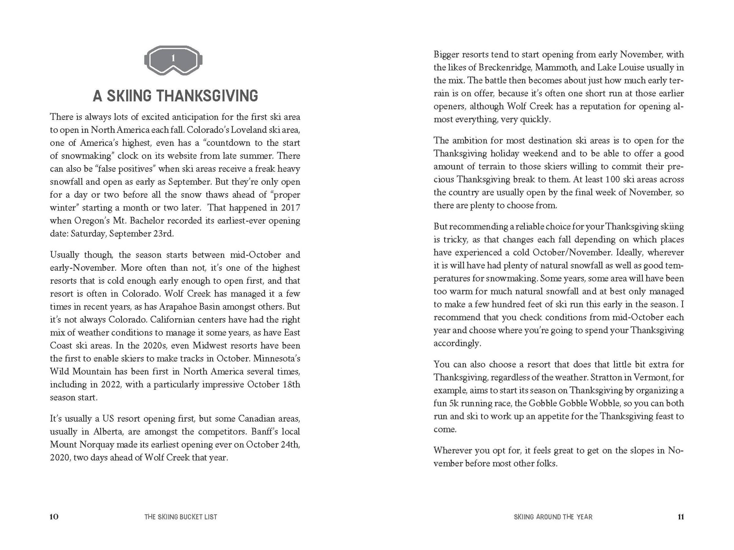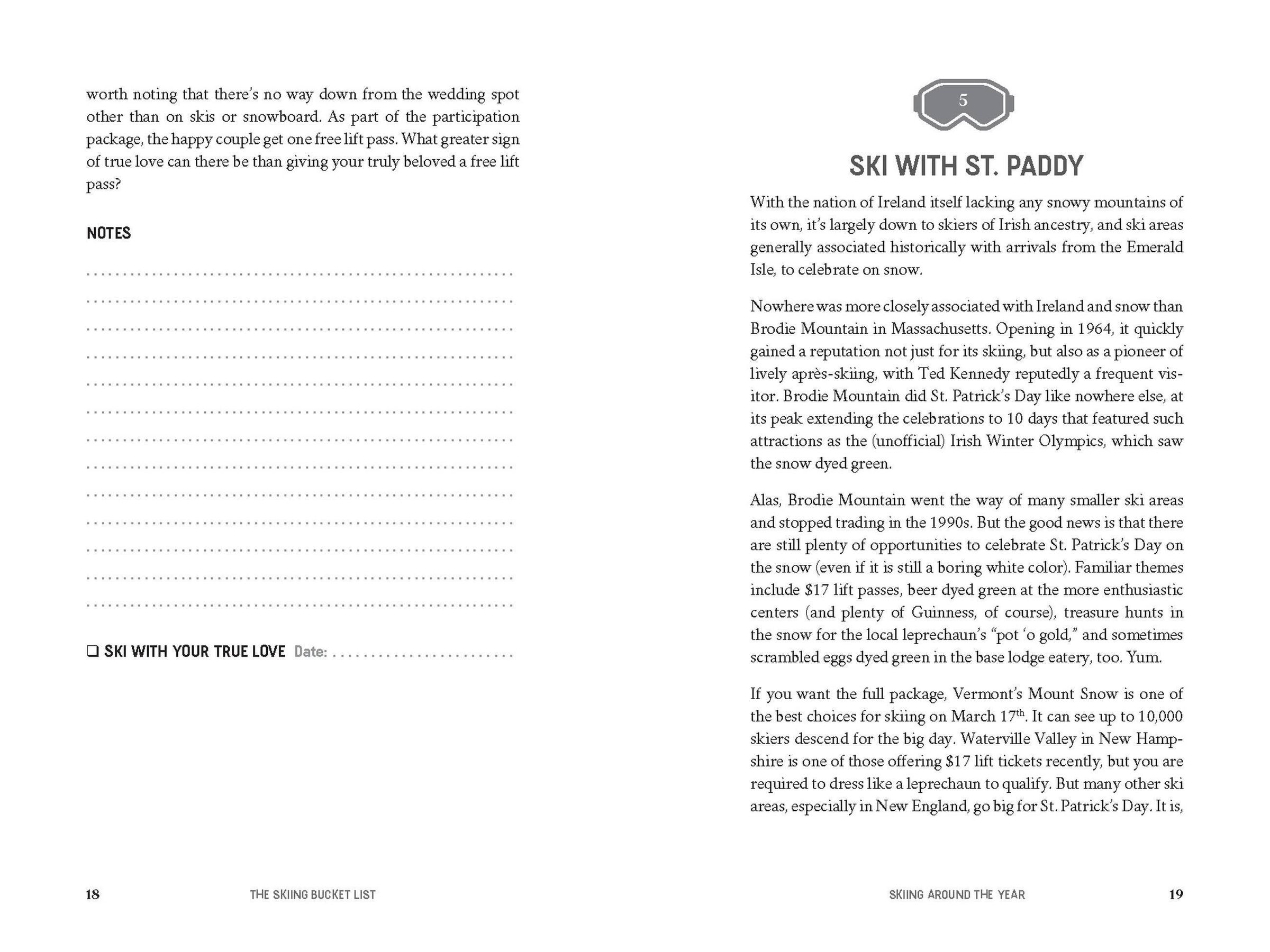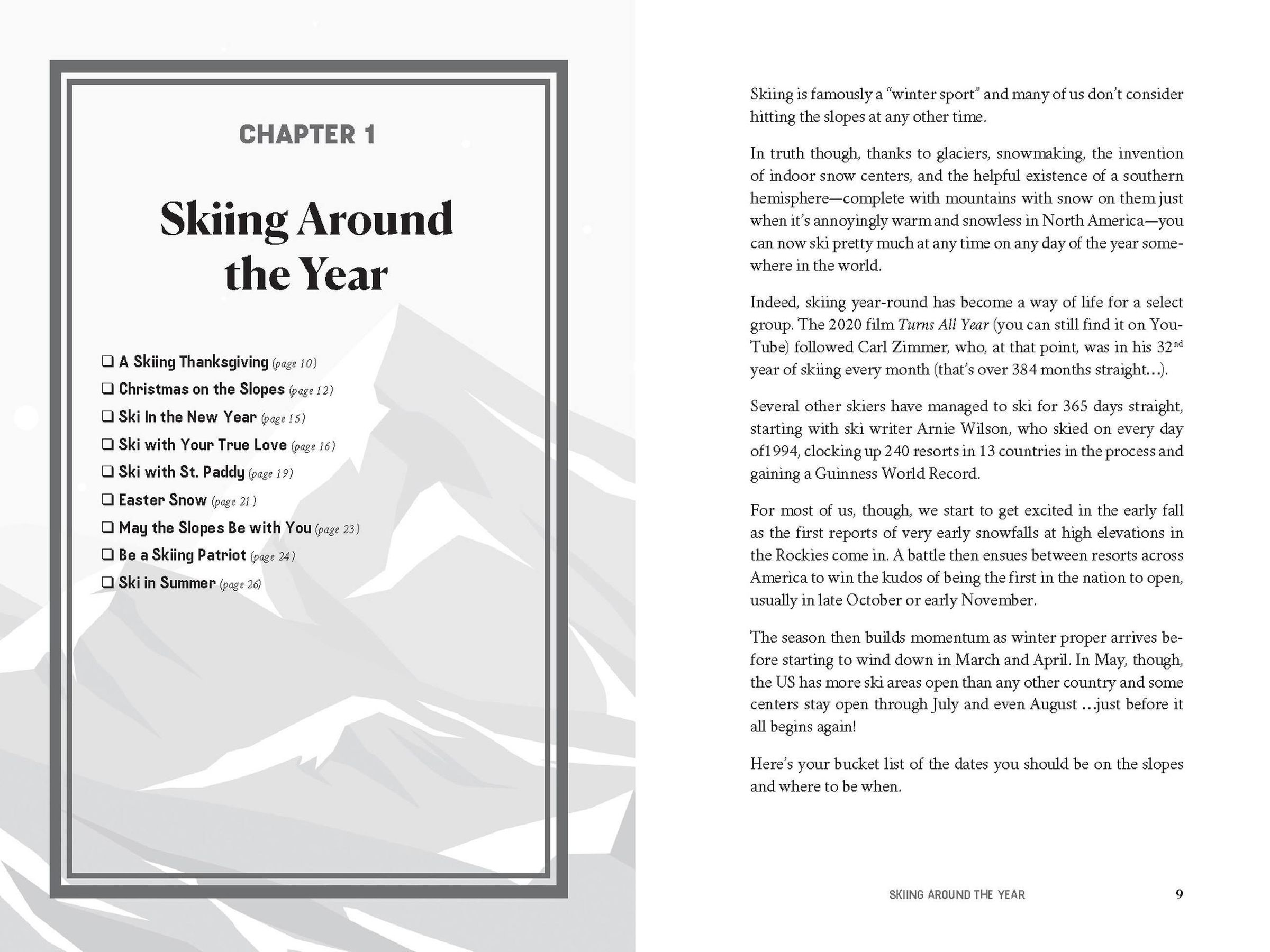 Throughout this book, Patrick celebrates both the charming, family-run ski areas alongside the world-renowned skiing destinations, curating an entertaining array of bucket list goals that both causal skiers and die-hard powder hounds can achieve, including: