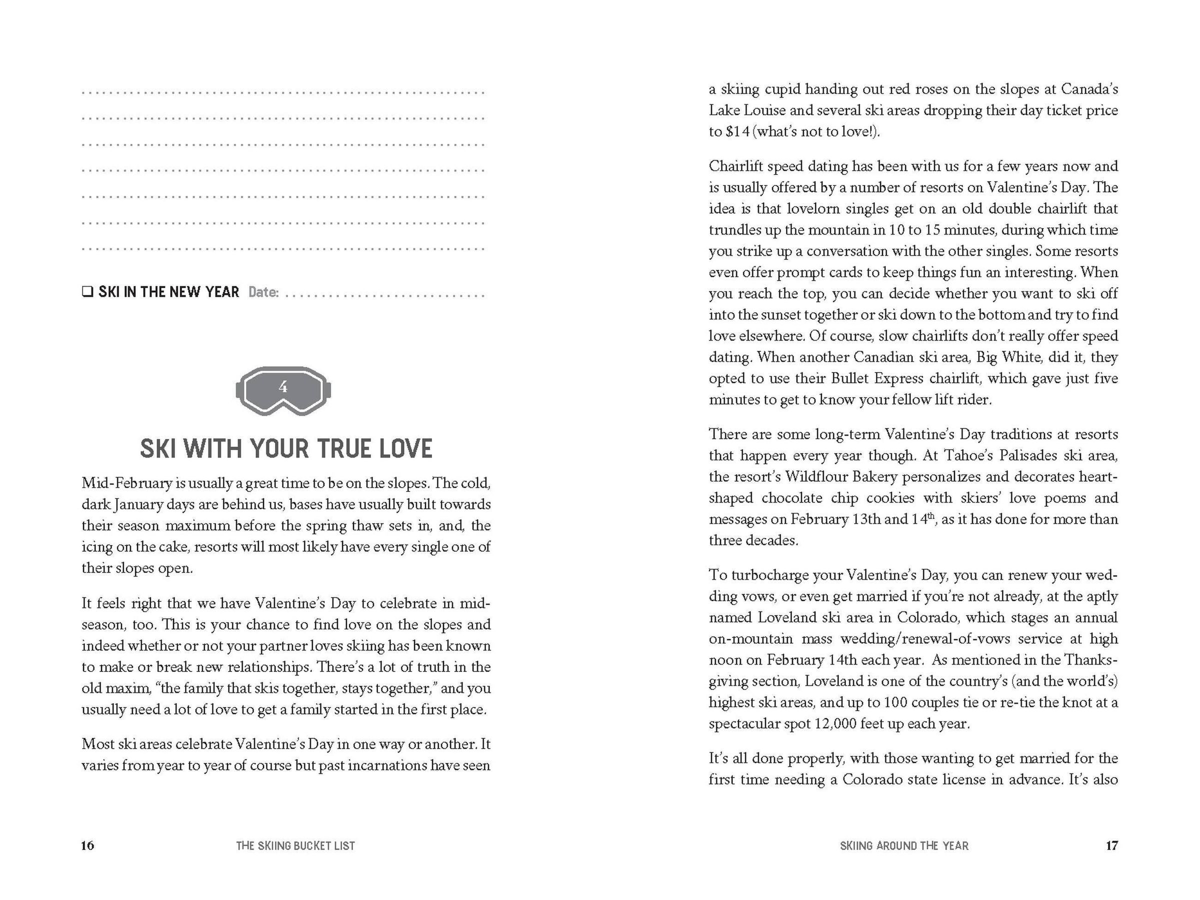 The Skiing Bucket List celebrates the thrill and passion of ski culture and ensures that even though the ski season may only last for a few winter months, the wonderful world of snow sports is available on your bookshelf year-round.
