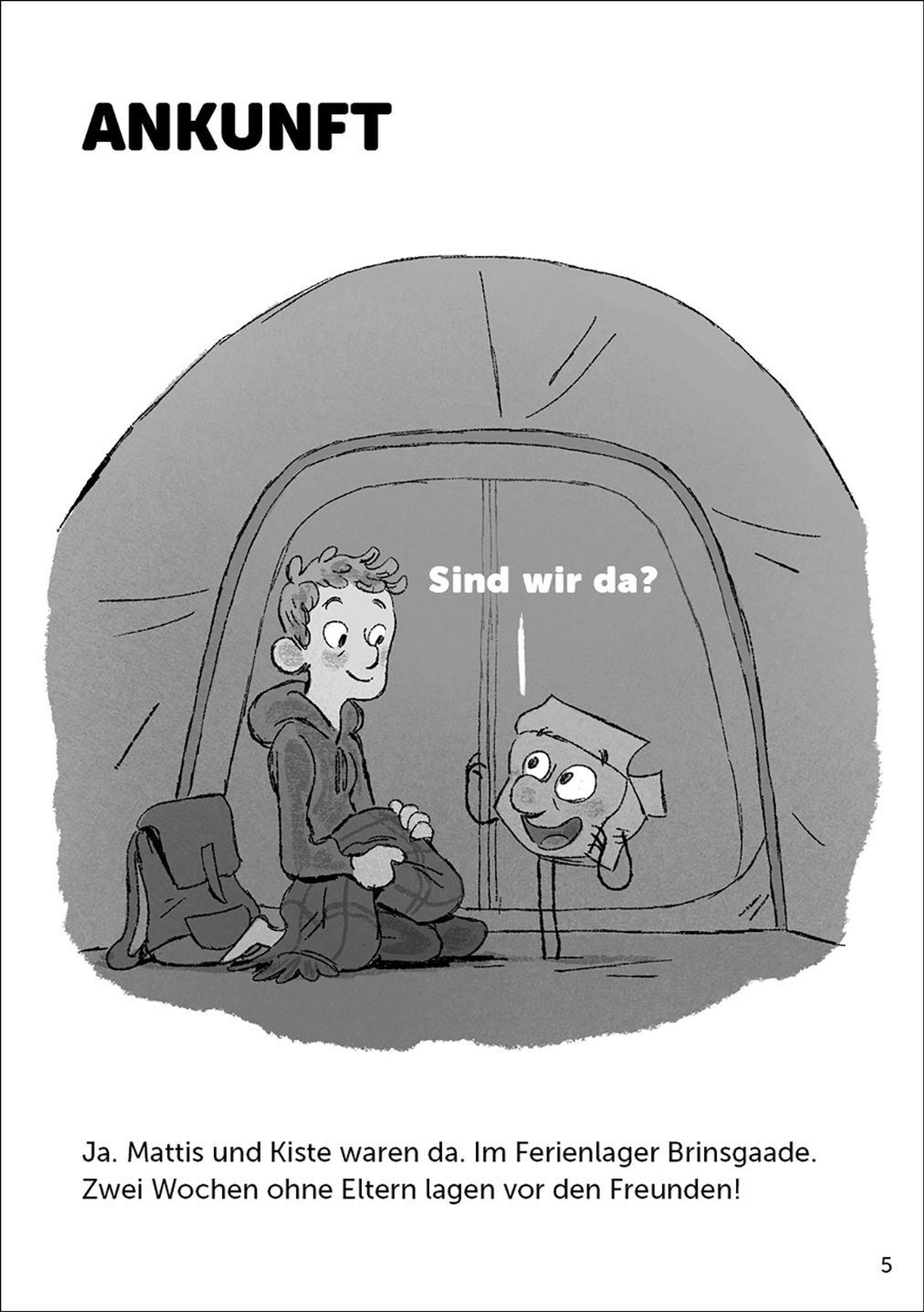 Endlich Ferien! Mattis und sein Freund Kiste freuen sich auf die Zeit im Zeltlager: endlich mal keine Erwachsenen - oder kaum welche! Dann ist Kiste plötzlich weg: Die anderen Kinder haben ihn ganz oben in einen Baum gesetzt. Aber halb so schlimm: Mattis muss nur raufklettern und seinen Freund da wieder runterholen ... Doch halt, was passiert da? Ein großer Vogel packt Kiste - und fliegt mit ihm davon ... Was für ein Schreck! Jetzt müssen sich Mattis und die anderen zusammenraufen - und Kiste wiederfinden, egal wie.