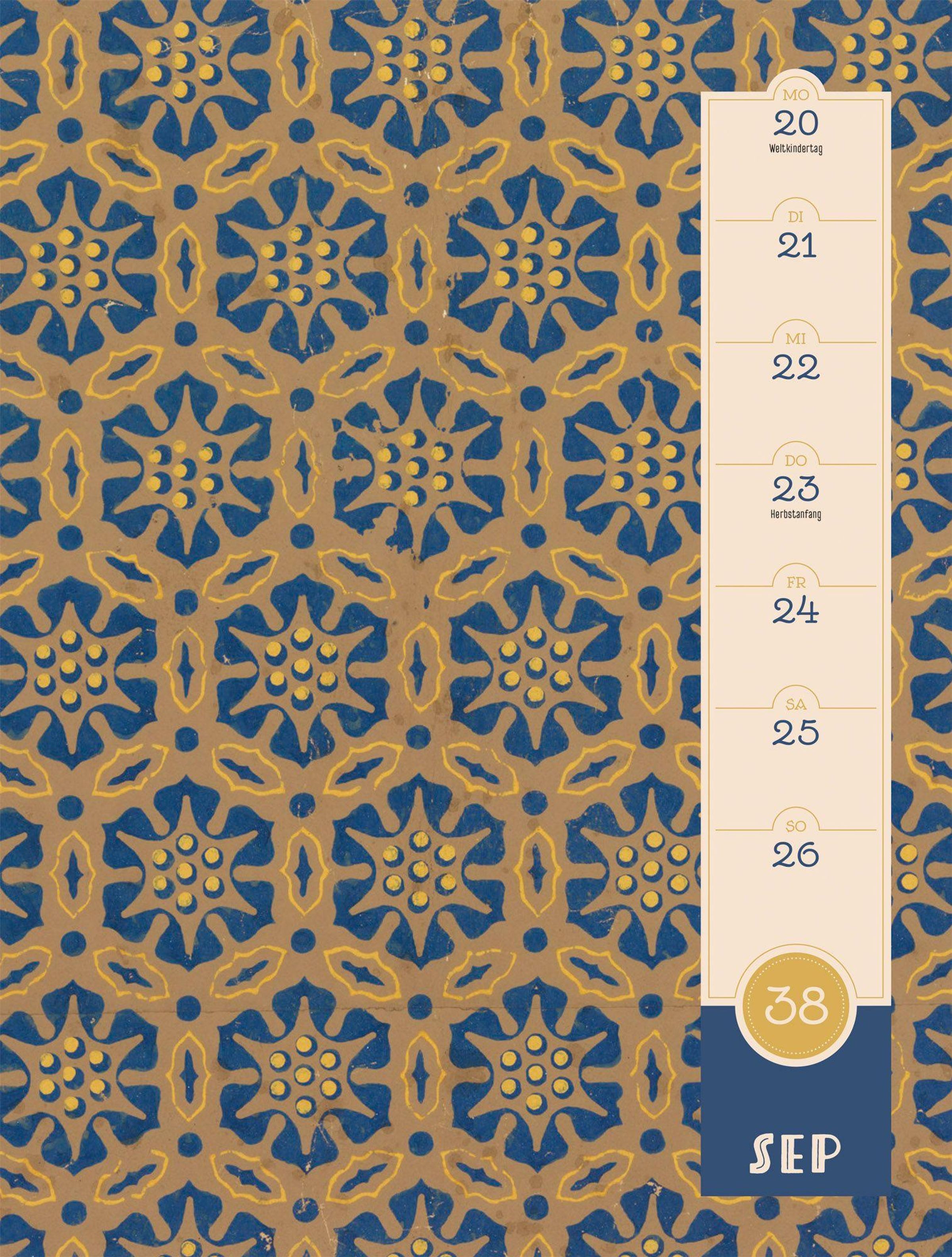 Wochenkalender mit 53 dekorativen Retro-Mustern im passenden Vintage-Layout