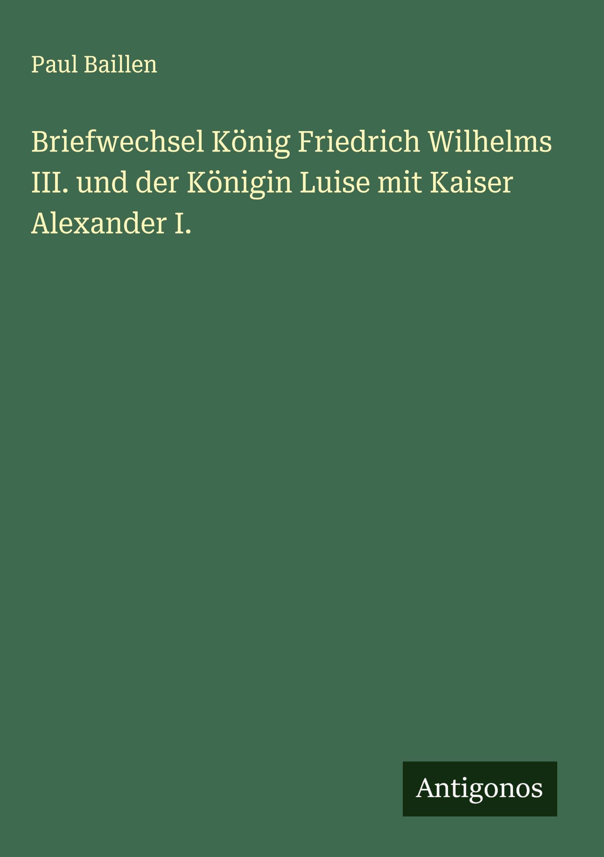 Paul Baillen: Briefwechsel König Friedrich Wilhelms III. und der Königin Luise mit Kaiser Alexander I., Gebunden