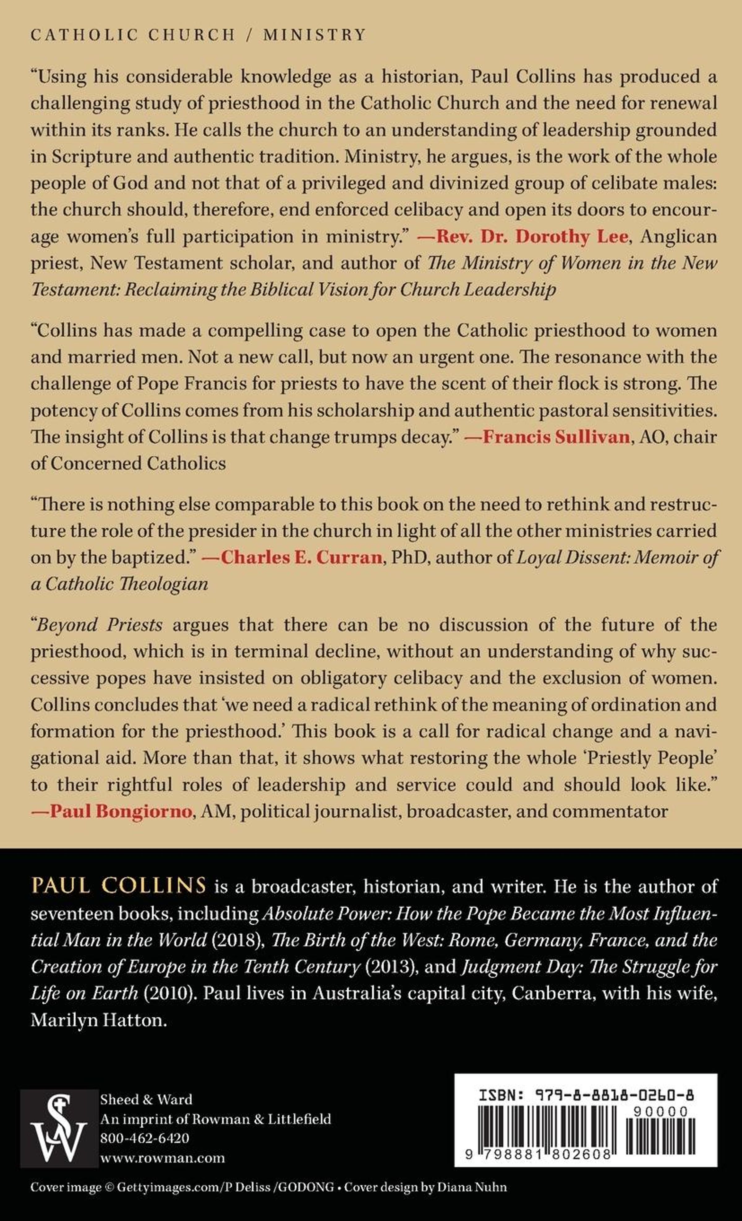 Beyond Priests contends that the requirements of the clerical priesthood of the Catholic Church-that all priests must be male, and that all priests must be celibate-is a gross distortion of scripture and the church's early history that must be changed. While the roots of the modern priesthood go back to the fourth century and even more remotely to the presbyters or elders who advised local bishops in the early church, the contemporary priestly model is very much the product of seventeenth-century French reformers acting to apply a 1563 decree on the priesthood of the Council of Trent. The present-day priestly model has increasingly become harmful, even toxic, not only to priests themselves, but to the ministry and the Catholic community. Based on the historical analysis, Beyond Priests outlines a whole new way of approaching ministry and leadership that is in tune with contemporary needs, is inclusive of women and men, and is more authentically derived from the New Testament and the early church.