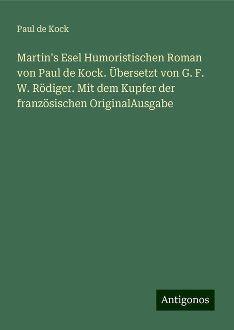 Kock, P: Martin's Esel Humoristischen Roman von Paul de Kock