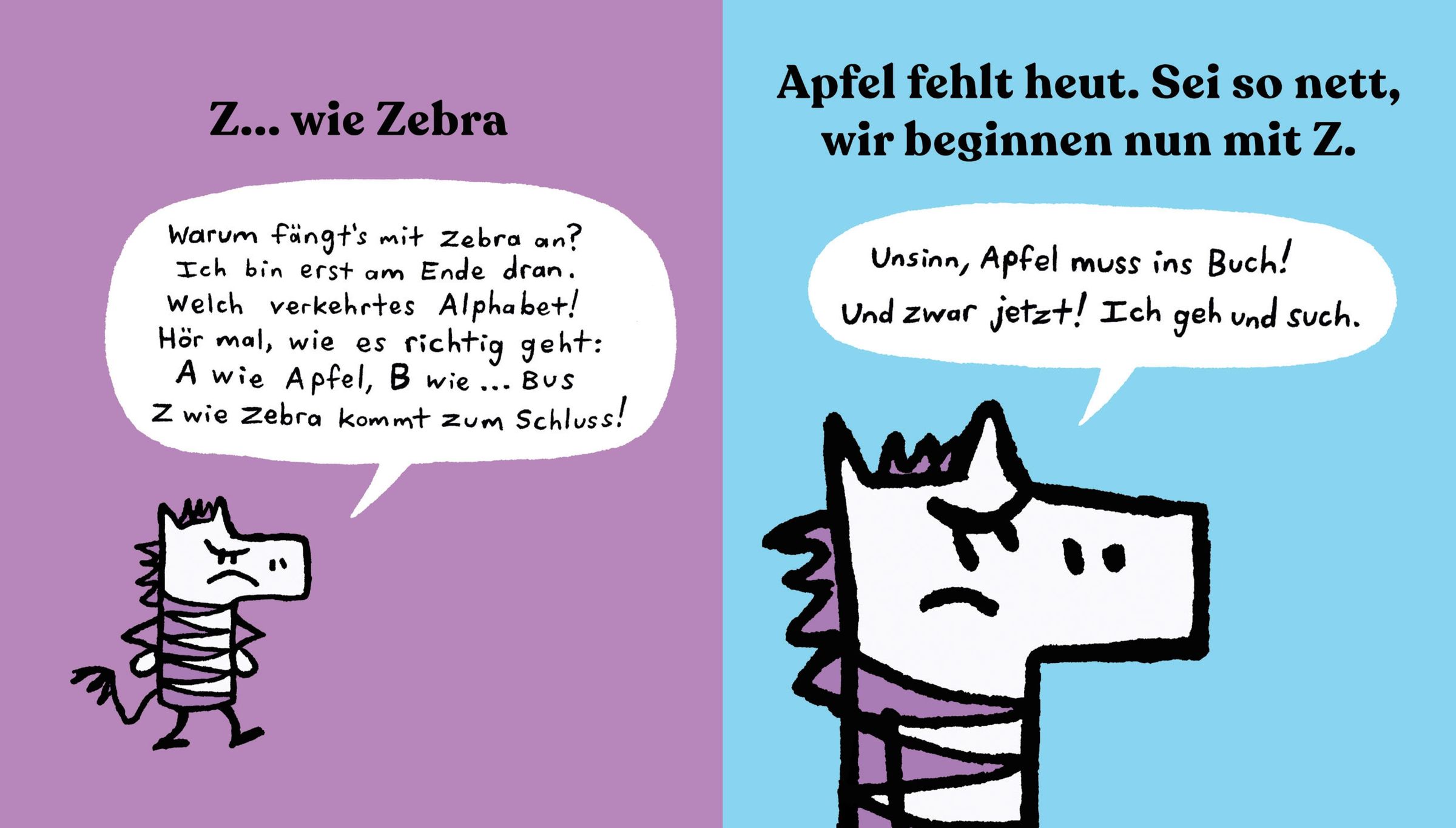Von Z bis A - das lustigste ABC aller Zeiten Was ist denn hier los?! Zebra und Yak trauen ihren Augen kaum: Das ABC beginnt plötzlich bei Z statt bei A - und Apfel, der doch eigentlich den Anfang machen müsste, ist einfach verschwunden! Ihnen bleibt nichts anderes übrig, als sich - holderdipolter - von hinten ins Alphabet zu stürzen! Auf ihrer abenteuerlichen Reise begegnen ihnen fliegende Popel, wilde Mumien und lustige Dackel. Ob sie Apfel noch rechtzeitig finden, bevor das Buch zu Ende ist? Dieses rasant gereimte Bilderbuch voller schräger Charaktere und lustiger Illustrationen macht riesengroße Lust aufs Buchstabenlernen.