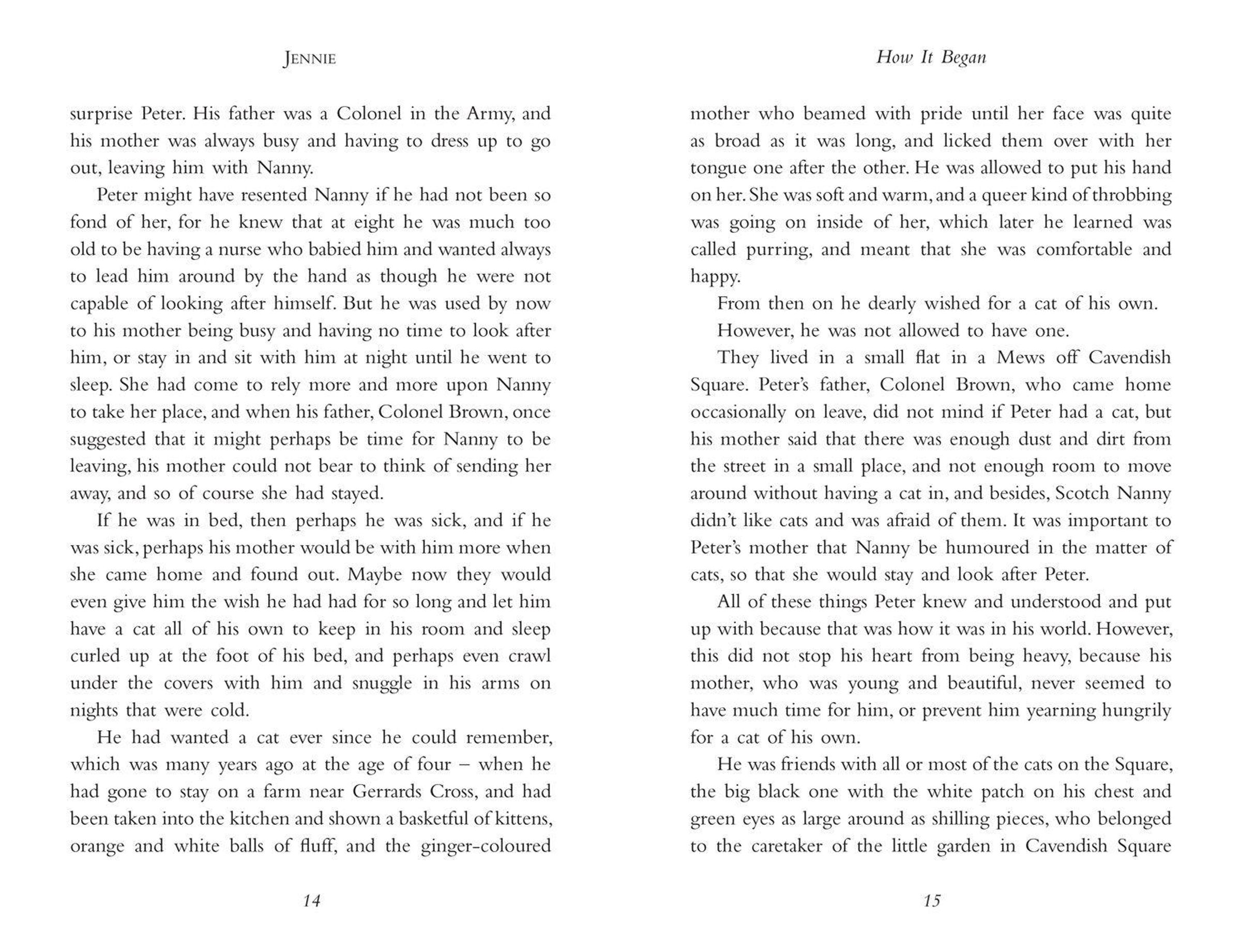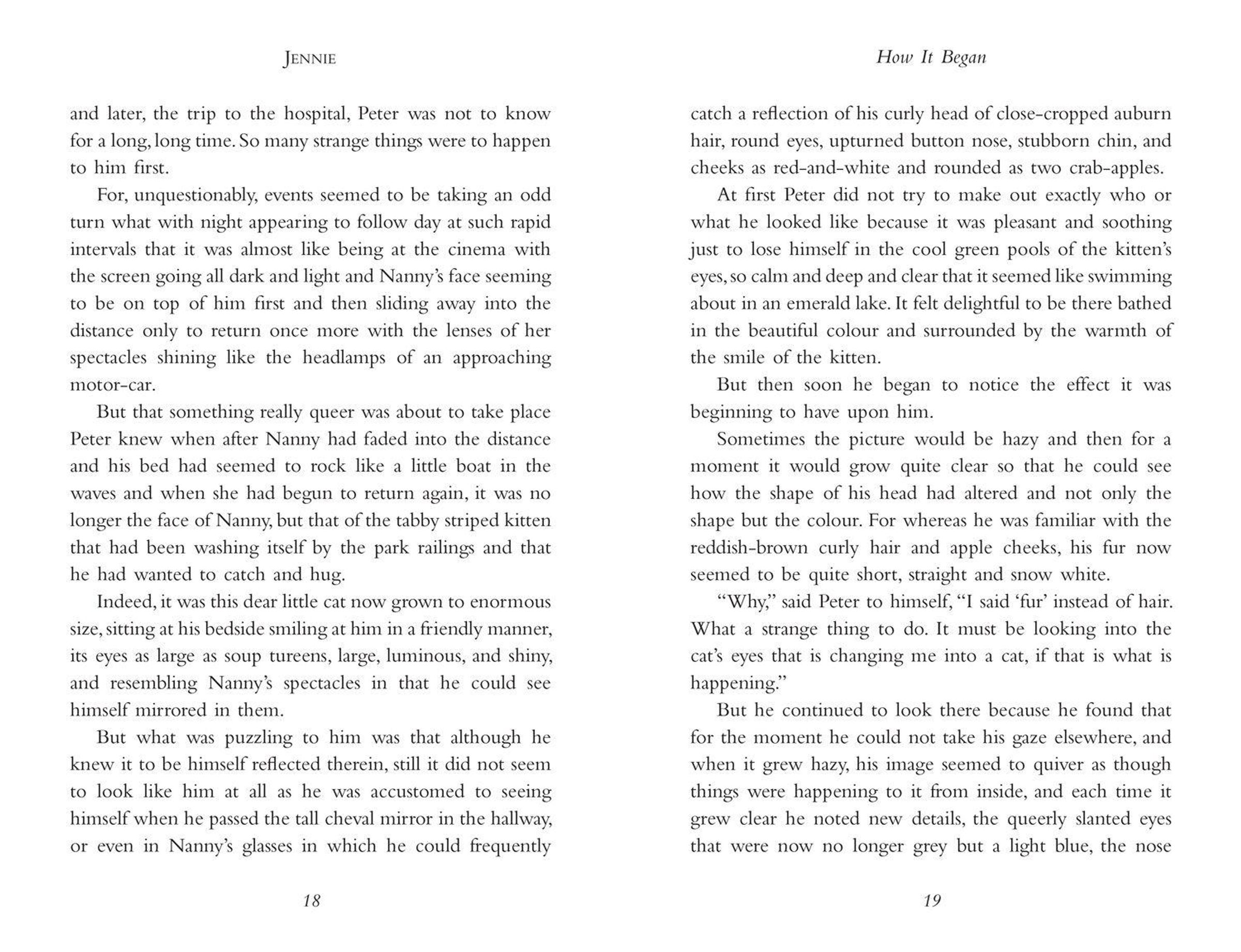 Peter Brown longs for a pet cat. One day, he is following a stray cat through the streets when he is knocked down and seriously hurt. On waking, he is astonished to find that he has turned into a cat... The world is a dangerous place for him, but luckily he is rescued and befriended by Jennie, a kindly stray tabby who has been abandoned by her owners. Adventures wait around every corner for the two new friends, as Jennie teaches Peter all about life as a cat.
