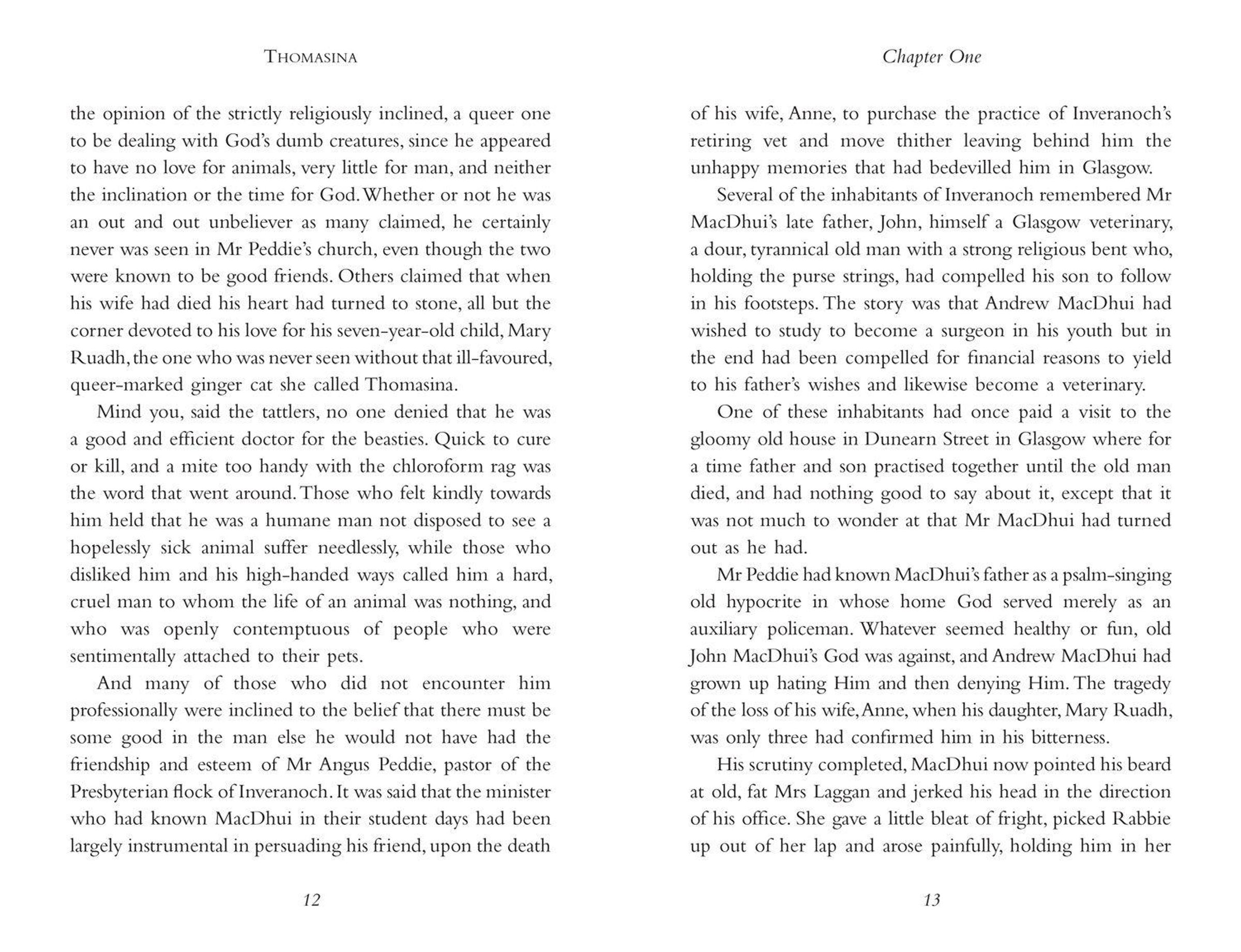 Thomasina is the beloved pet cat of 7-year-old Mary Ruadh, whose strict father is the town's vet. When Thomasina falls ill, her father sees no other option but to put the cat down. Heartbroken by his cruelty, Mary stops speaking to her father and falls dangerously ill herself.