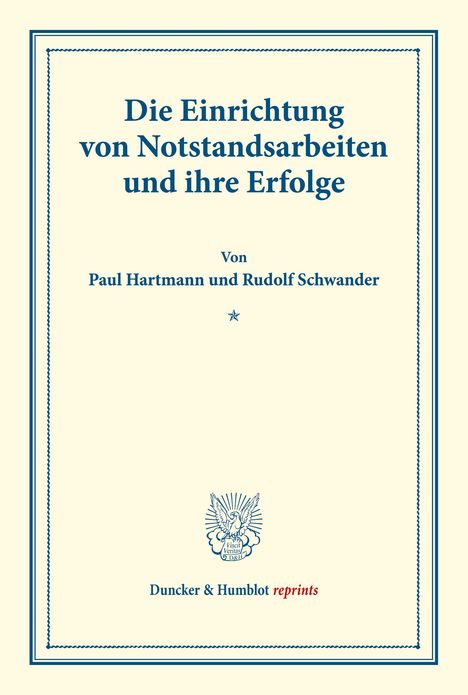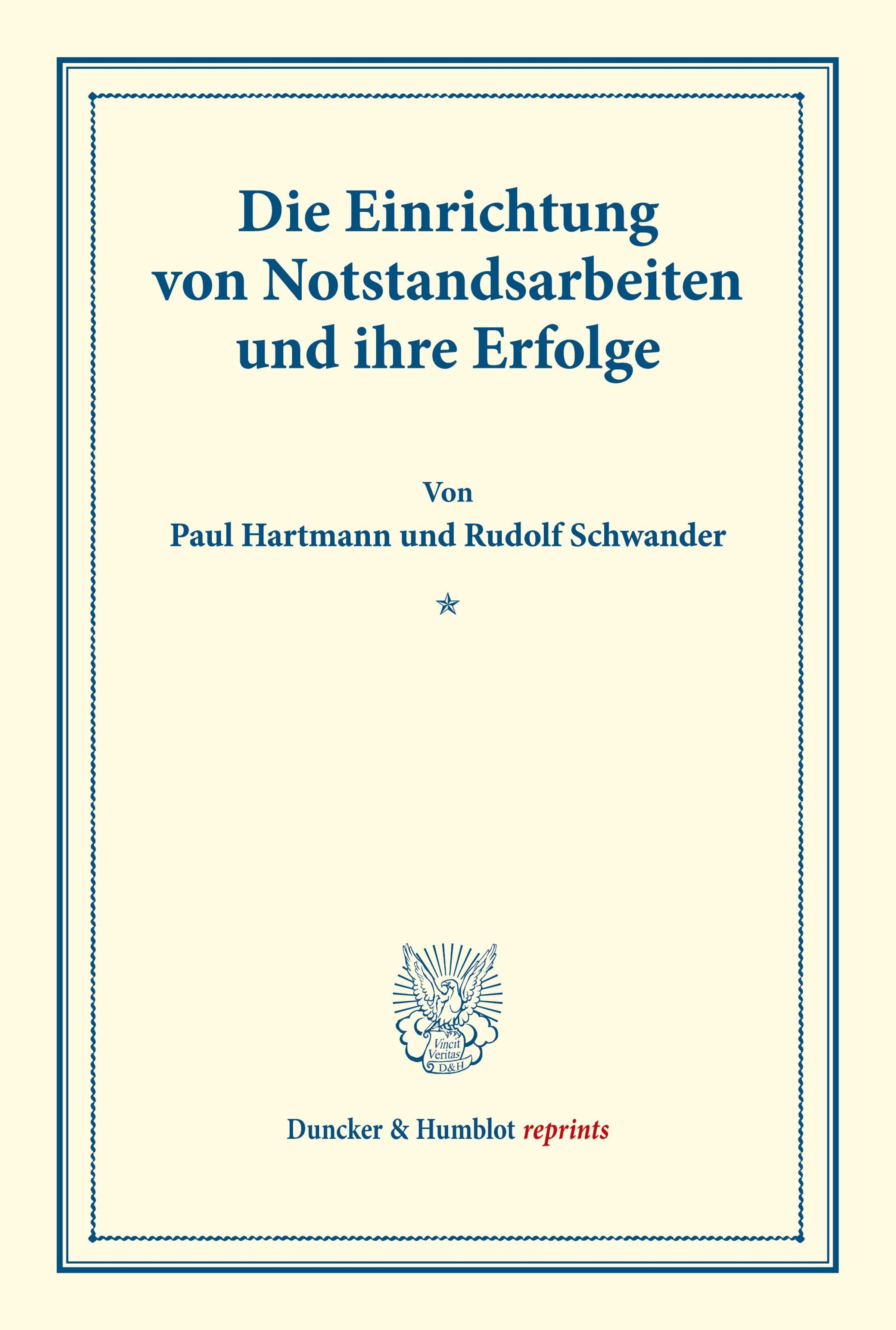 Paul Hartmann: Die Einrichtung von Notstandsarbeiten und ihre Erfolge., Kartoniert / Broschiert
