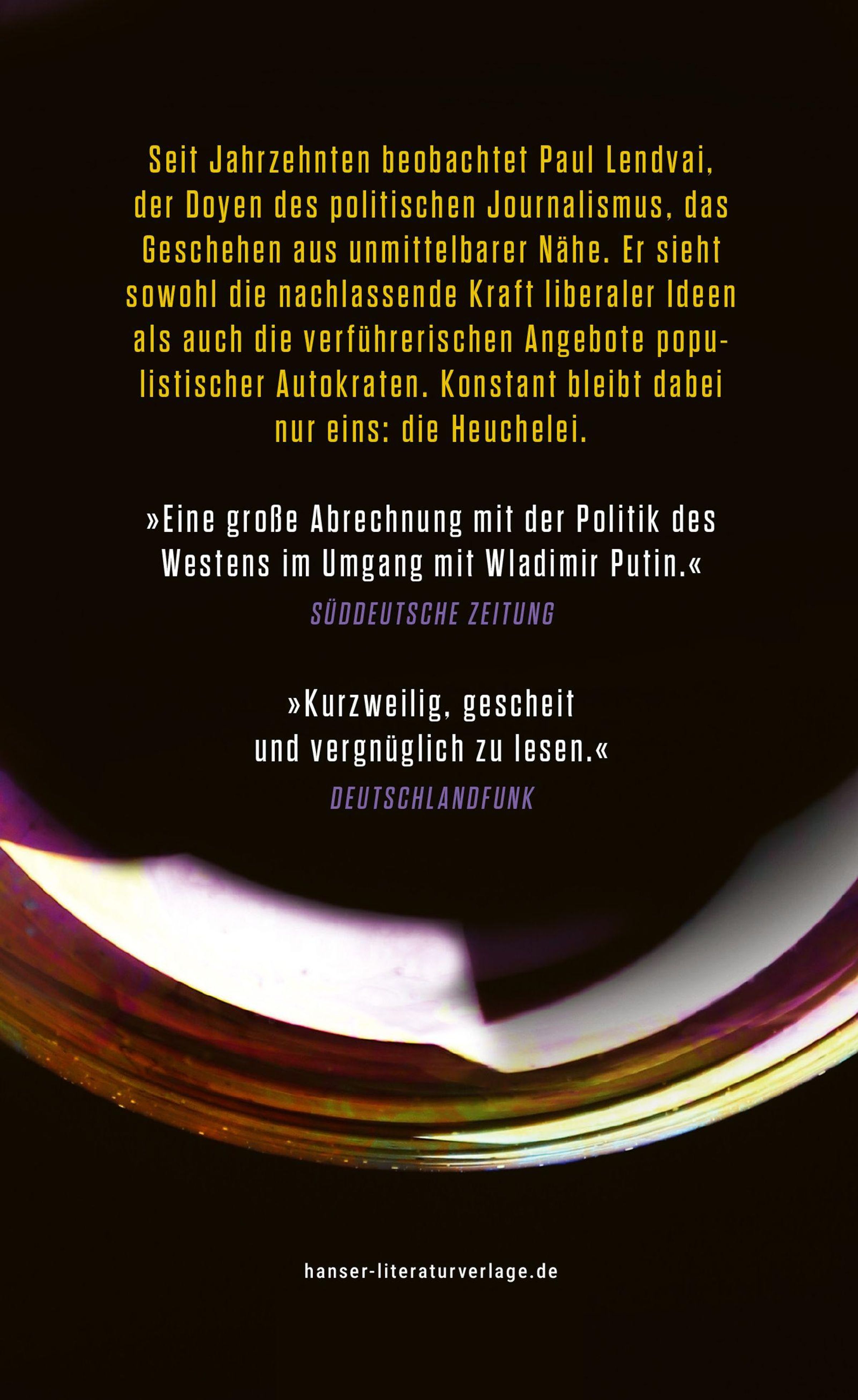 Russlands Krieg, Migration, Klimawandel, Inflation, Trump zum Zweiten? Es herrscht Endzeitstimmung, wieder einmal. Weltweit aktive Geheimdienste und hoch alimentierte Forschungseinrichtungen schaffen es nicht, Antworten auf dramatische Umbrüche des globalen Kräftespiels zu finden. Ja, die sie lenkenden Politikerinnen und Politiker liegen häufig vollkommen falsch. Man denke nur an die Einschätzungen der Entwicklung in Russland und China und innerhalb der EU in Ungarn und Polen. Seit Jahrzehnten beobachtet Paul Lendvai das Geschehen aus unmittelbarer Nähe. Er sieht sowohl die nachlassende Kraft liberaler Ideen als auch die verführerischen Angebote populistischer Autokraten. Konstant bleibt dabei nur eines: die Heuchelei.