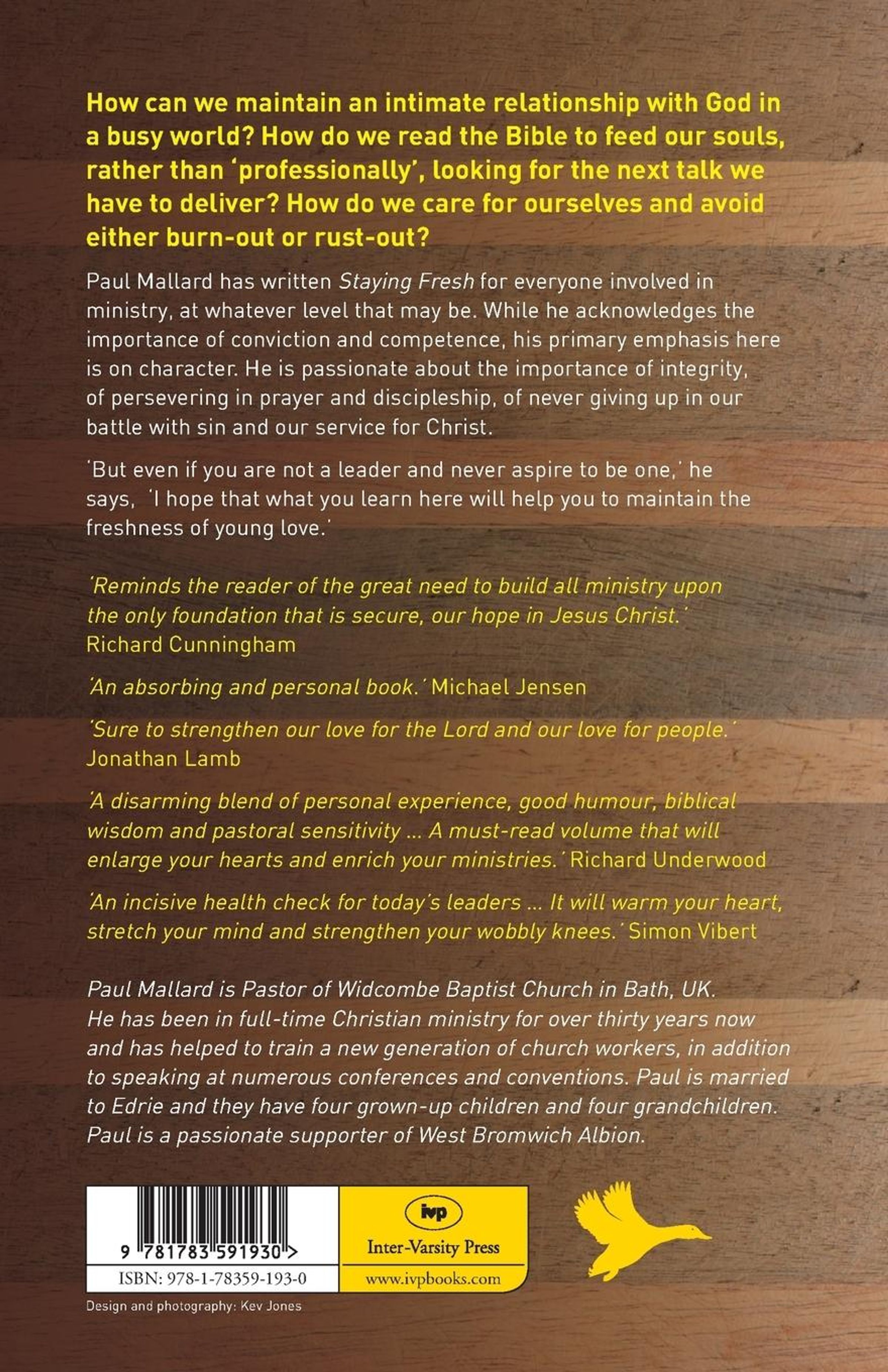 Paul Mallard has written Staying Fresh for everyone involved in ministry, at whatever level that may be. While he acknowledges the importance of conviction and competence, his primary emphasis here is on character. He is passionate about the importance of integrity, of persevering in prayer and discipleship, of never giving up in our battle with sin and our service for Christ.