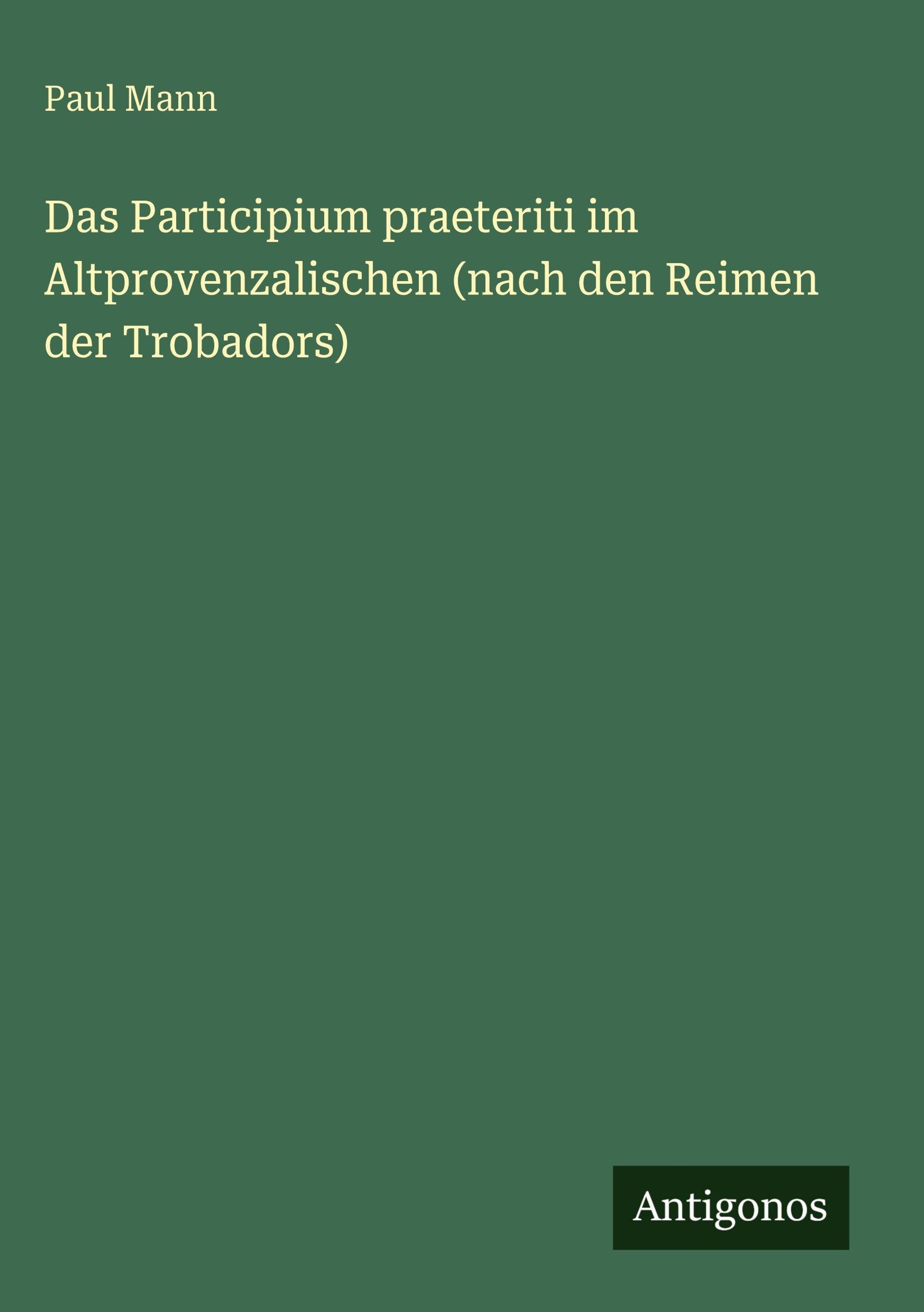 Paul Mann: Das Participium praeteriti im Altprovenzalischen (nach den Reimen der Trobadors), Gebunden