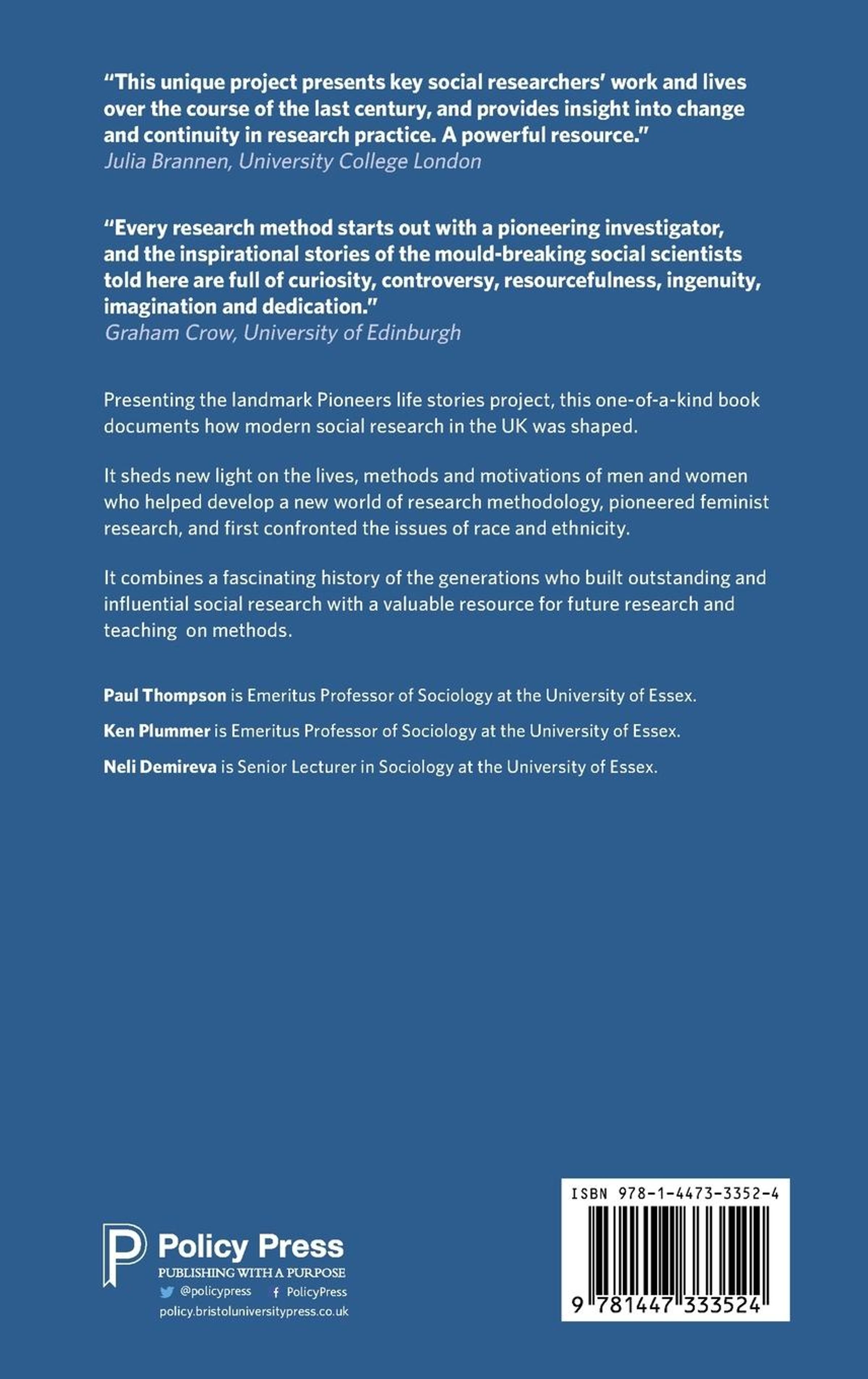 Presenting the landmark Pioneers life stories project, this one-of-a-kind book documents how modern social research in the UK was shaped. It sheds new light on the lives, methods and motivations of men and women who helped develop a new world of research methodology, pioneered feminist research, and first confronted the issues of race and ethnicity. It combines a fascinating history of the generations who built outstanding and influential social research with a valuable resource for future research and teaching on methods.
