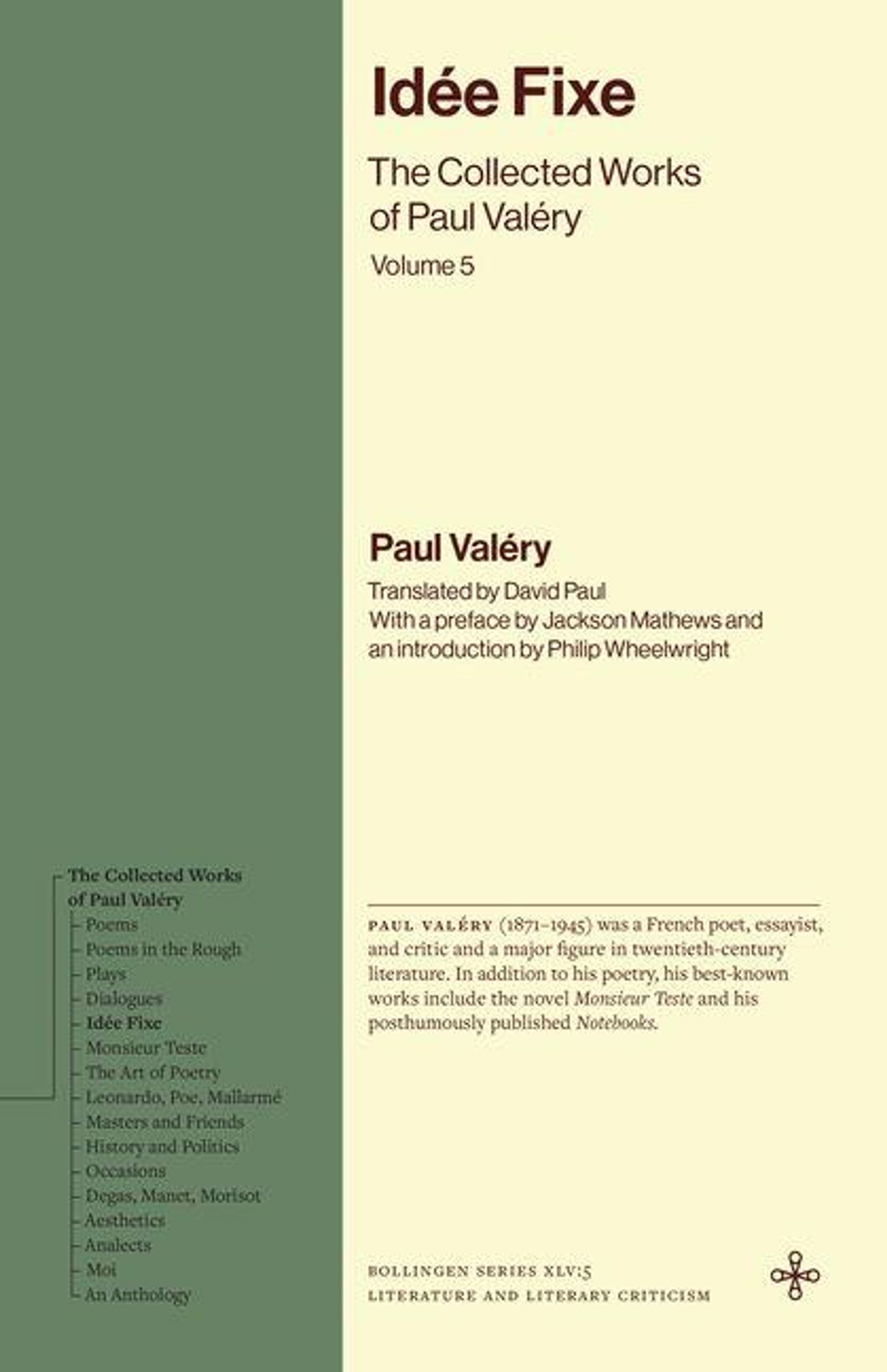 The Collected Works of Paul Valéry, the first collected edition of the writer in English, features new translations, the original French on facing pages for poetic works, and editorial notes.