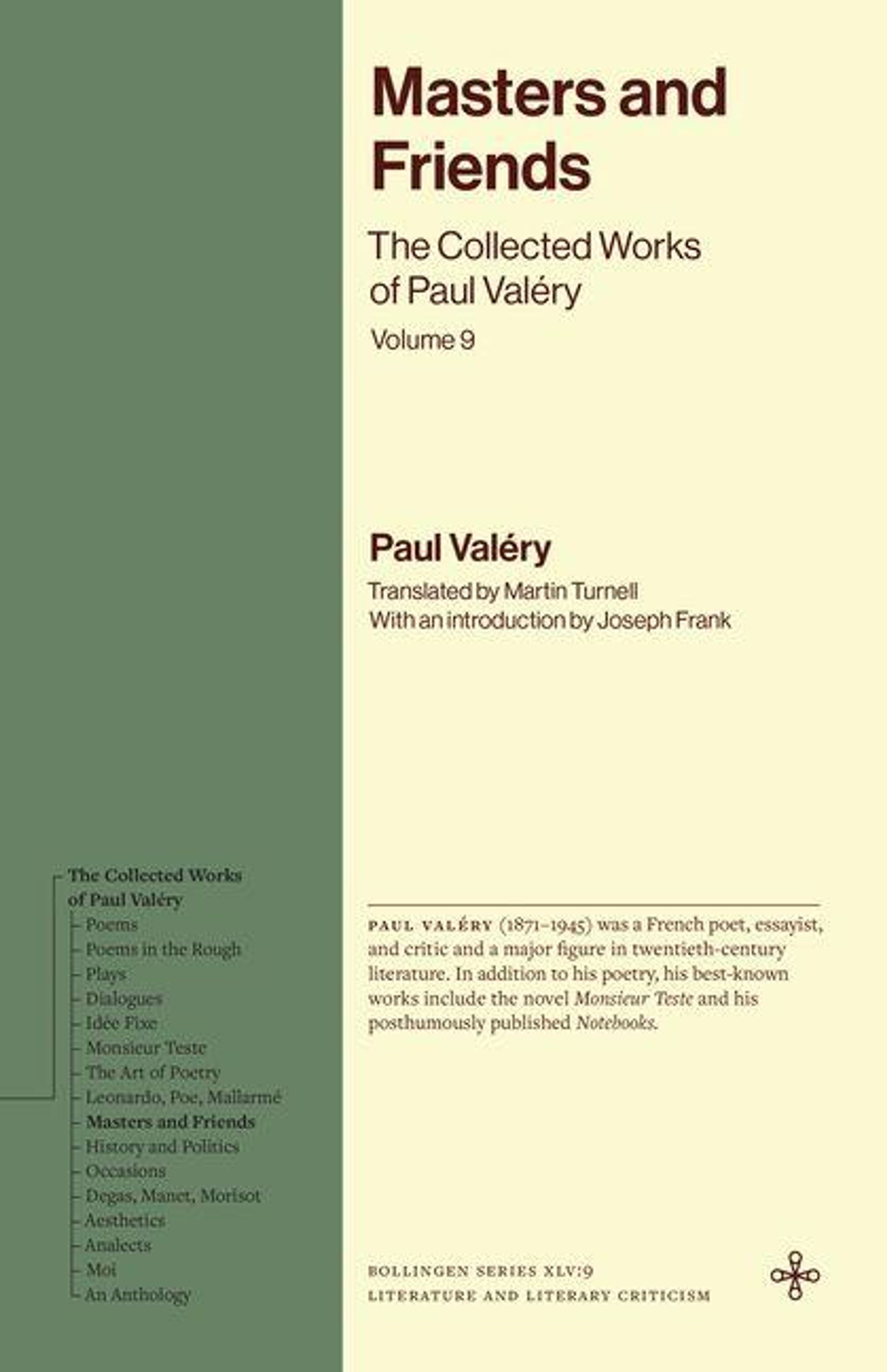 "Masters and Friends: The Collected Works of Paul Valéry, Volume 9." Paul Valéry-Info, grüne und beige Buchcovergestaltung., Buch