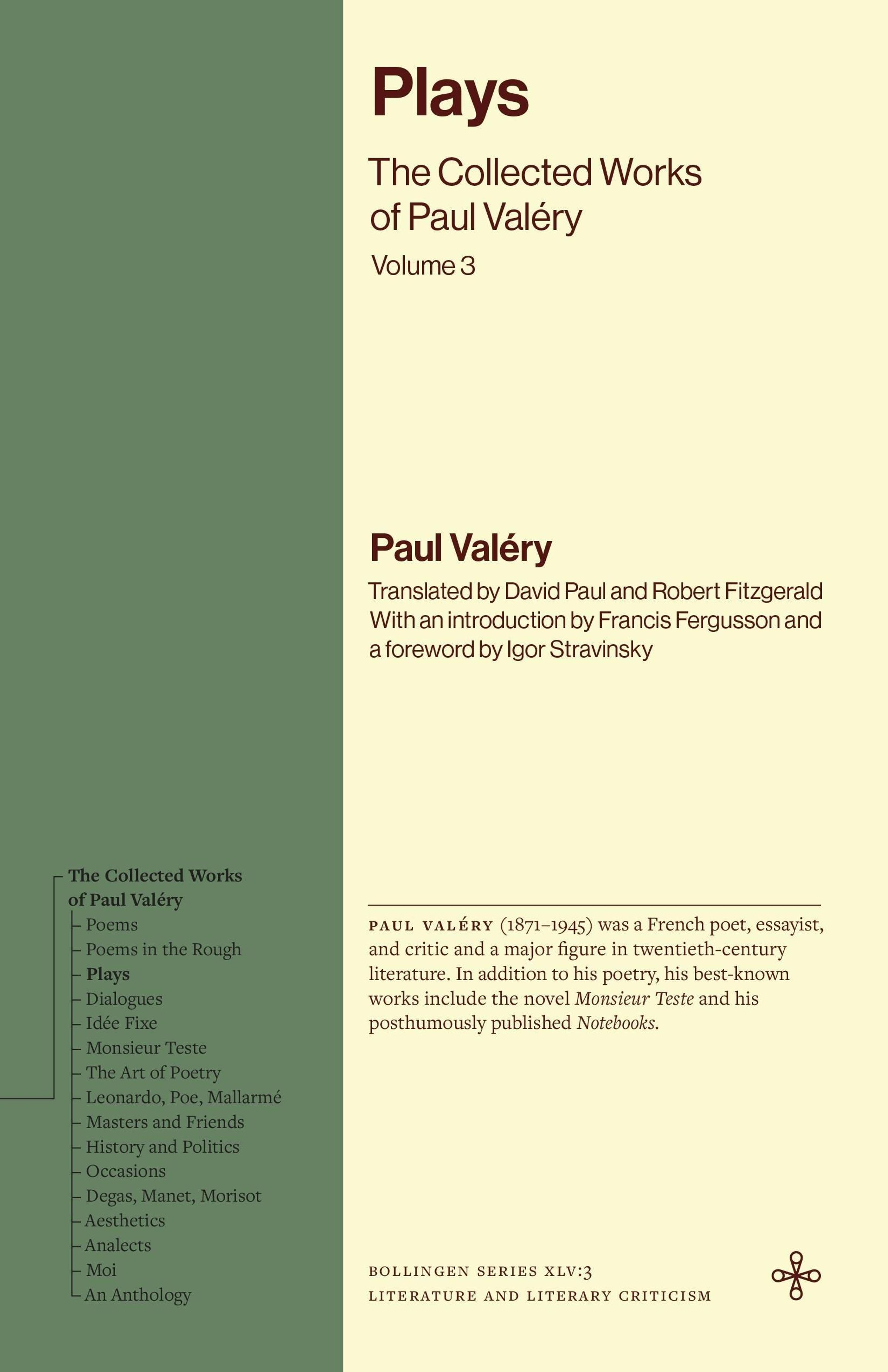 „Plays: The Collected Works of Paul Valéry, Volume 3“ Titel, Autoren, Werkübersicht und Infos über Valéry auf beigem Hintergrund., Buch