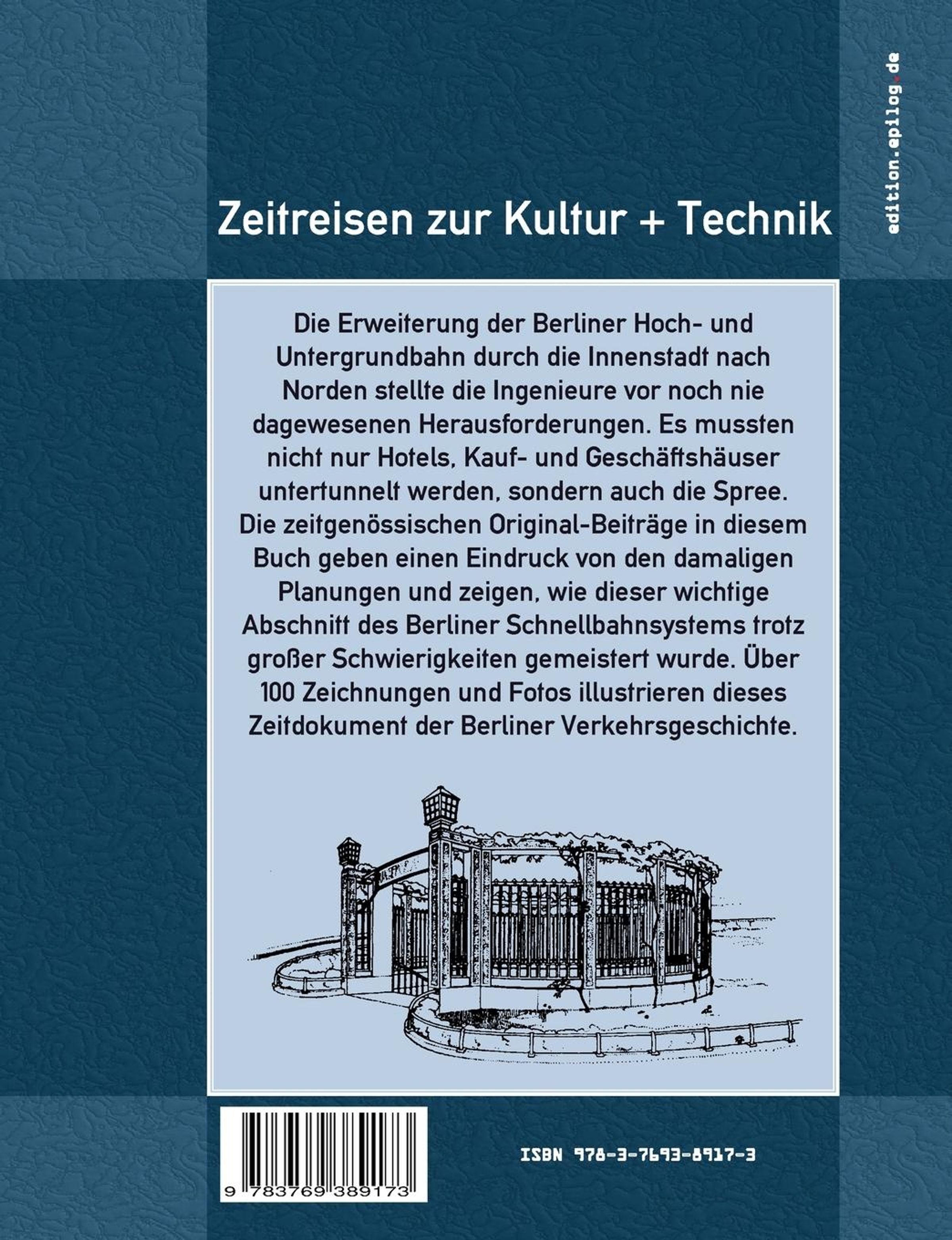Die Erweiterung der Berliner Hoch- und Untergrundbahn durch die Innenstadt nach Norden stellte die Ingenieure vor noch nie dagewesenen Herausforderungen. Es mussten nicht nur Hotels, Kauf- und Geschäftshäuser untertunnelt werden, sondern auch die Spree. Die zeitgenössischen Original-Beiträge in diesem Buch geben einen Eindruck von den damaligen Planungen und zeigen, wie dieser wichtige Abschnitt des Berliner Schnellbahnsystems trotz großer Schwierigkeiten gemeistert wurde. Über 100 Zeichnungen und Fotos illustrieren dieses Zeitdokument der Berliner Verkehrsgeschichte.