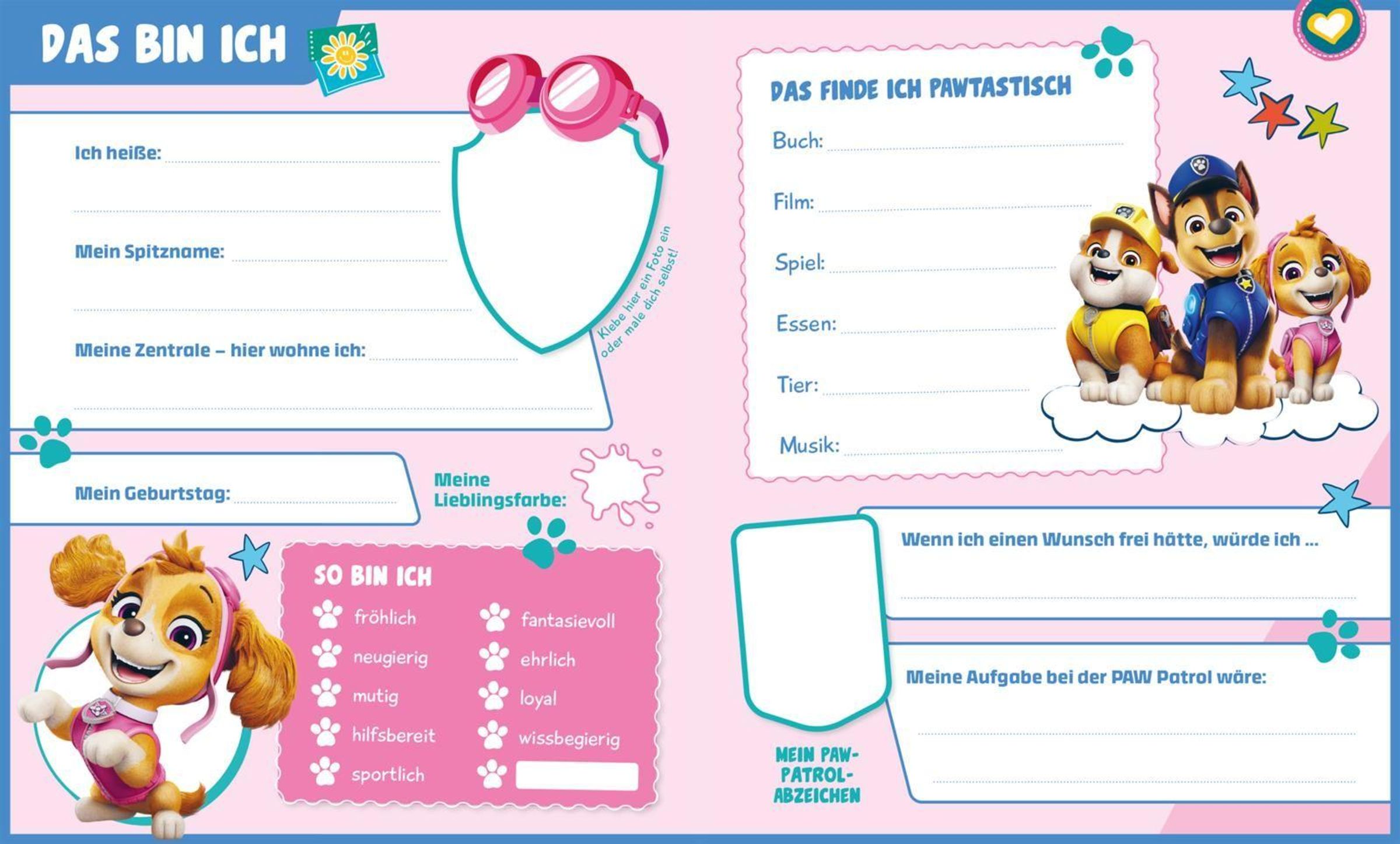 Mehr als 20 Freunde und Freundinnen können sich in diesem kunterbunten Album verewigen. Mit kreativen Eintragseiten zum Fragen beantworten, Ausmalen und Ankreuzen wird jedes Profil zu einem individuellen Abenteuer. So entstehen ganz eigene PAWtastische Erinnerungen an die ersten Freundschaftsabenteuer.