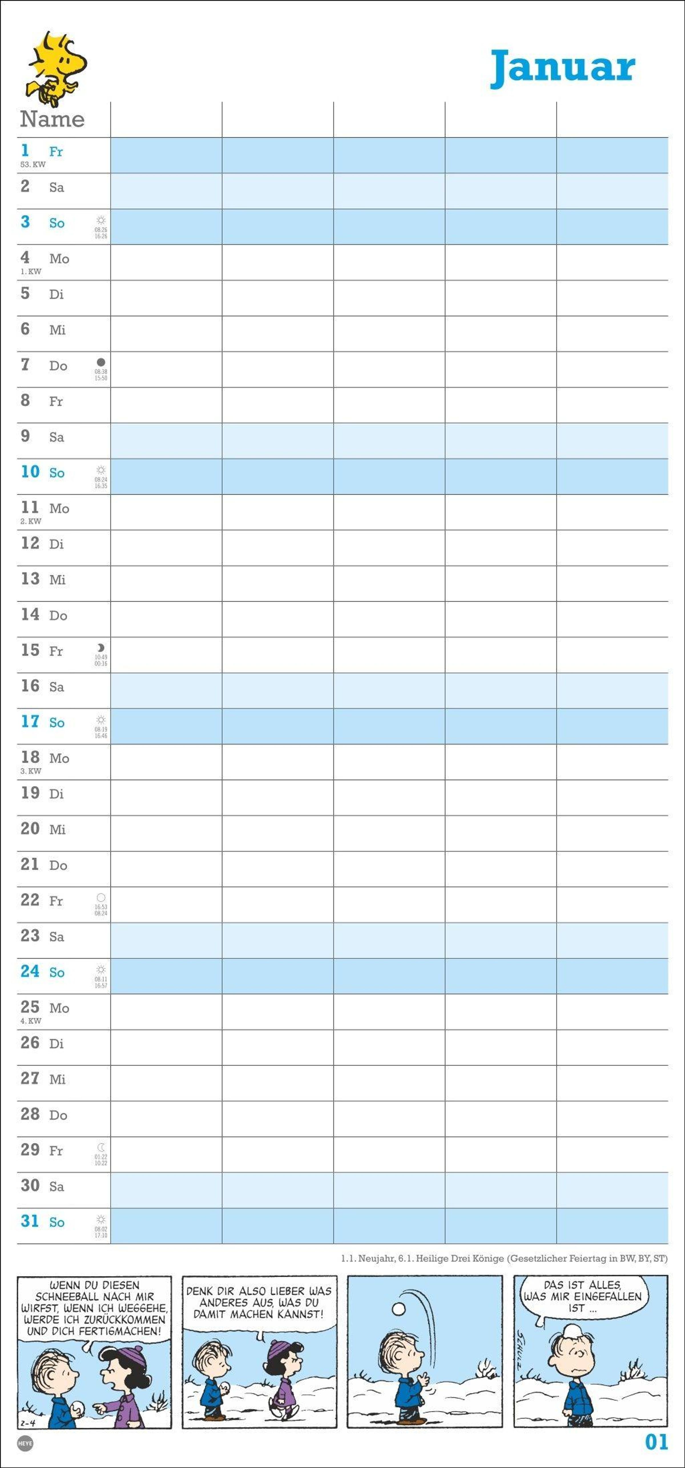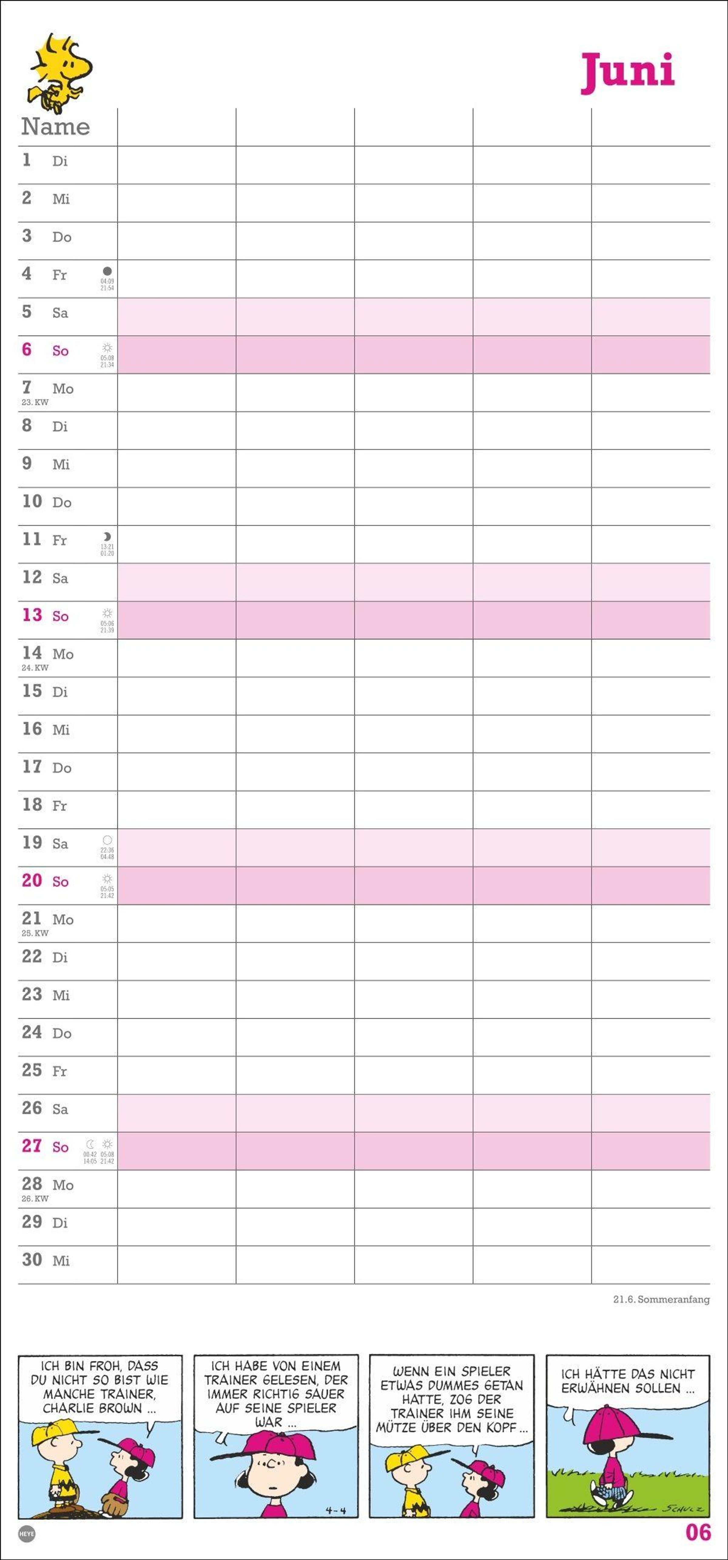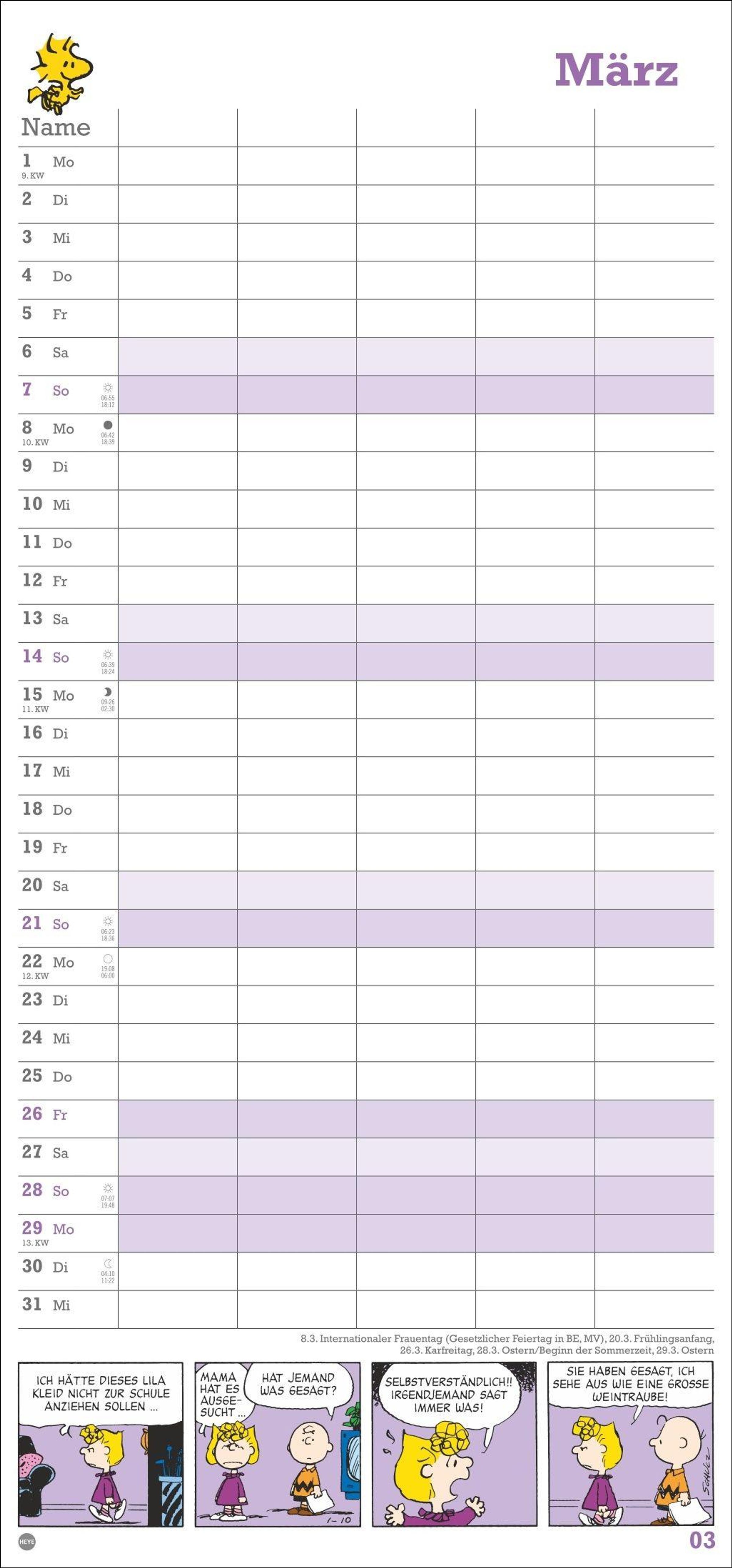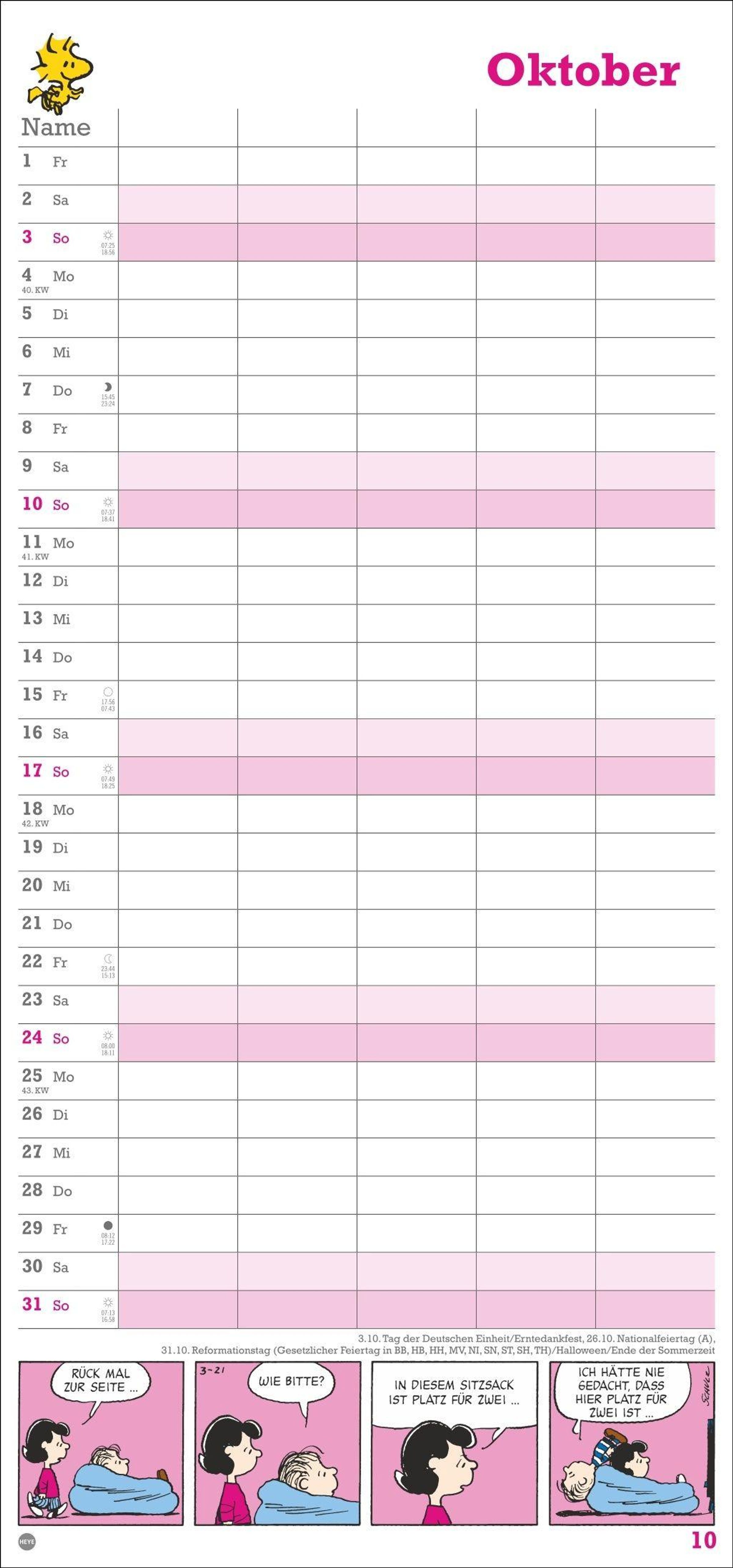 - Kalender für Familien mit 5 Spalten. Humorvoll illustrierter Familien-Wandkalender mit Snoopy, Charlie Brown und Co.