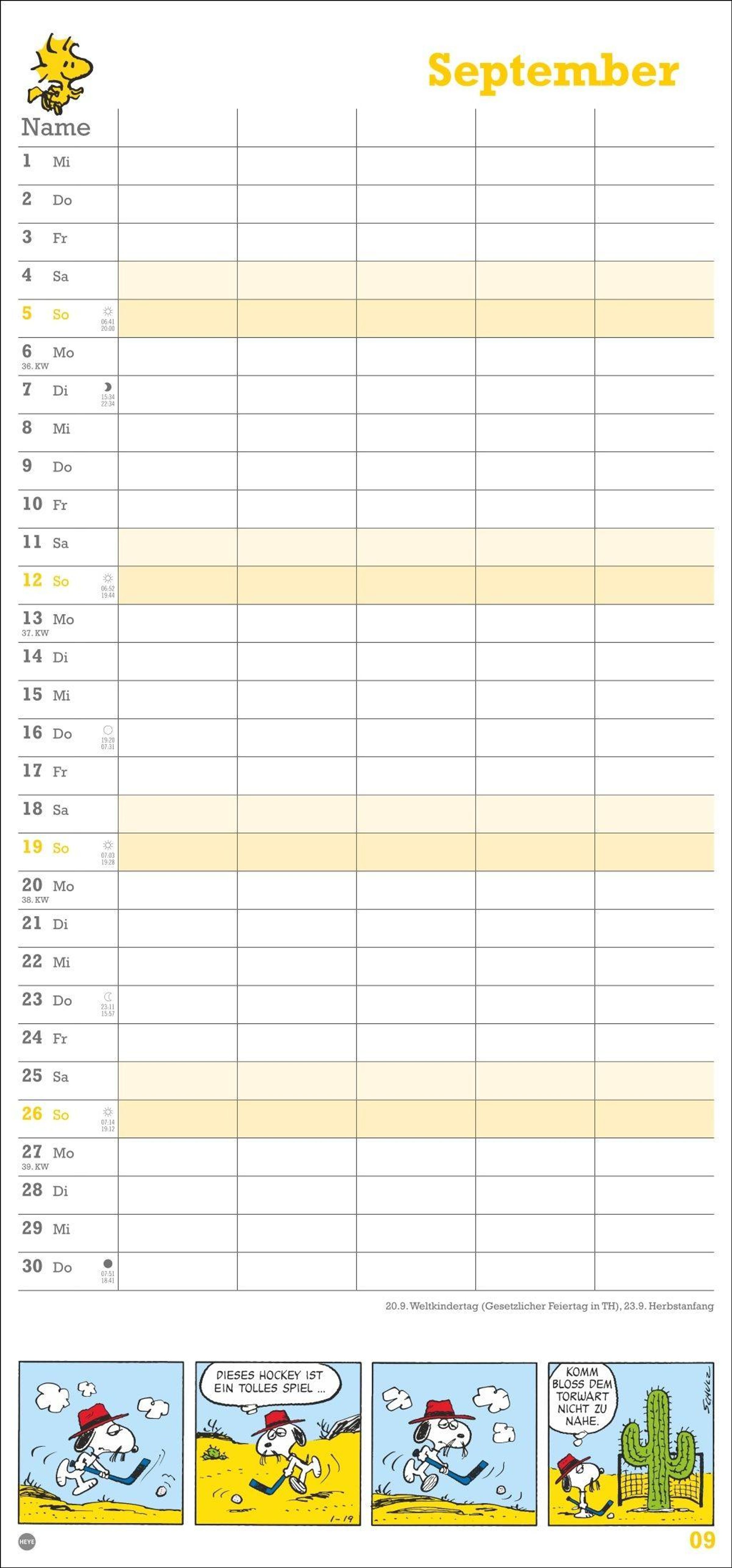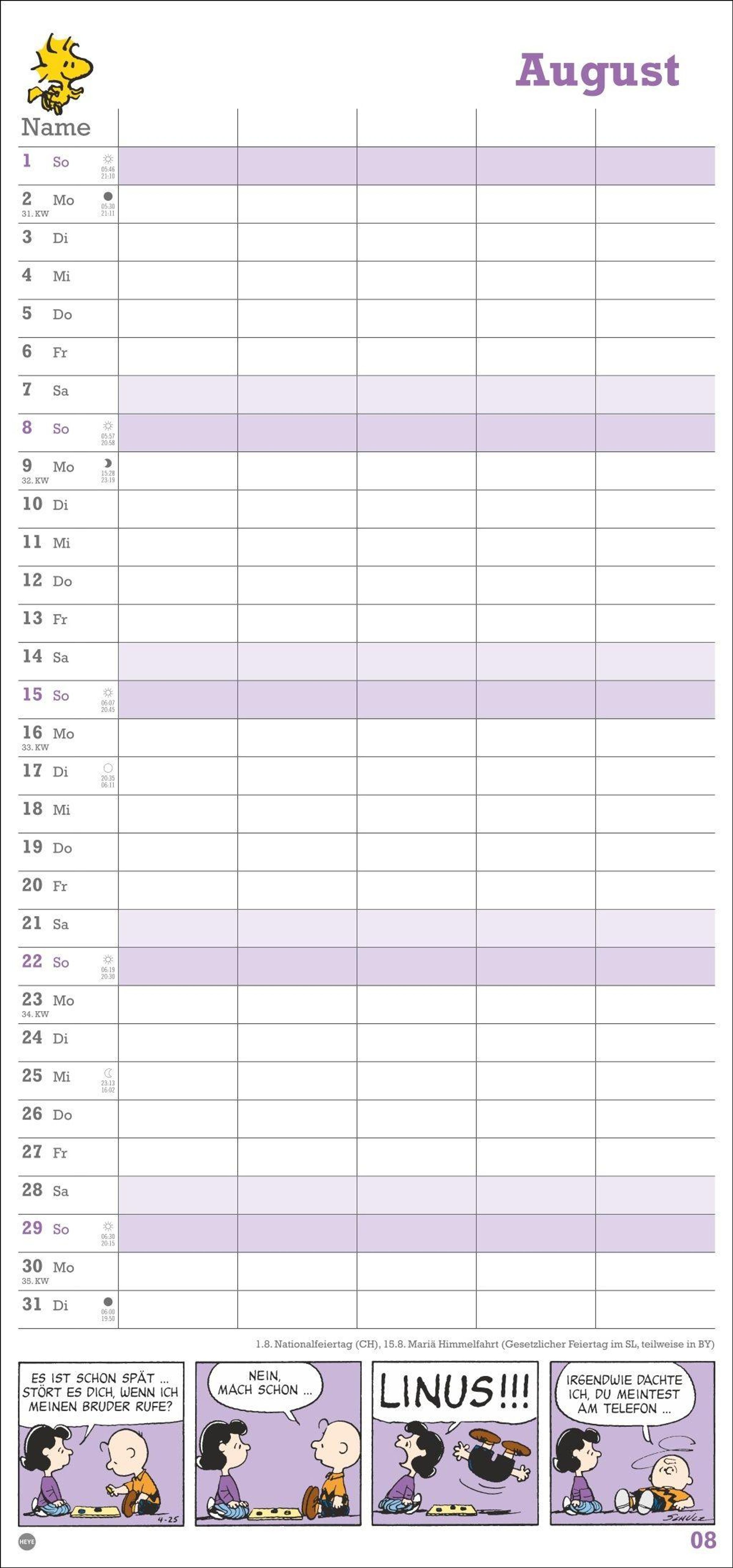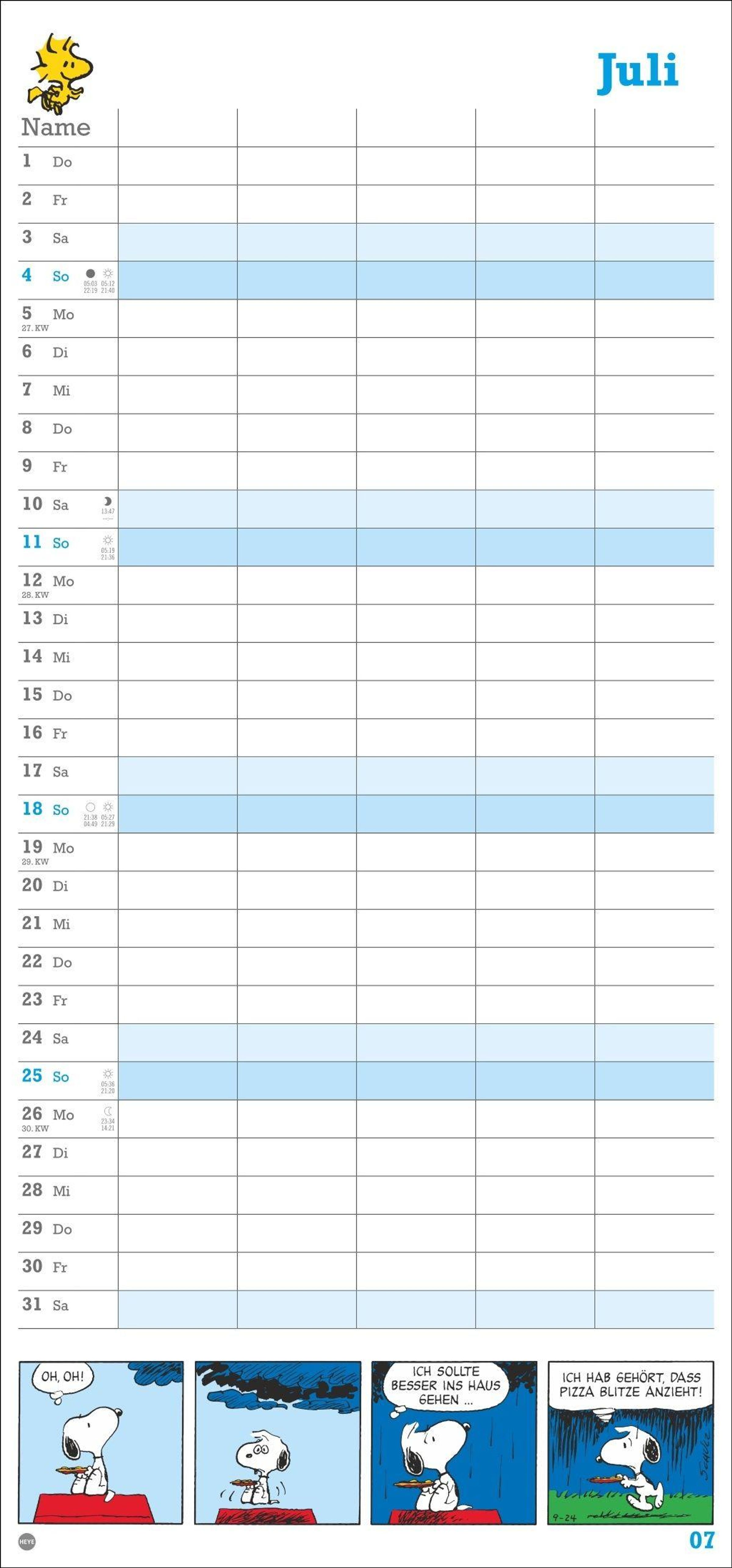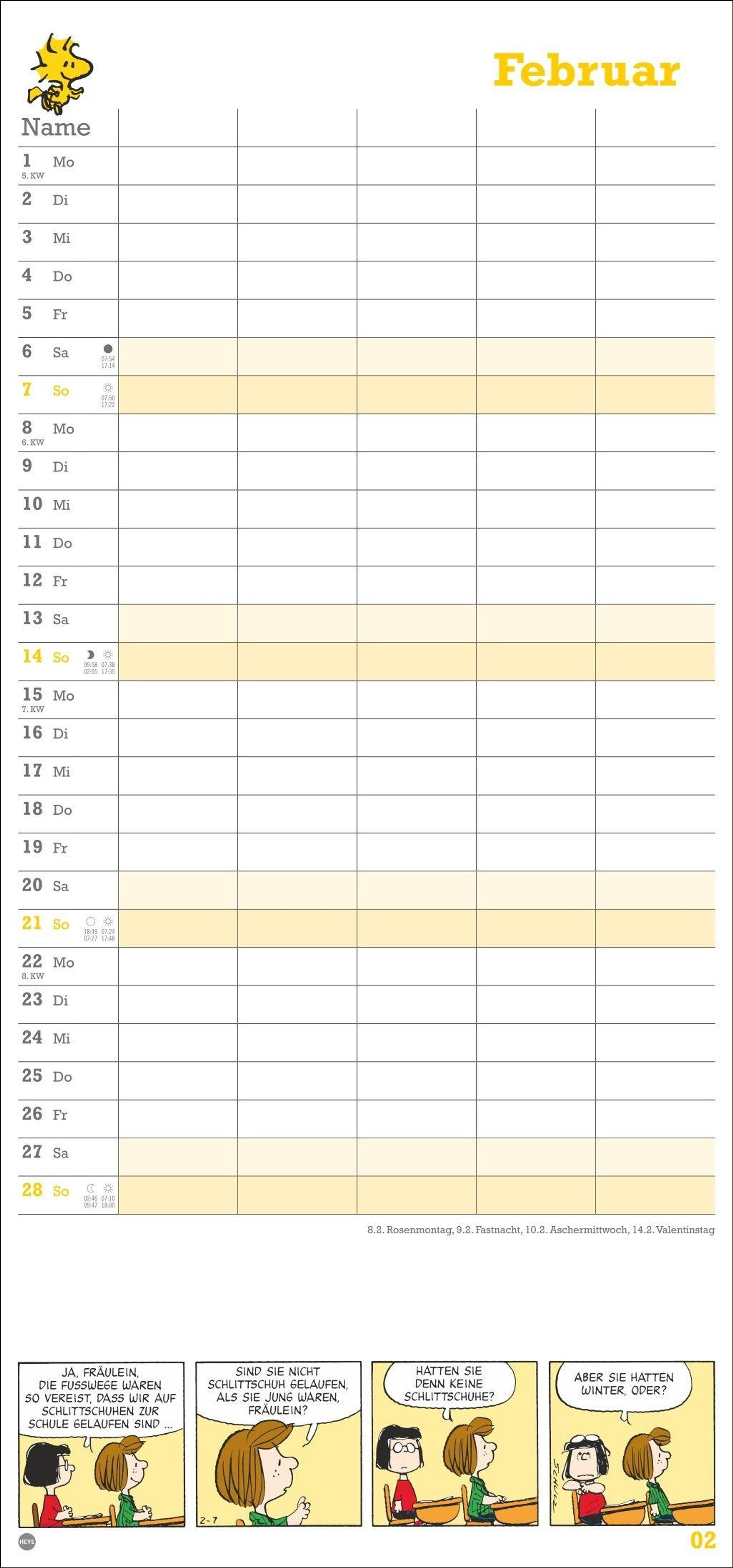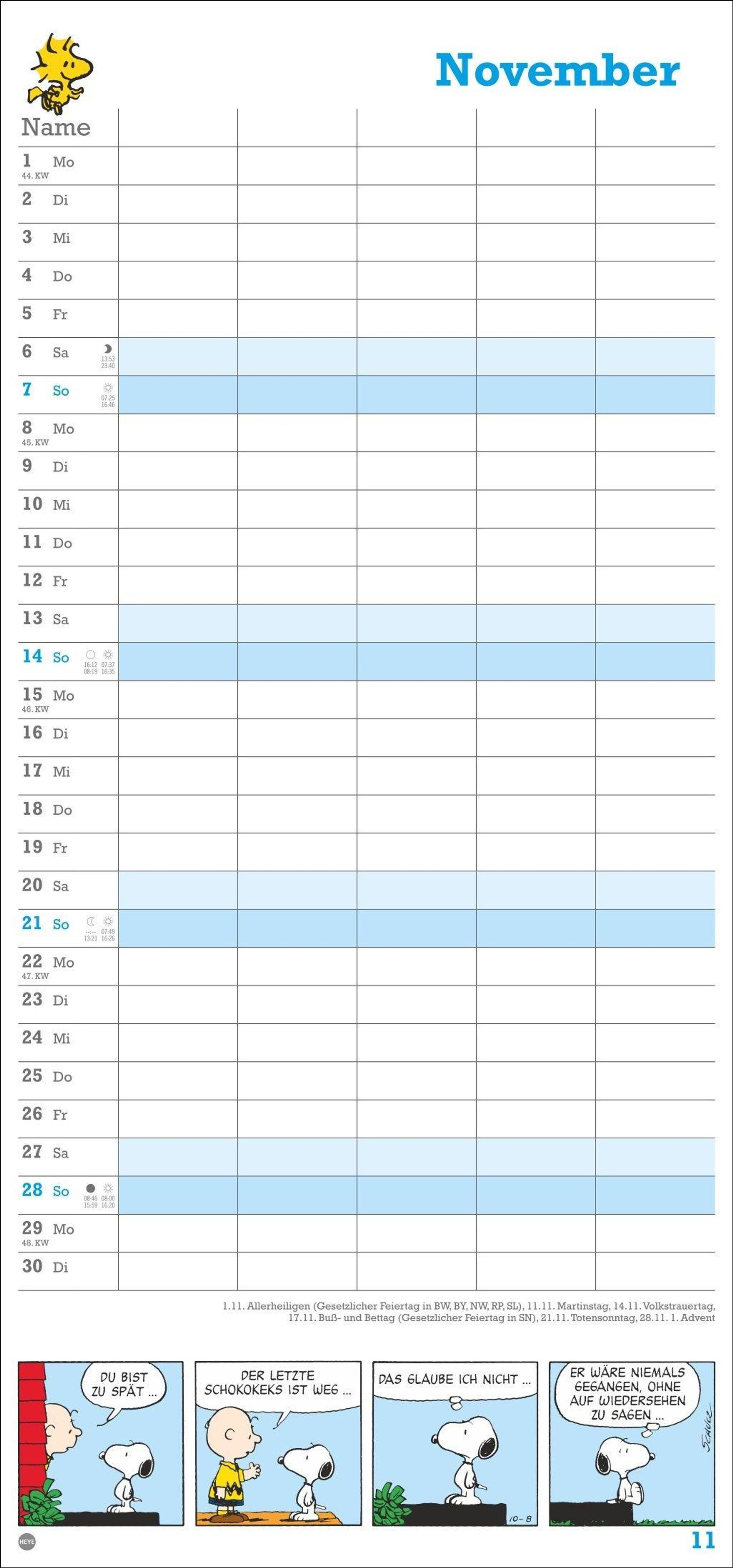 - Kalender für Familien mit 5 Spalten. Humorvoll illustrierter Familien-Wandkalender mit Snoopy, Charlie Brown und Co.
