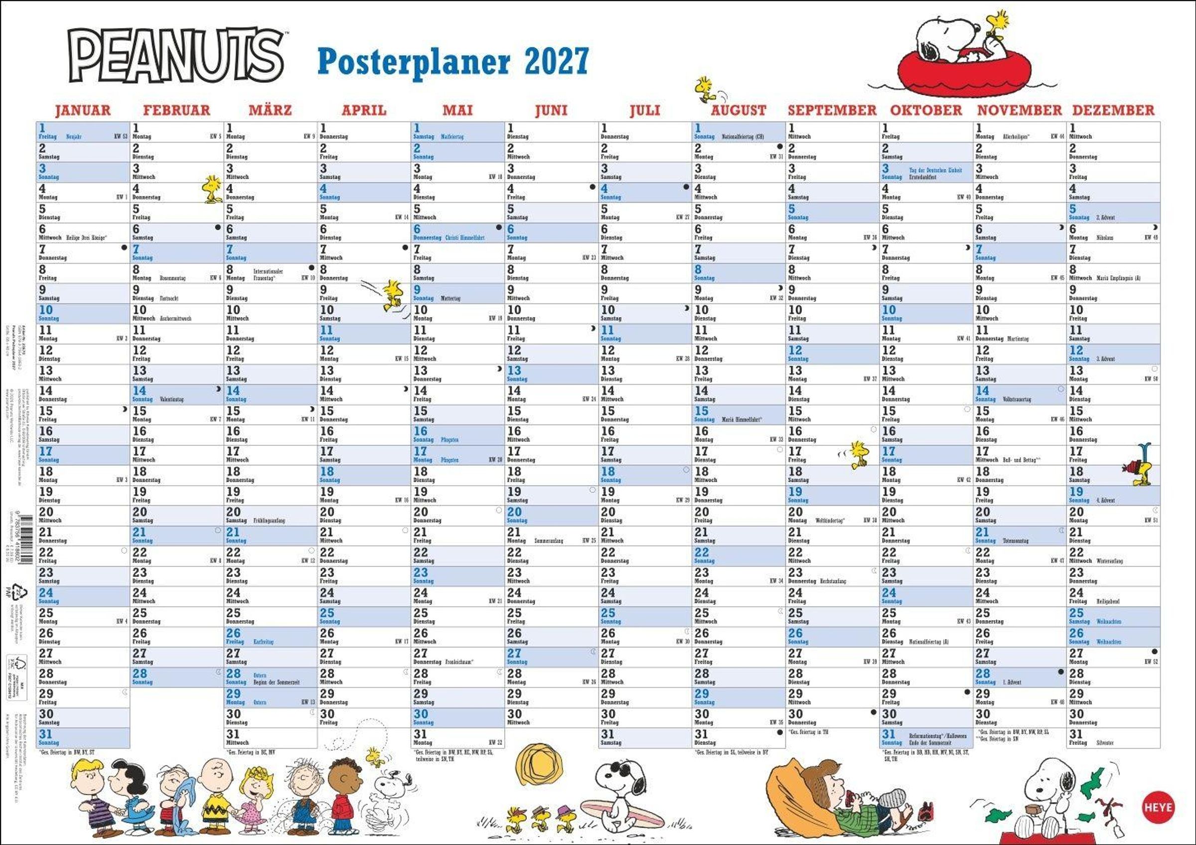 Für alle, die richtig was vorhaben: Gute Laune-Kalenderposter 2027 mit Charlie Brown und seinen Freunden und viel Platz für alle Termine