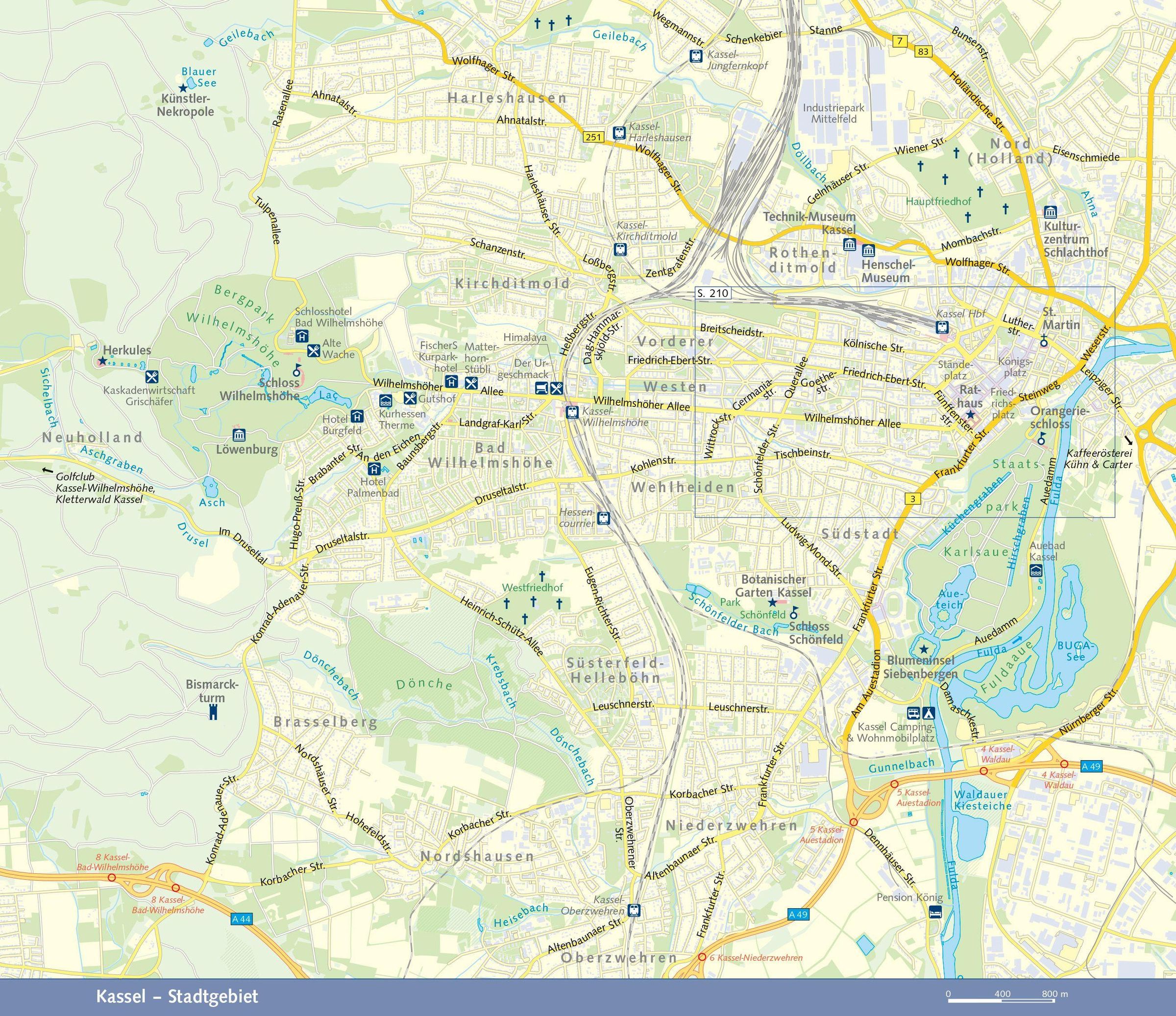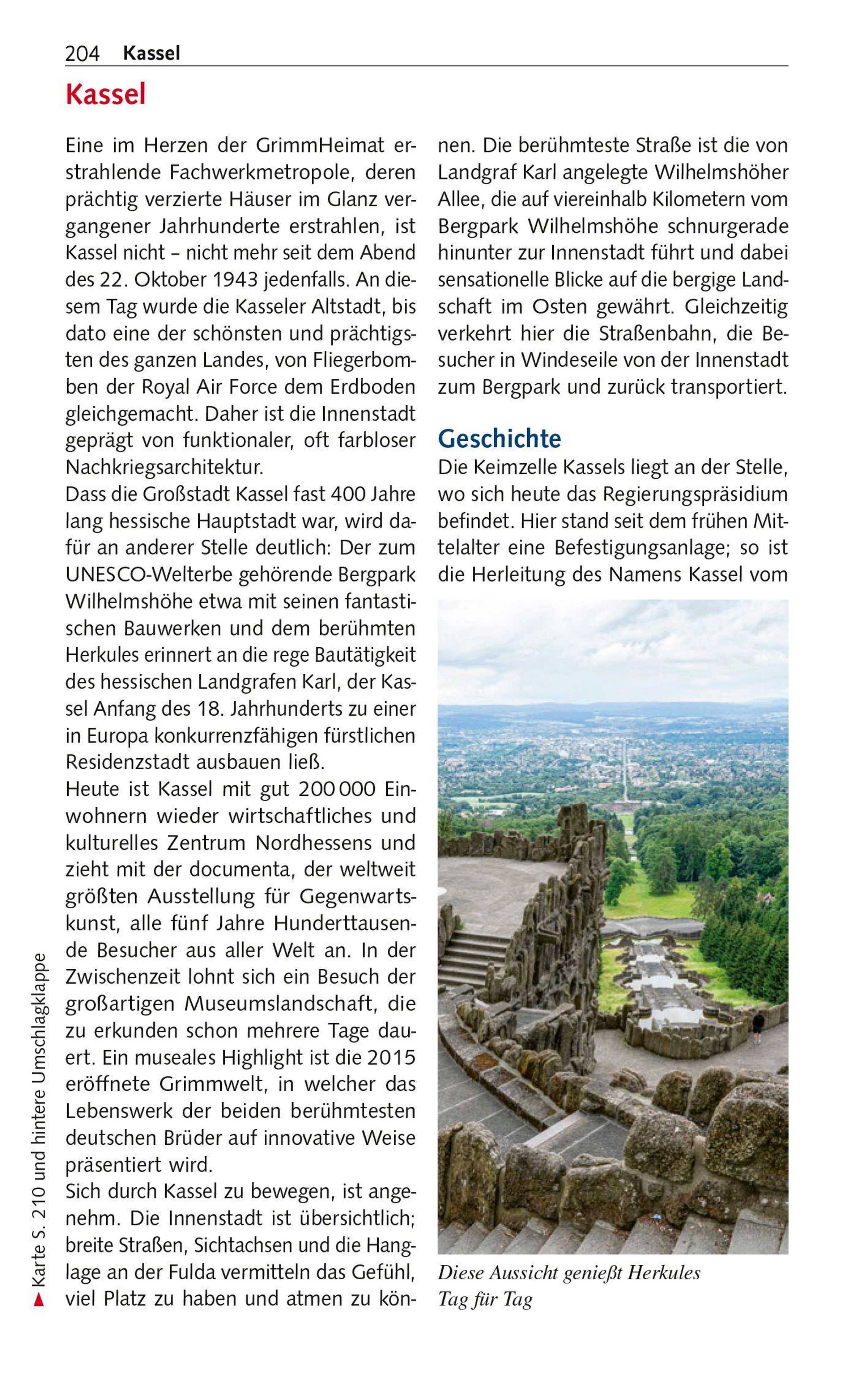 Im munteren Kassel warten eine vielfältige Museumslandschaft und herrliche Parks, der Bergpark Wilhelmshöhe mit dem berühmten Herkules ist sogar UNESCO-Welterbe. Mehrere kleine Mittelgebirge mit ausgedehnten Wäldern und der Nationalpark Kellerwald-Edersee bieten endlose Möglichkeiten zum Wandern und Radfahren. Auf Schritt und Tritt begegnet man hier den Märchenfiguren der Brüder Grimm und anderen Sagengestalten. Traditionsreiche Kurorte wie Bad Wildungen oder Bad Hersfeld locken mit Moorpackung, Thermalbad und Soleinhalation.