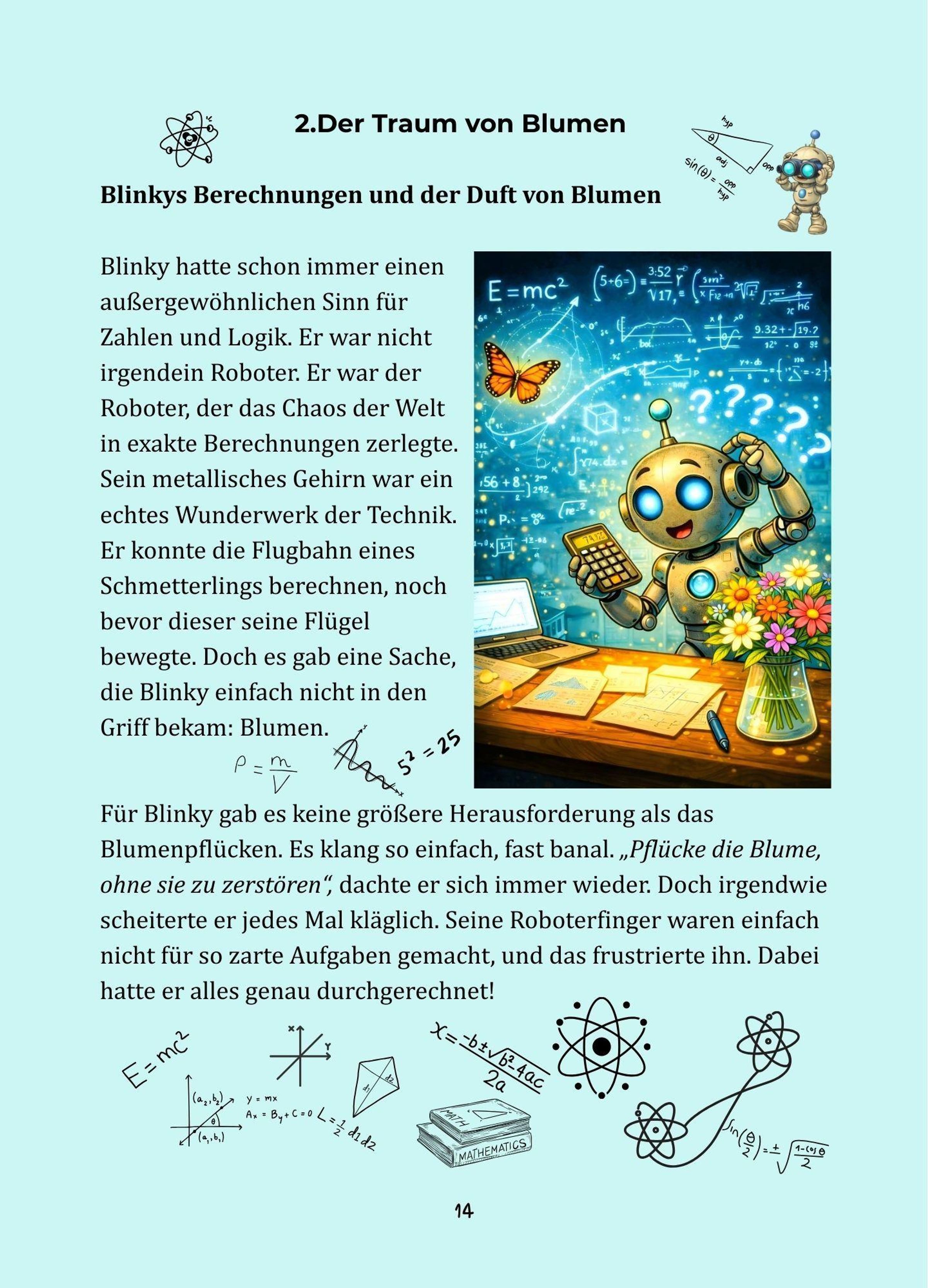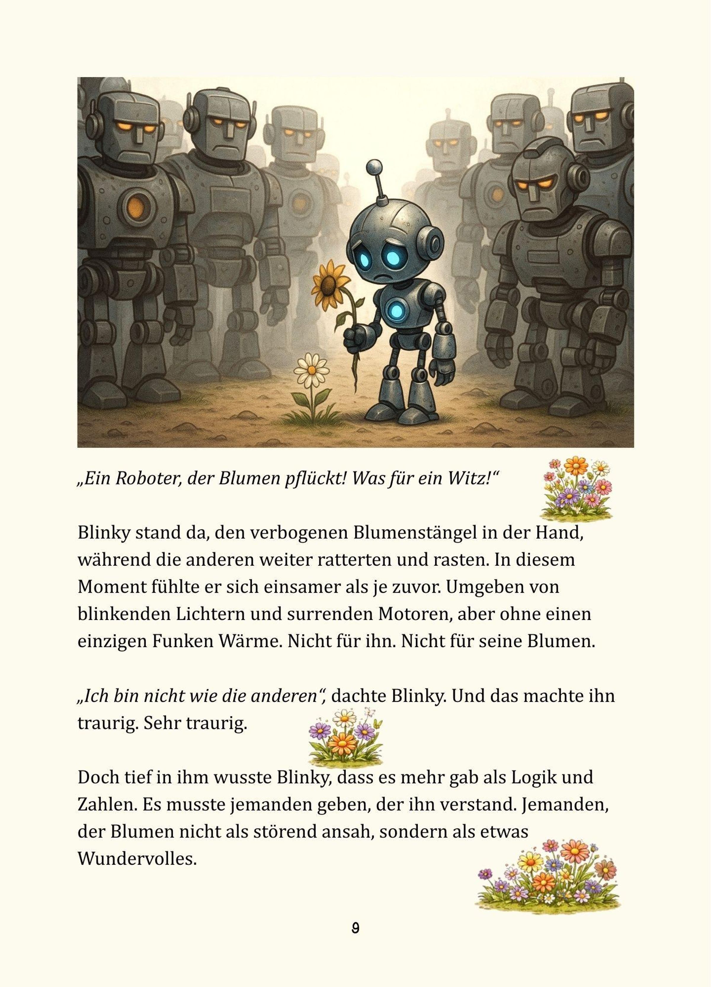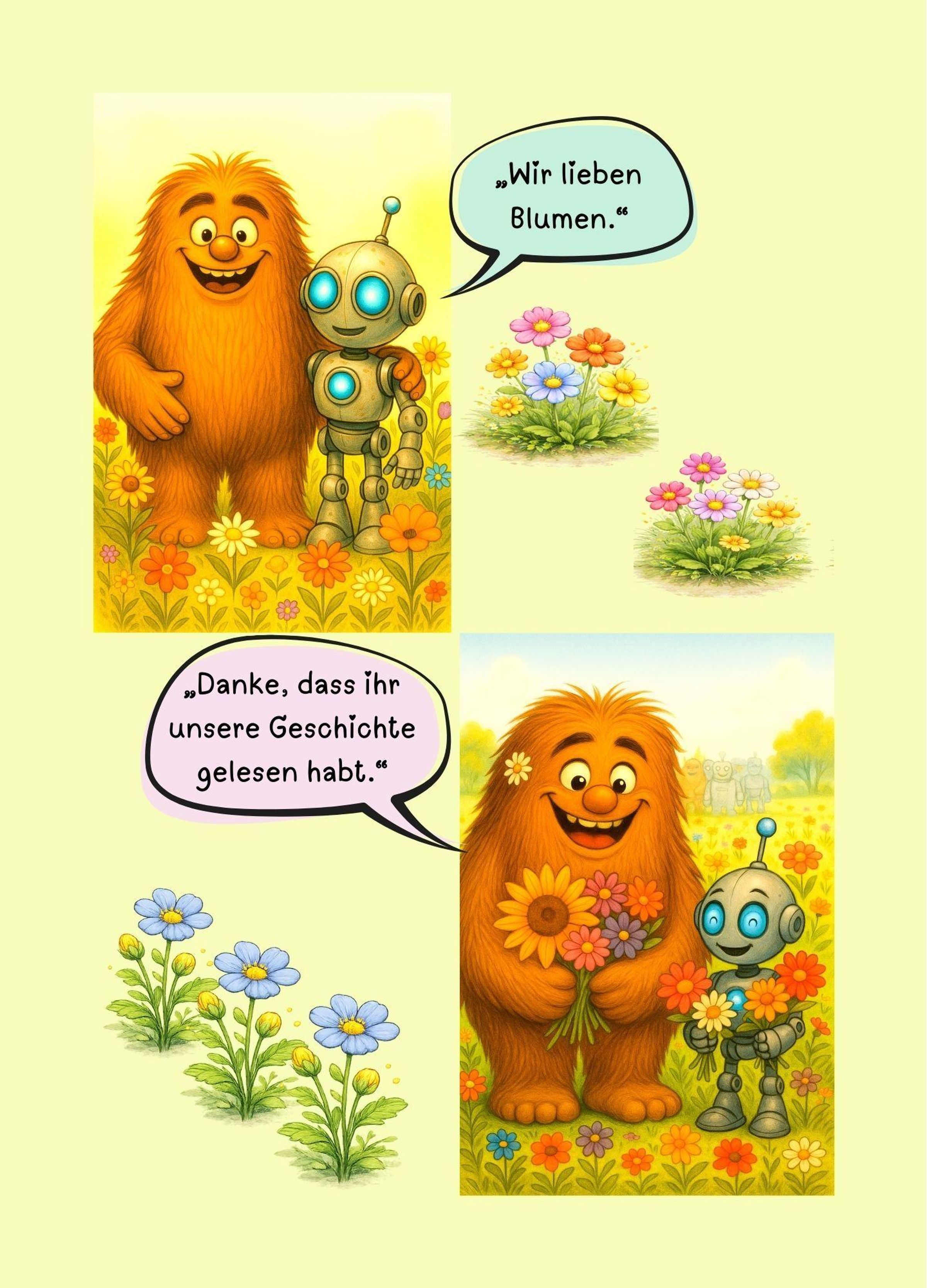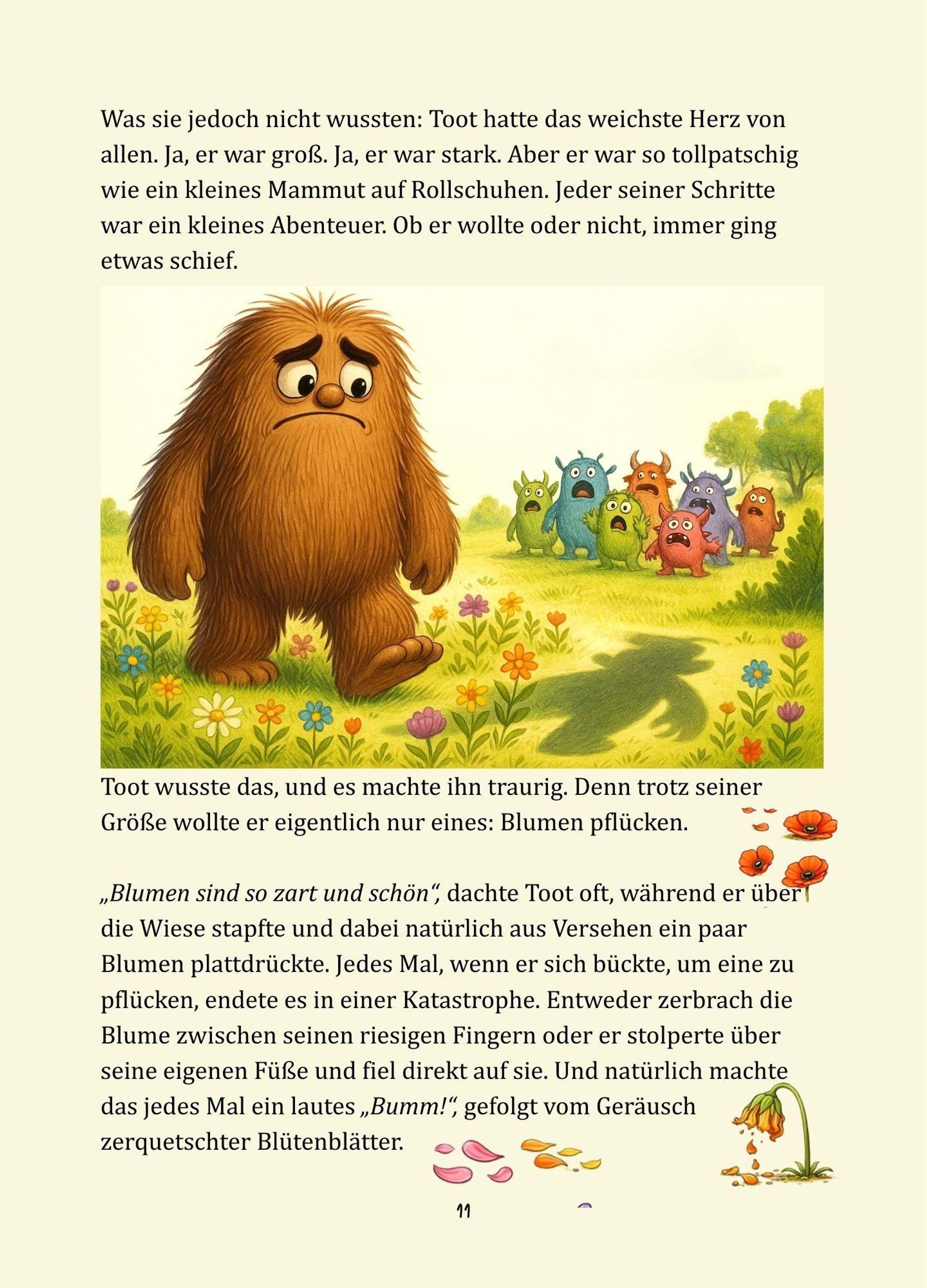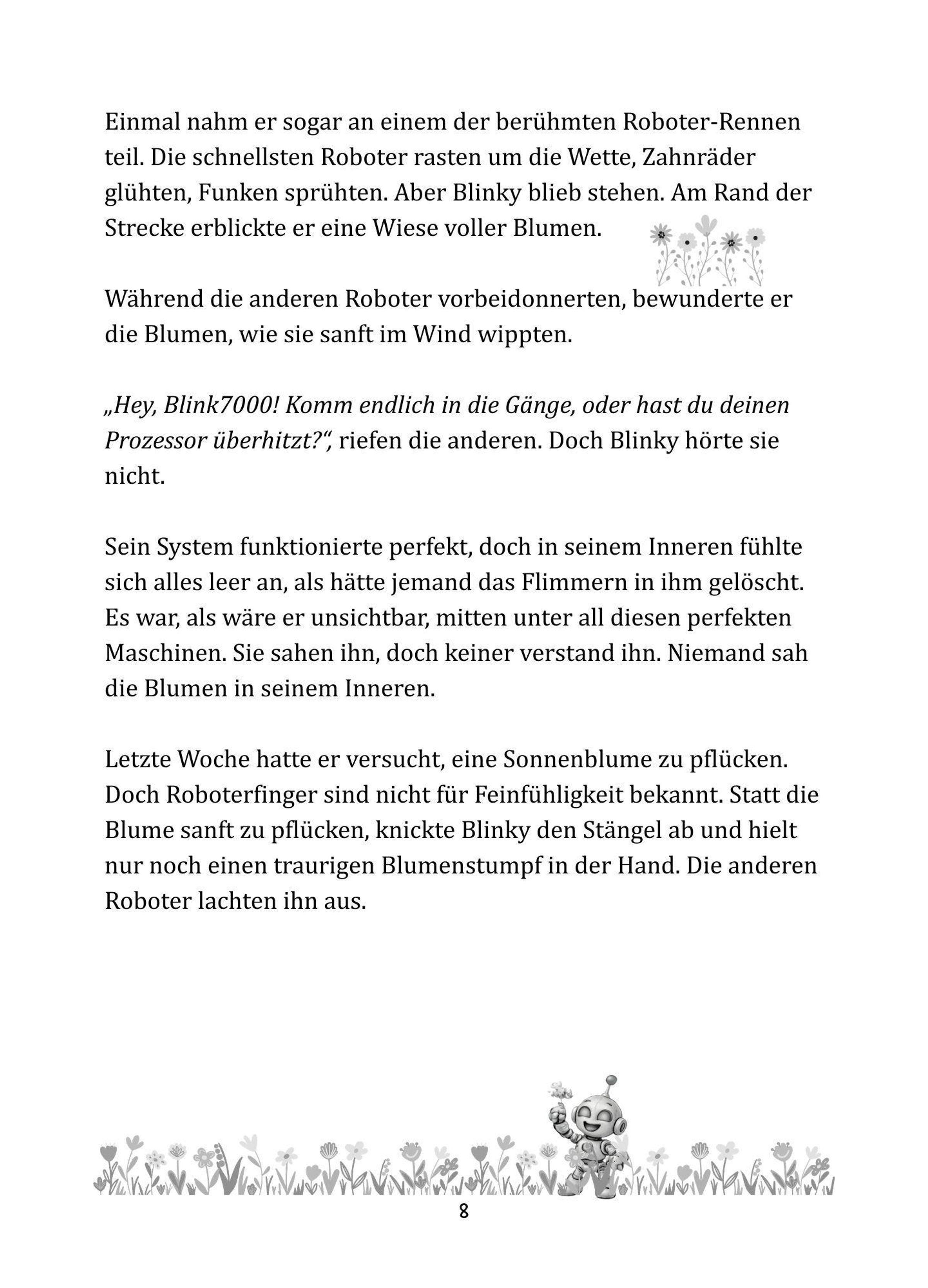 Blinky ist ein akribischer Roboter, der alles berechnet, plant und optimieren möchte. Toot dagegen ist ein großes, liebenswertes Monster mit riesigen Füßen - und einem noch größeren Herzen. Beide lieben Blumen. Doch genau das wird zu ihrer größten Herausforderung: Jedes Mal, wenn sie versuchen, eine Blume zu pflücken, knicken die Stängel oder werden zerdrückt.
