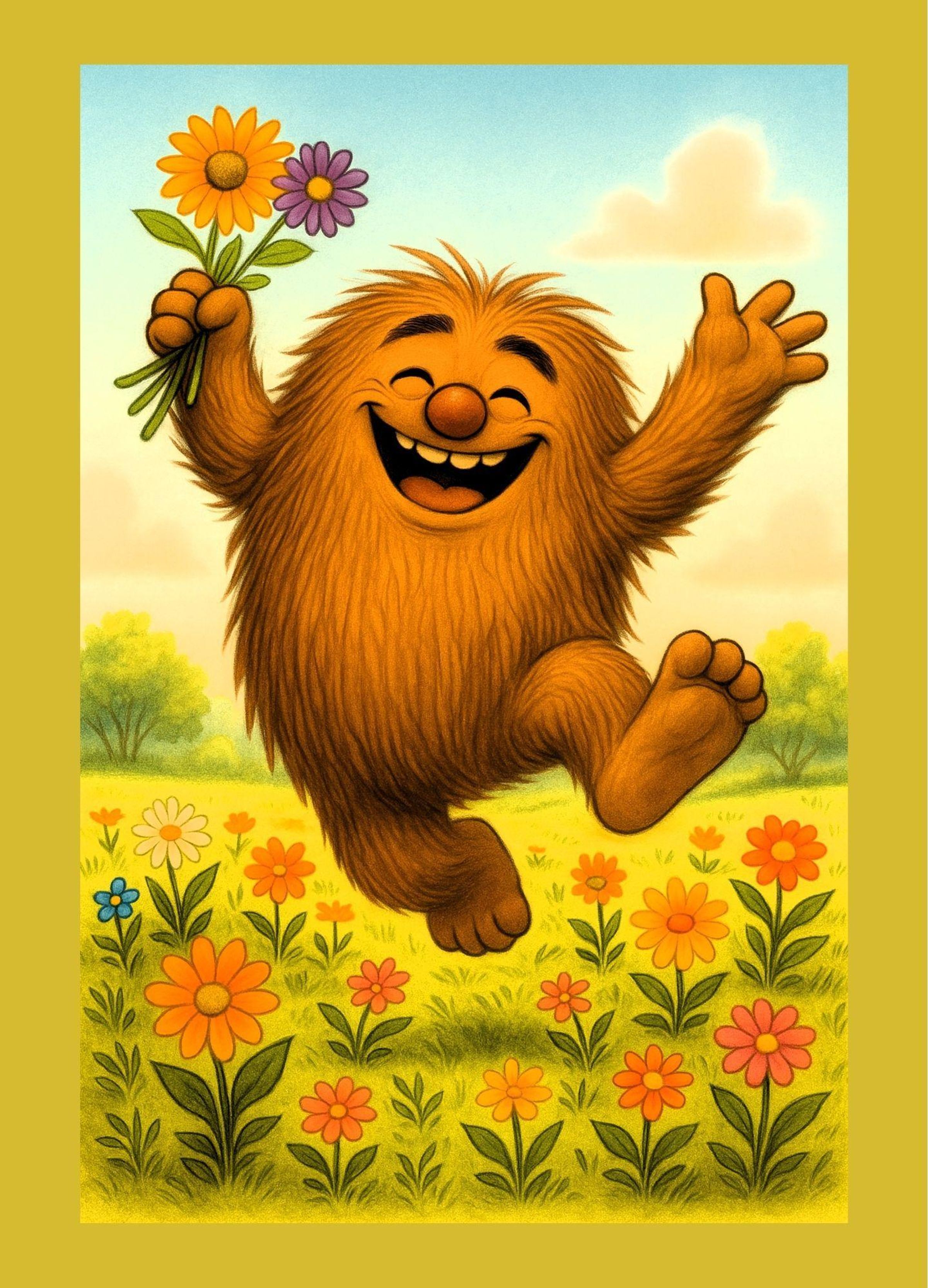 Was passiert, wenn ein Roboter, der alles berechnen möchte, und ein großes Monster, das ständig stolpert, beschließen, gemeinsam eine Blume zu pflücken?