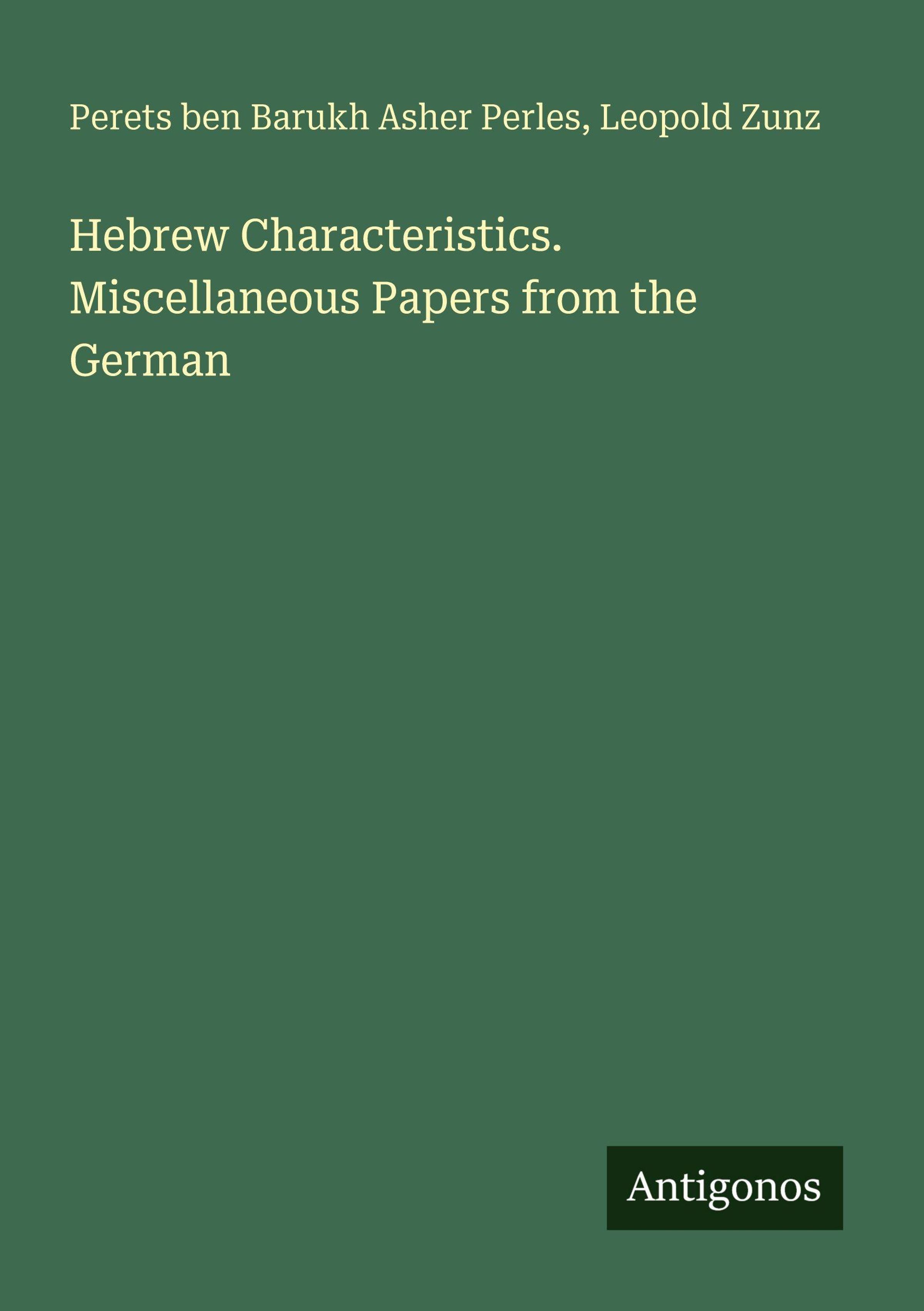 Hebrew Characteristics. Miscellaneous Papers from the German