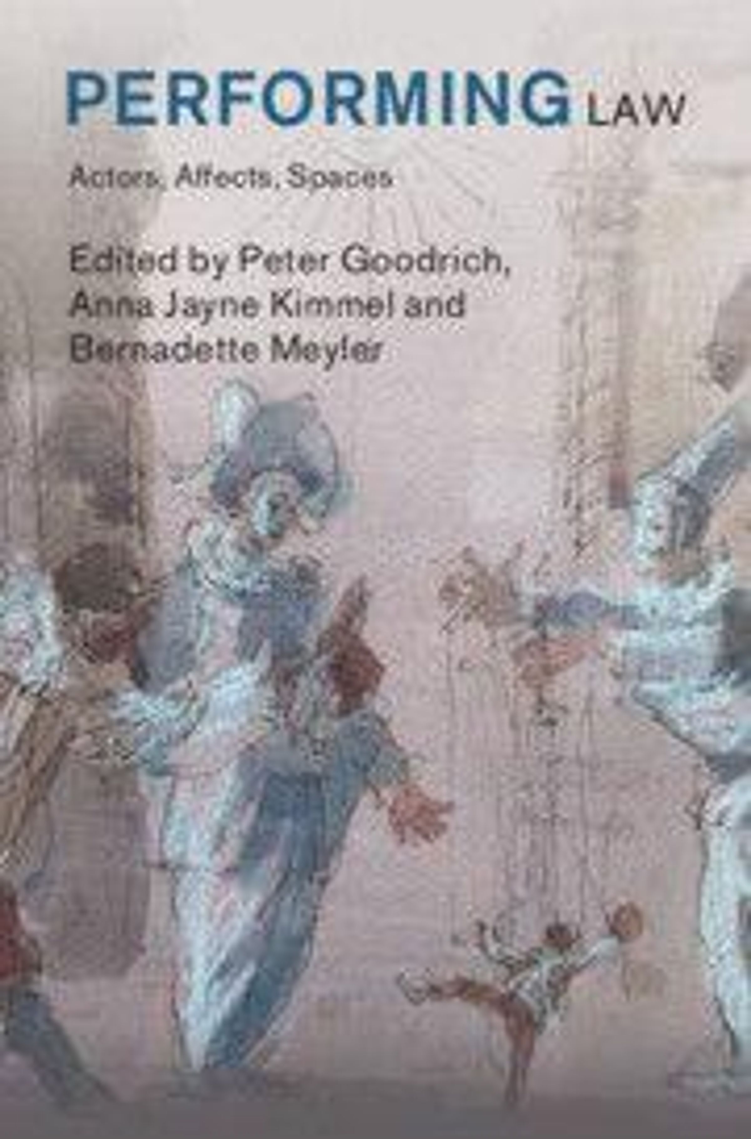 "PERFORMING LAW: Actors, Affects, Spaces. Edited by Peter Goodrich, Anna Jayne Kimmel, Bernadette Meyler." Skizze von Harlekinen., Buch