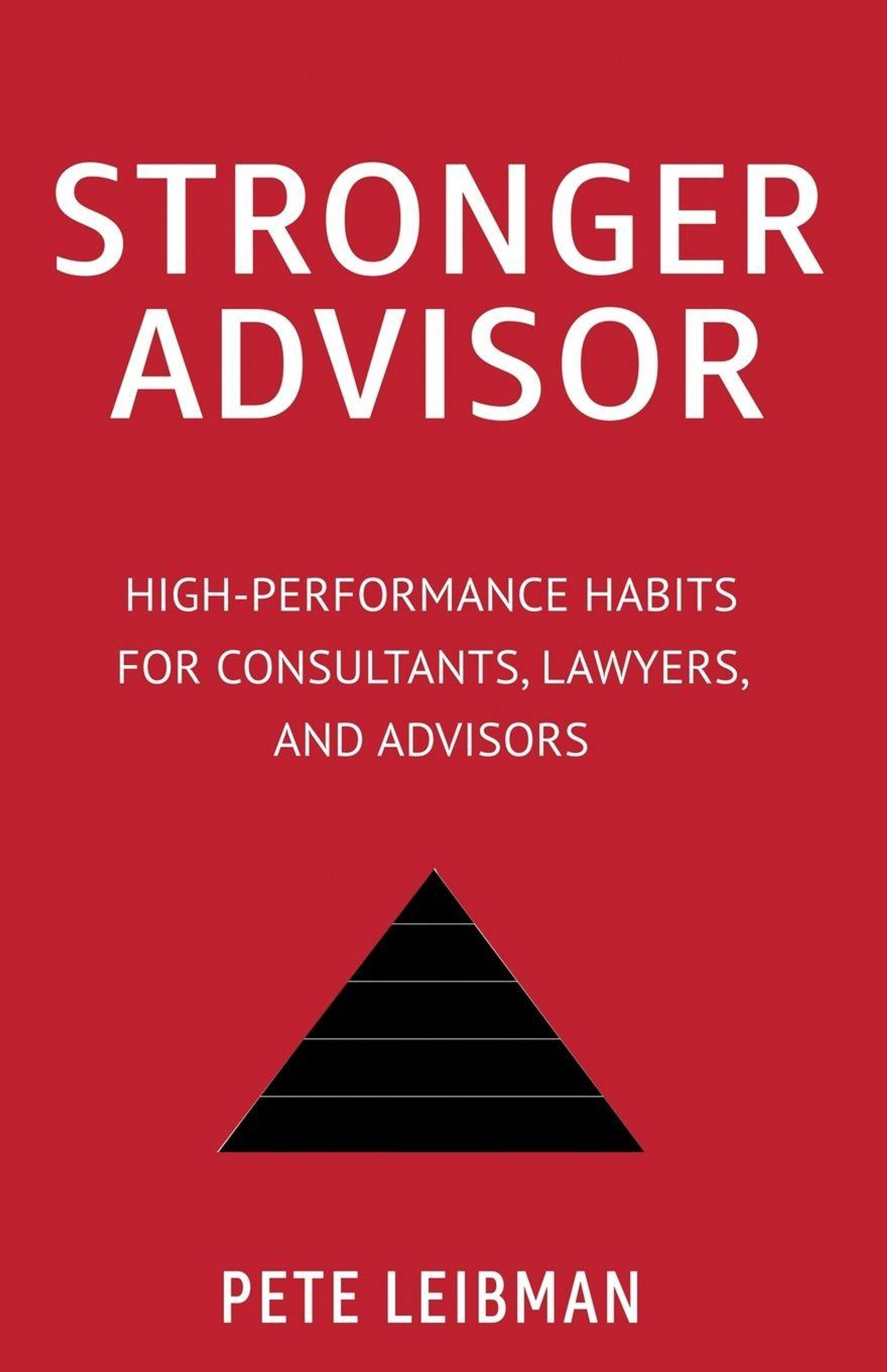 Text: "STRONGER ADVISOR", "HIGH-PERFORMANCE HABITS FOR CONSULTANTS, LAWYERS, AND ADVISORS", "PETE LEIBMAN". Roter Hintergrund., Buch