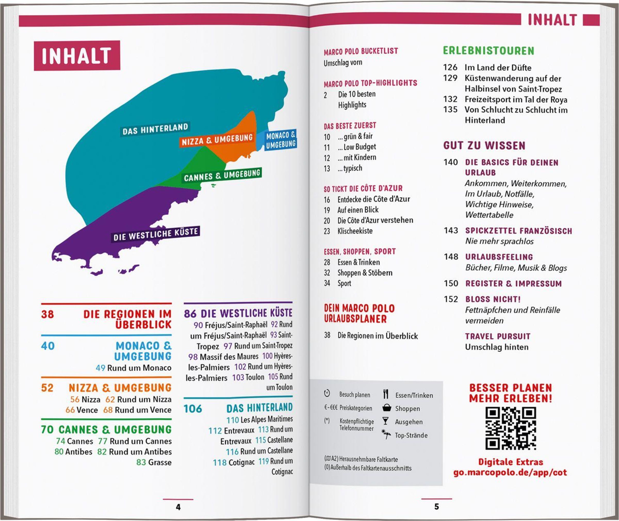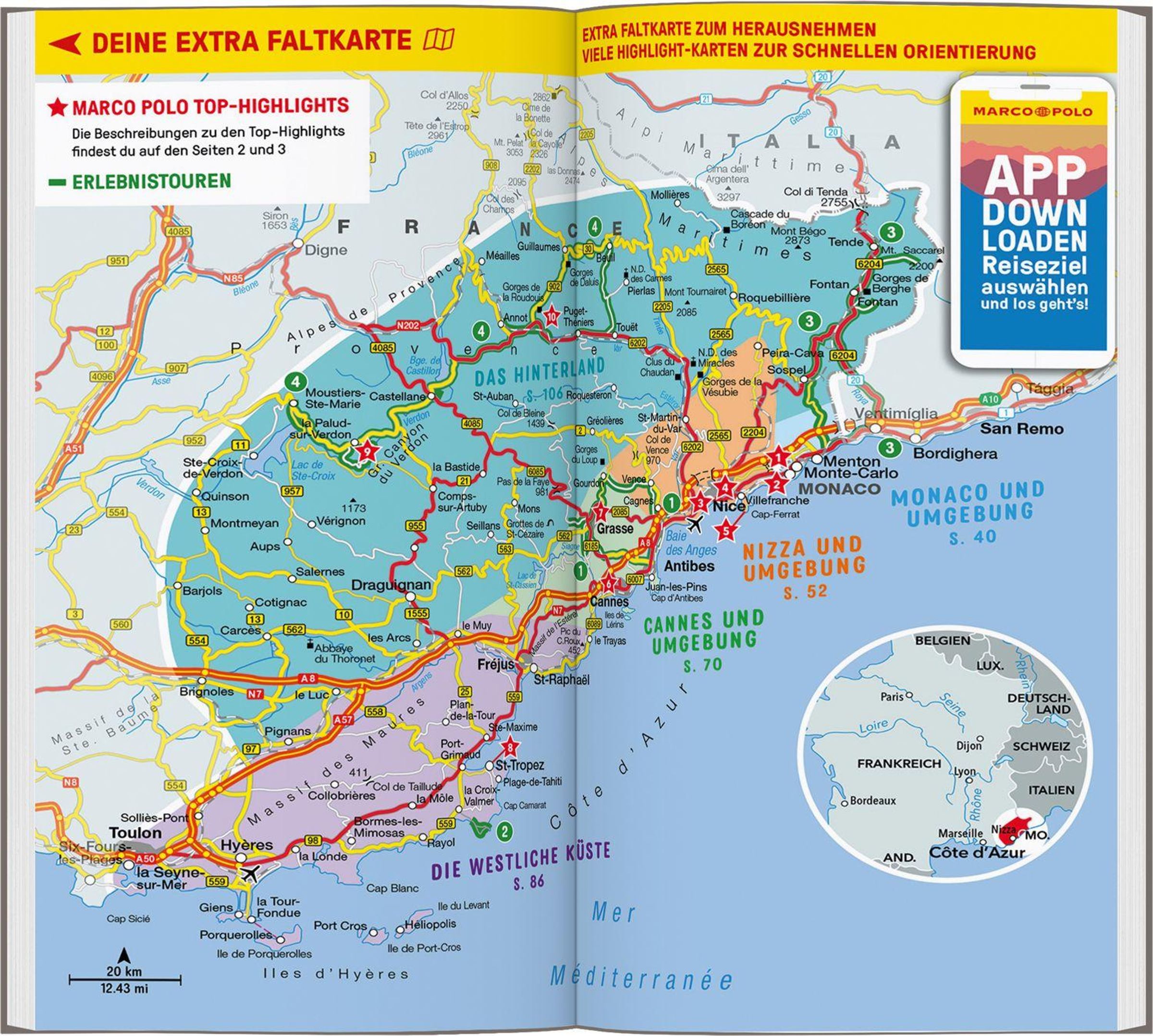 Urlaub zwischen Strandtrubel und Bergdorfstille mit dem MARCO POLO Reiseführer Côte d'Azur Mit Wanderstiefeln auf einen Zweitausender kraxeln und später im Bikini am Sandstrand brutzeln. Oder im Luxusrestaurant am Meer Champagner schlürfen und danach in einem abgeschiedenen Bergdorf unter Platanen dösen. Stilvoll, entspannt, aktiv oder alles auf einmal - an der Côte d'Azur stehen dir alle Urlaubsmöglichkeiten offen! Damit du bei all der Auswahl nichts verpasst, begleitet dich dein MARCO POLO Reiseführer überallhin, gibt dir die besten Tipps und sorgt mit Stadtplänen und Übersichtskarten für Orientierung.