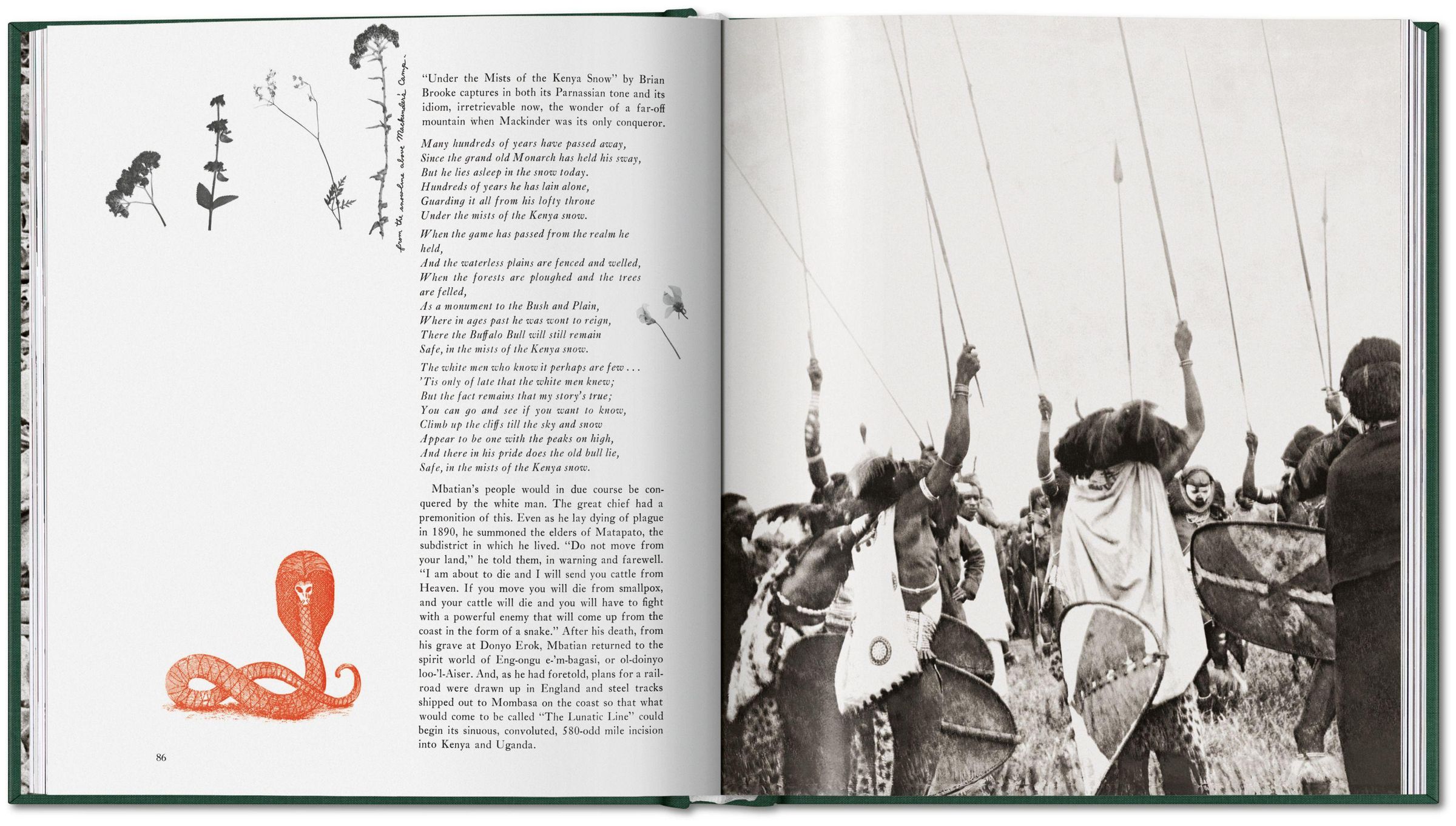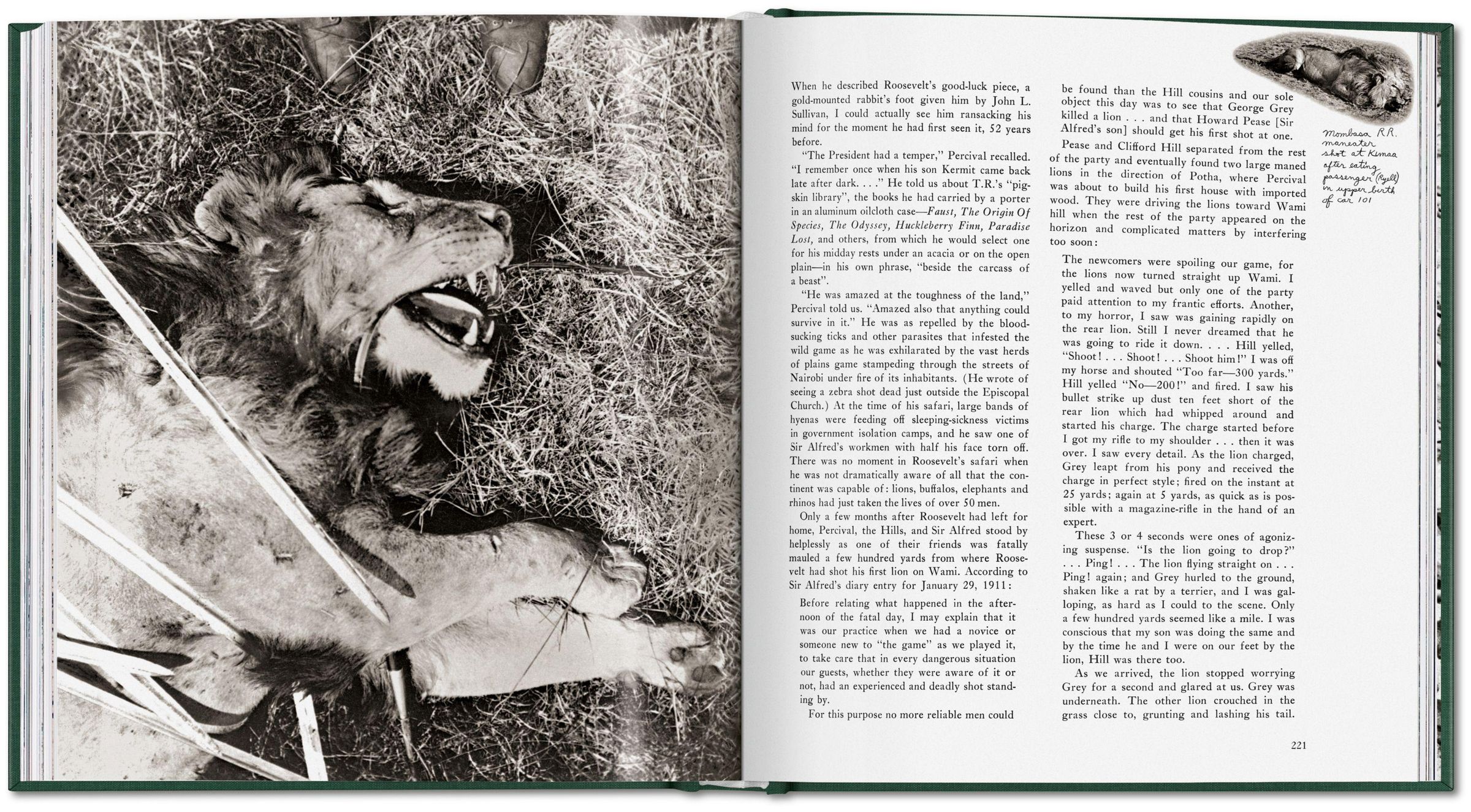 Über zwei Jahrzehnte arbeitete Peter Beard an diesem, seinem wichtigsten und essentiellstem Werk , das seitdem immer wieder mit neuem Material aktualisiert wurde. Beards eigene Fotos und Schriften werden durch historische Aufnahmen und Zitate ergänzt, welche die Saga jener Entdecker, Forscher, Missionare und Großwildjäger erzählen, die auf der Suche nach Abenteuern und als "Botschafter des Fortschritts" im Laufe des 20. Jahrhunderts das Gesicht Afrikas für immer entstellten: Theodore Roosevelt, Frederick Courteney Selous, Karen Blixen (Isak Dinesen), Philip Percival, J. A. Hunter, Ernest Hemingway undJ. H. Patterson .