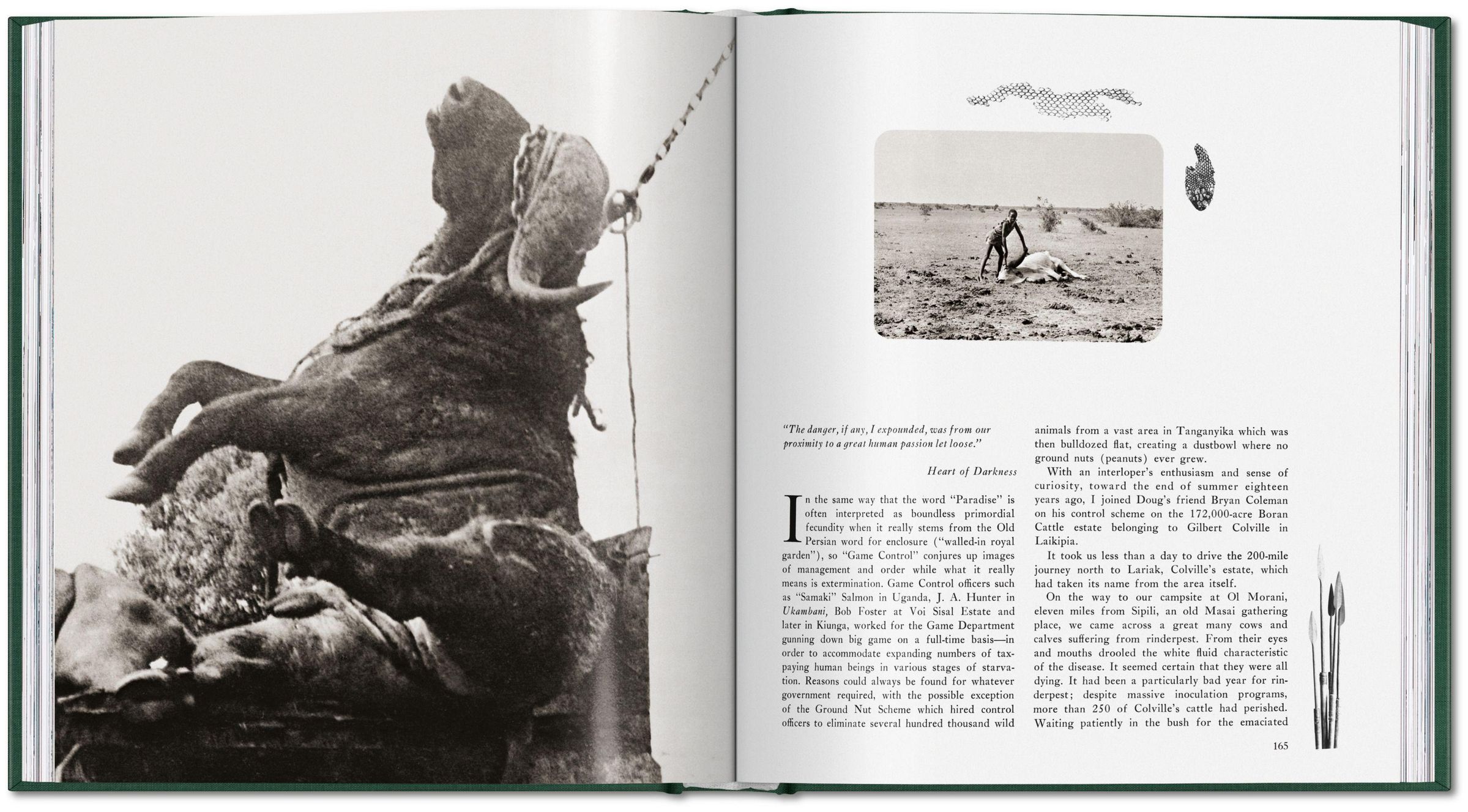 "Je tiefer der weiße Mann nach Afrika vordrang, desto schneller entwich das Leben aus den Steppen und dem Buschland... es verschwand in der unüberschaubaren Masse an Jagdtrophäen, Fellen und Kadavern." - Peter Beard