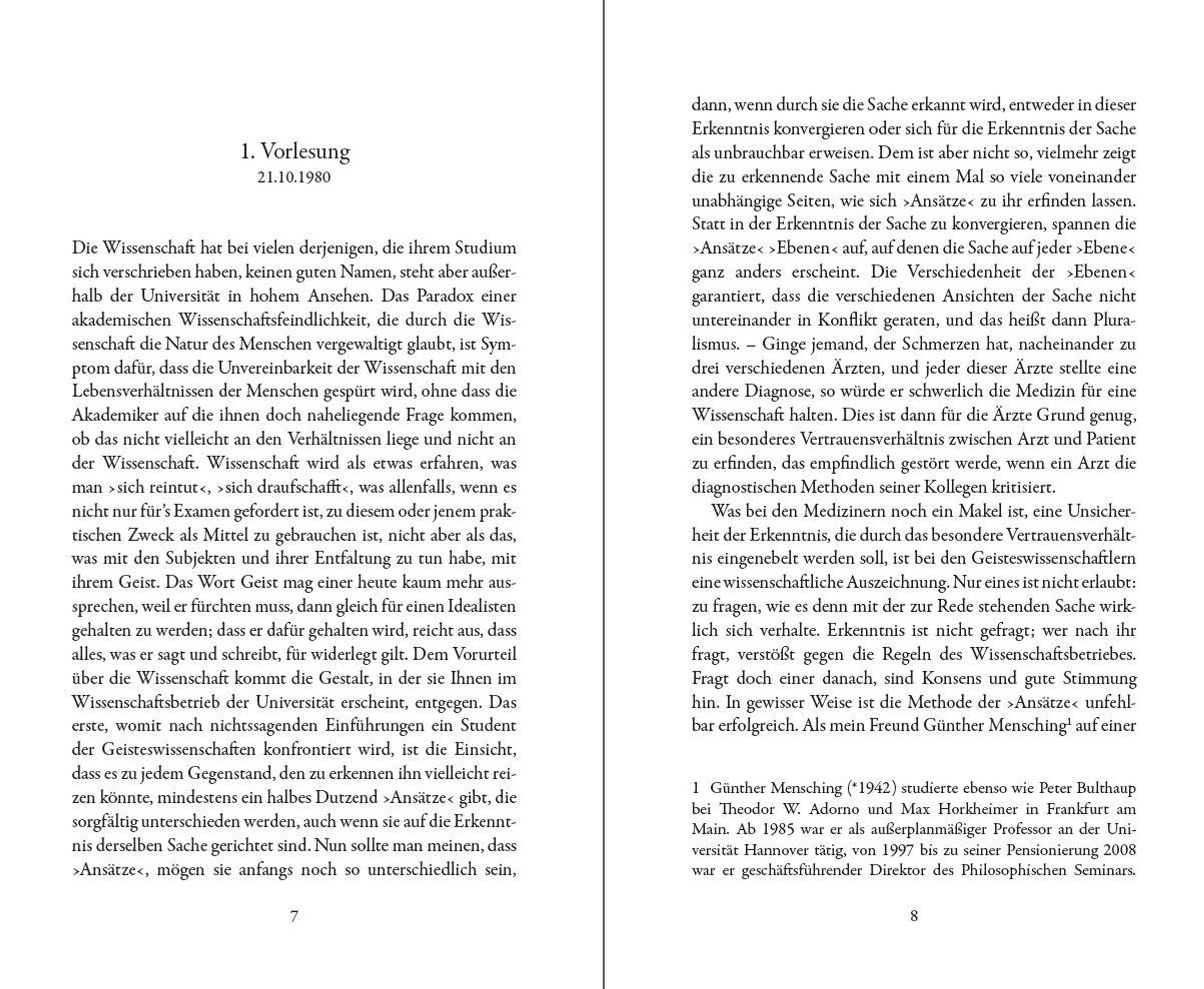 Mit der Vorlesung zum Wissenschaftsbegriff des Deutschen Idealismus startet die Edition einer Reihe von Vorlesungen Peter Bulthaups. Die vorliegende Vorlesung galt ihm als seine Einführung in die Philosophie. Für Bulthaups Philosophie war es zentral, den Wissenschaftsbegriff des Deutschen Idealismus zu erläutern. Bulthaup wandte sich damit gegen die an Philosophie-Instituten gängige Praxis, mit einführenden Vorlesungen zur 'Wissenschaftstheorie' oder mit Überblicksvorlesungen zur Geschichte der Philosophie zu beginnen. Eine textnahe Darlegung dessen, womit Hegel in der Vorrede zur Phänomenologie des Geistes sein Philosophieren eröffnete, sollte für die Studierenden aufschließen, wie anzufangen sei. Bulthaup verstand seine Vorlesungen stets als Fortführung der kritischen Theorie. Nach Adornos Tod und der Integration der Erben Adornos in den Mainstream beharrte er darauf, durch Reflexion der philosophischen Grundlagen der kritischen Theorie deren Gesellschaftstheorie freizusetzen.