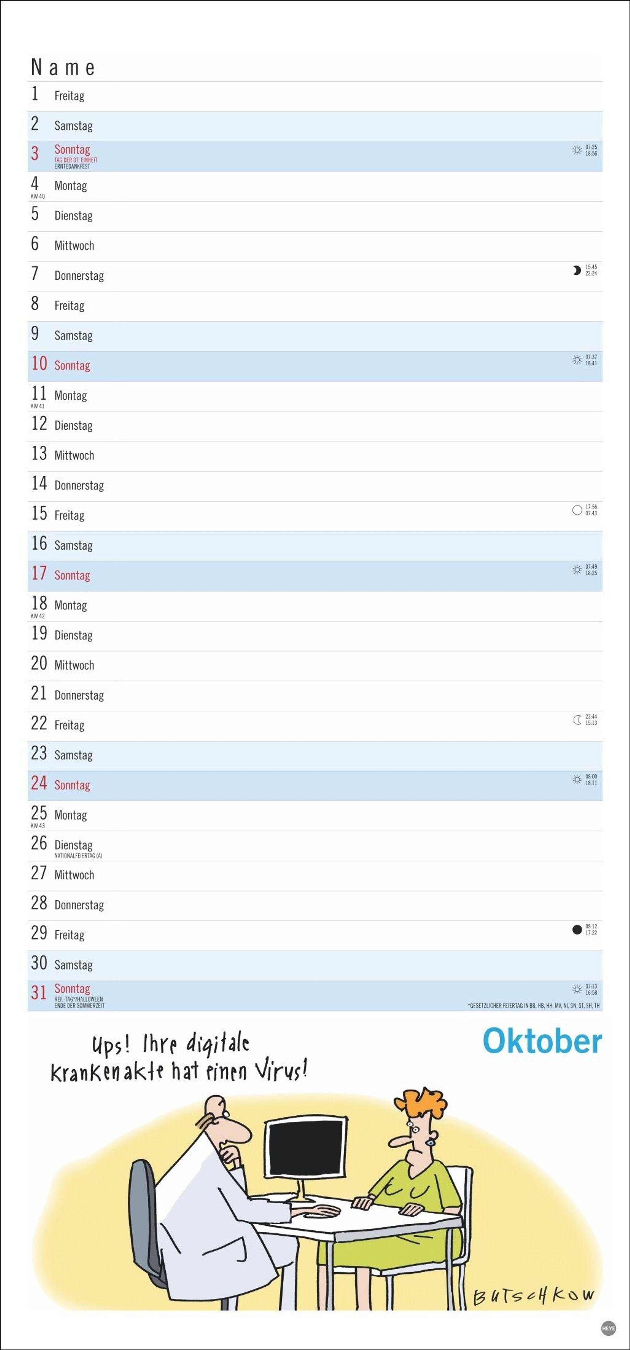 Gut gelaunt die Freizeitaktivitäten im Ruhestand planen: Monatskalender mit den herrlich-pointierten Peter Butschkow-Cartoons