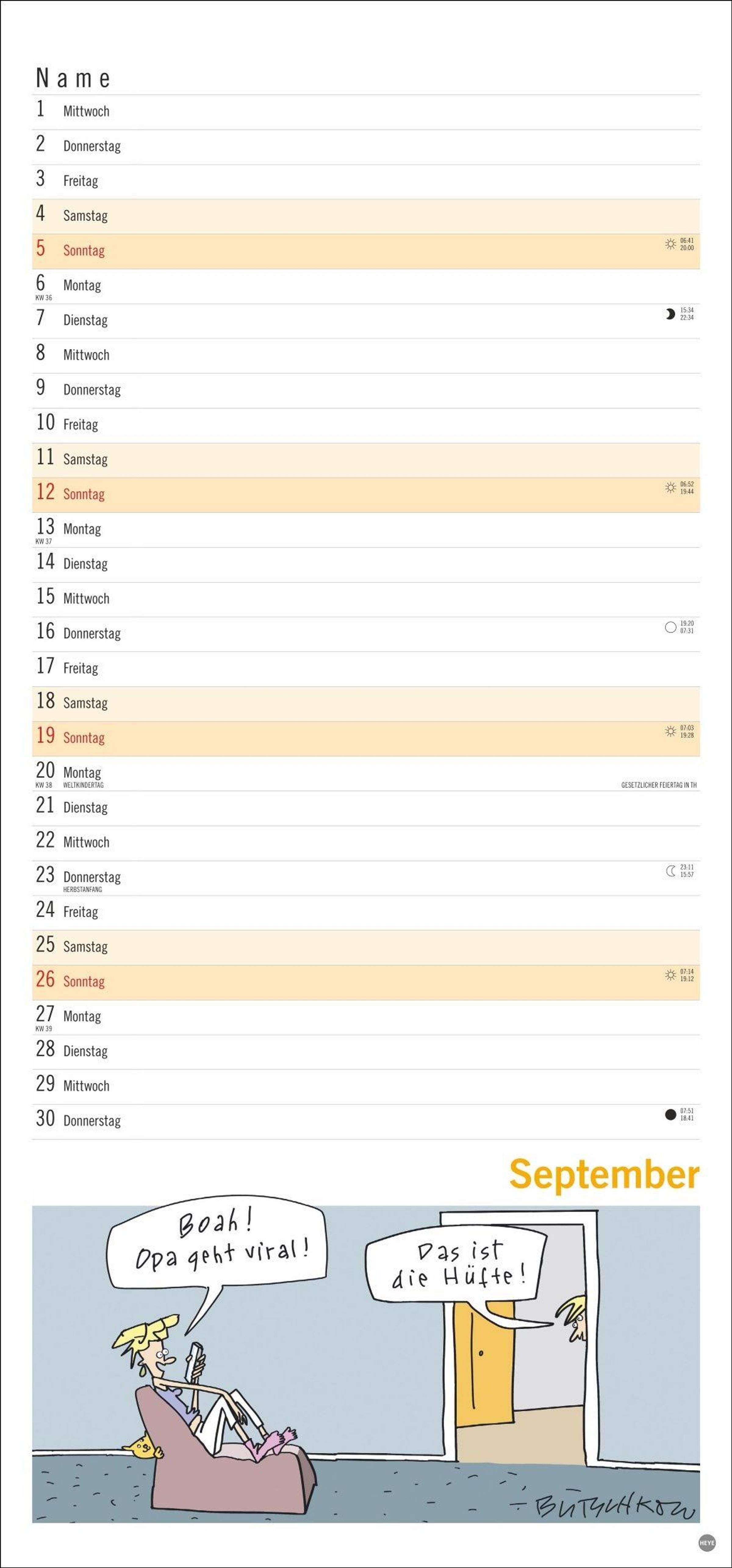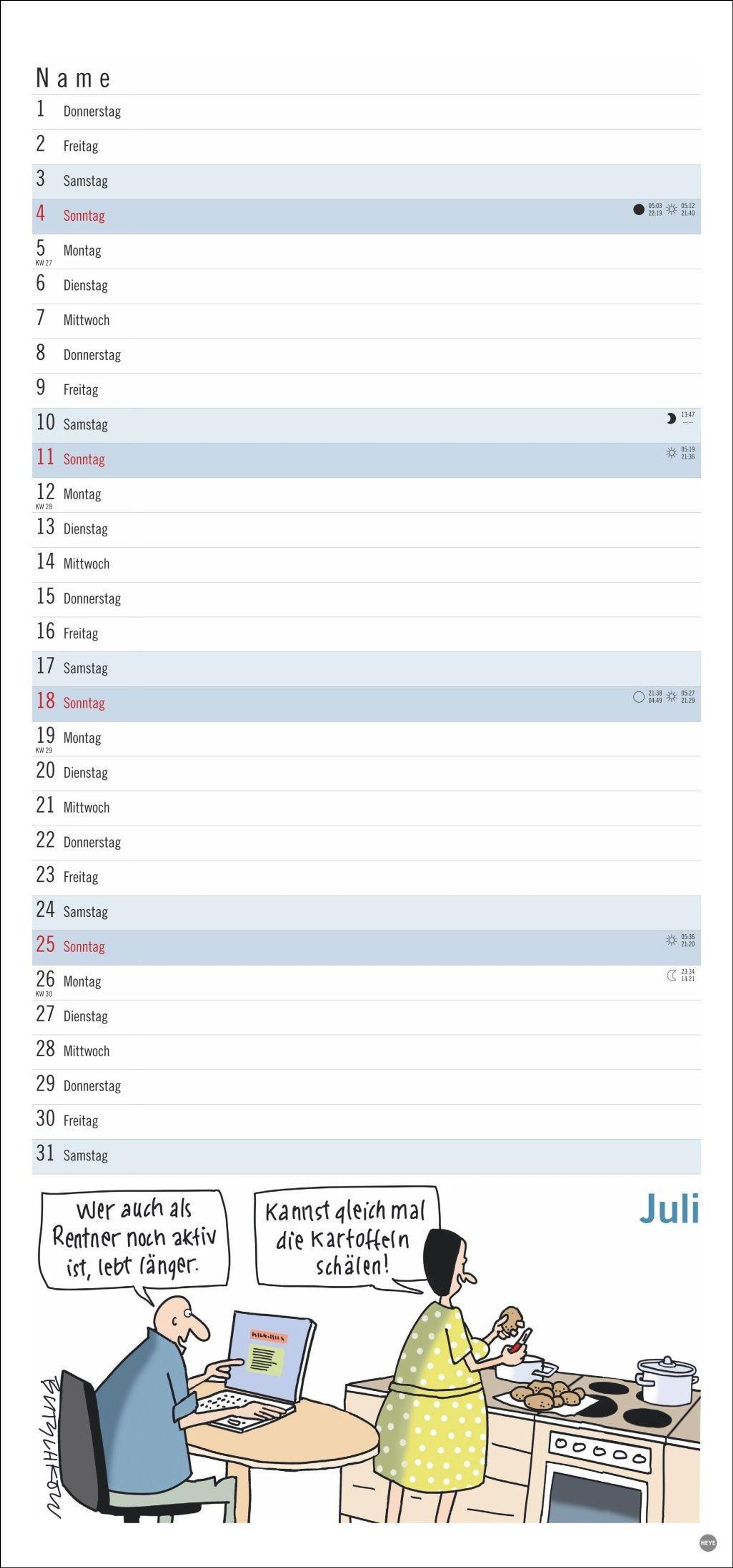 - Der humorvolle Rentner-Kalender mit Cartoons über das Leben im besten Alter. Freizeit-Planer mit freier Spalteneinteilung. 21 x 45 cm