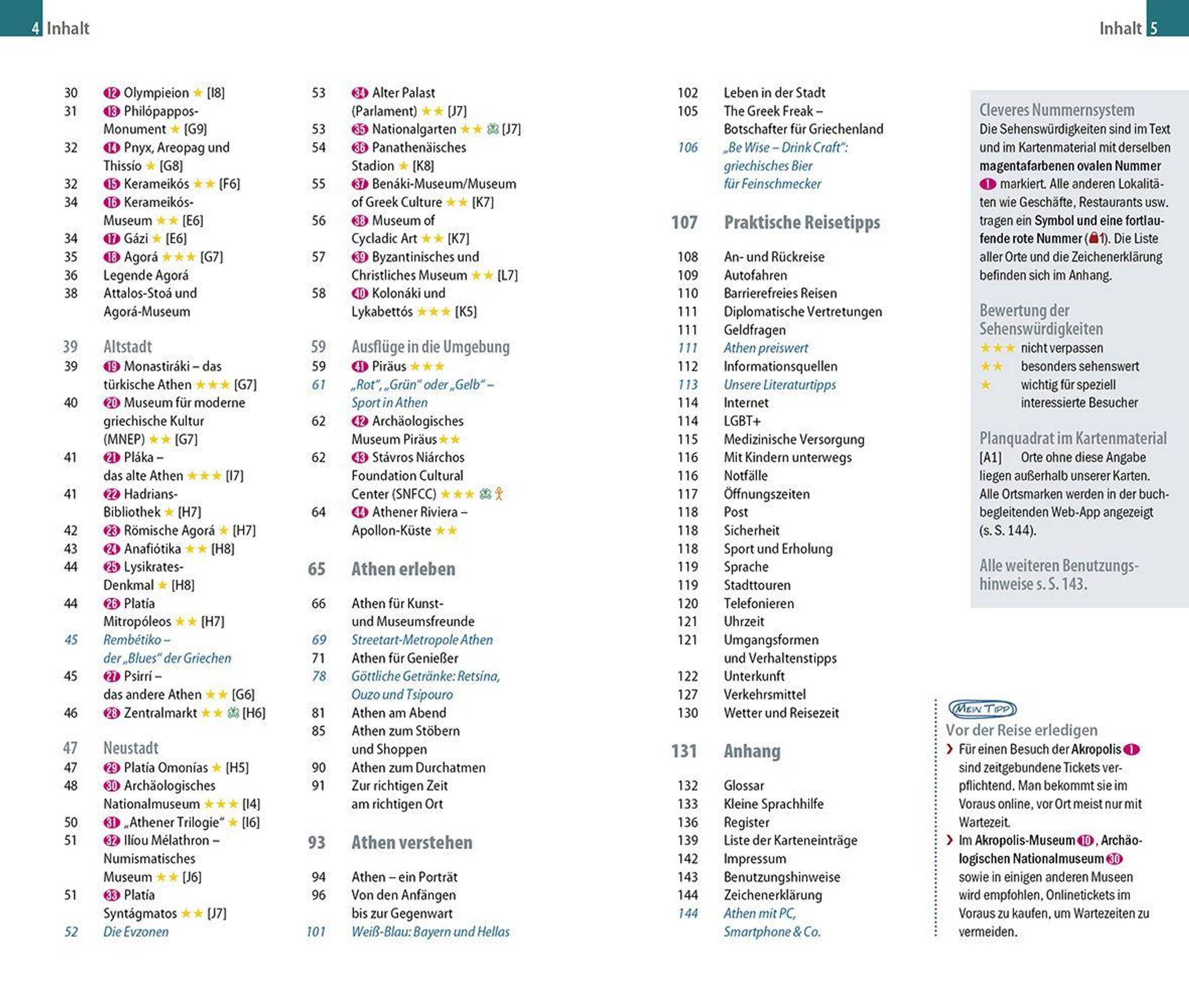 Dazu: kostenlose Web-App für Smartphone, Tablet und PC mit Stadtplan- und Satellitenansichten passend zum Text, Routenführung zu allen beschriebenen Sehenswürdigkeiten, Verlauf der Stadtspaziergänge, seitenbezogenen Updates nach Redaktionsschluss sowie einem Mini-Audiotrainer Griechisch