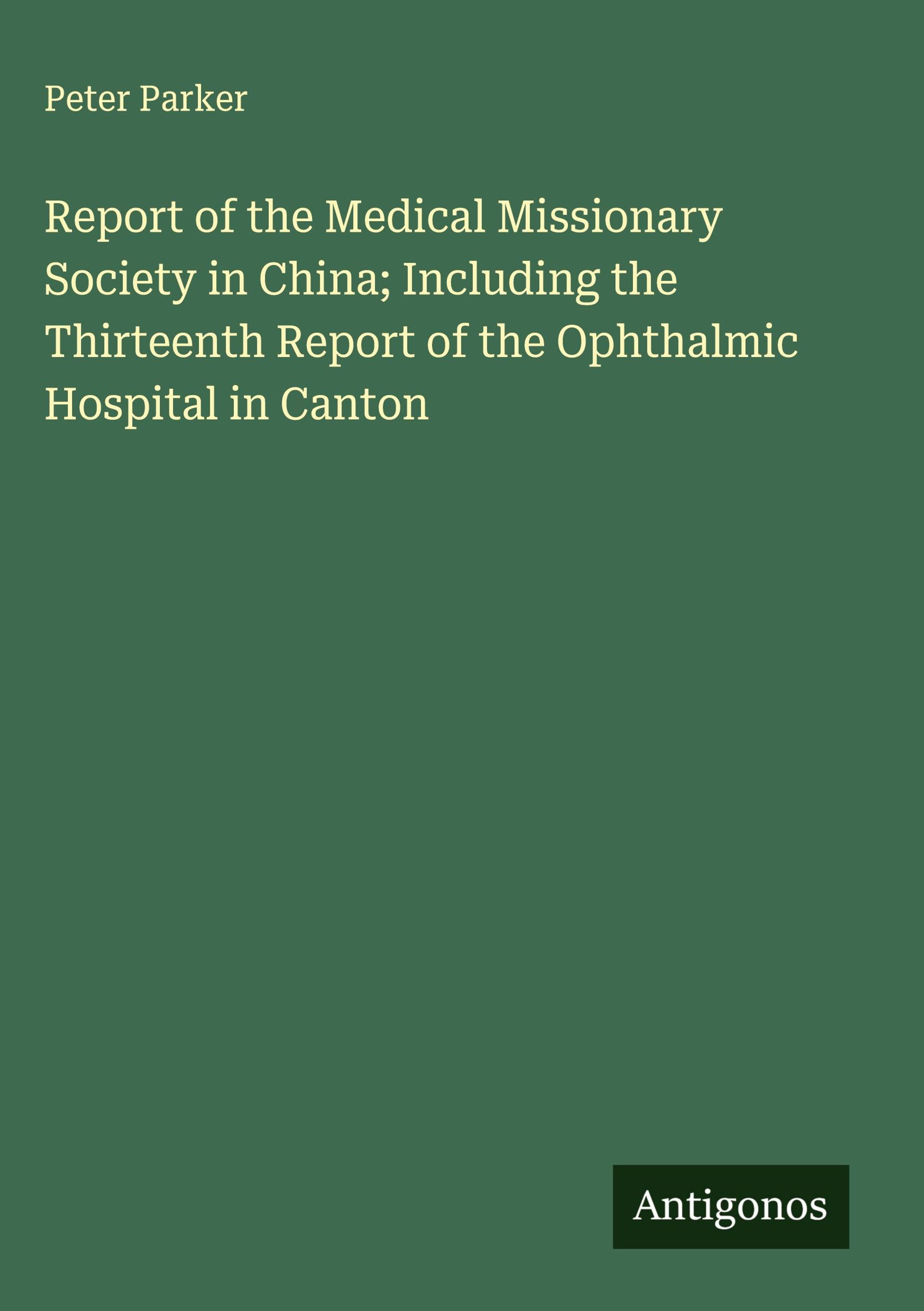 Peter Parker: Report of the Medical Missionary Society in China; Including the Thirteenth Report of the..., Gebunden