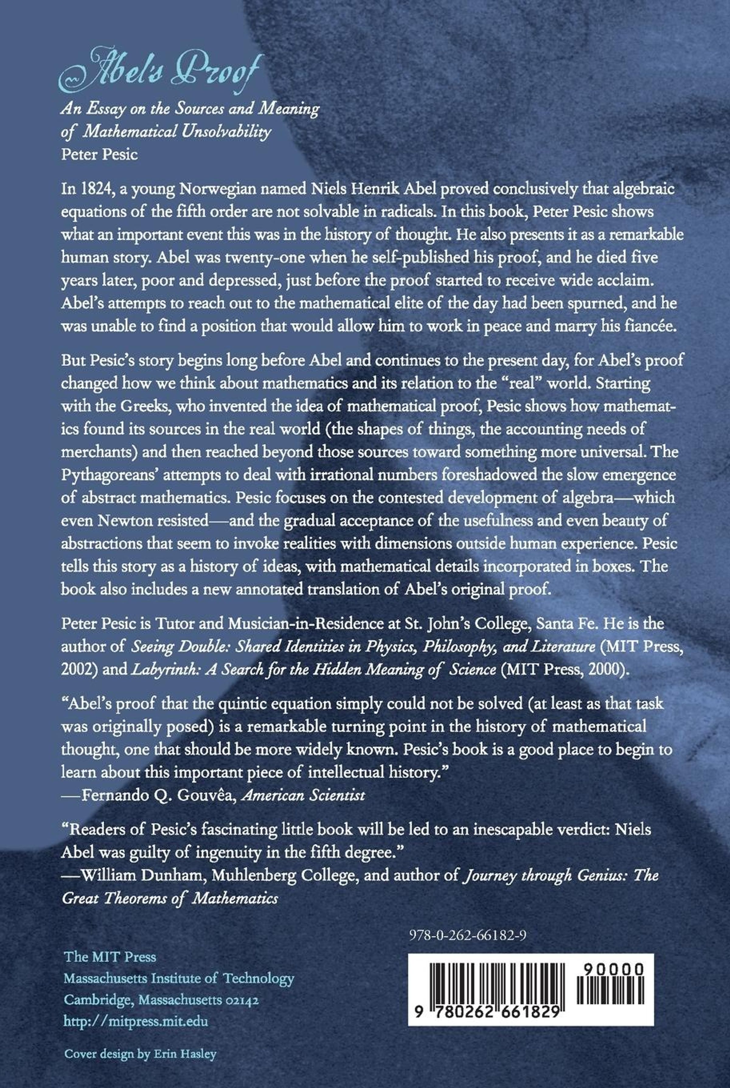 But Pesic's story begins long before Abel and continues to the present day, for Abel's proof changed how we think about mathematics and its relation to the "real" world. Starting with the Greeks, who invented the idea of mathematical proof, Pesic shows how mathematics found its sources in the real world (the shapes of things, the accounting needs of merchants) and then reached beyond those sources toward something more universal. The Pythagoreans' attempts to deal with irrational numbers foreshadowed the slow emergence of abstract mathematics. Pesic focuses on the contested development of algebra---which even Newton resisted---and the gradual acceptance of the usefulness and perhaps even beauty of abstractions that seem to invoke realities with dimensions outside human experience. Pesic tells this story as a history of ideas, with mathematical details incorporated in boxes. The book also includes a new annotated translation of Abel's original proof.
