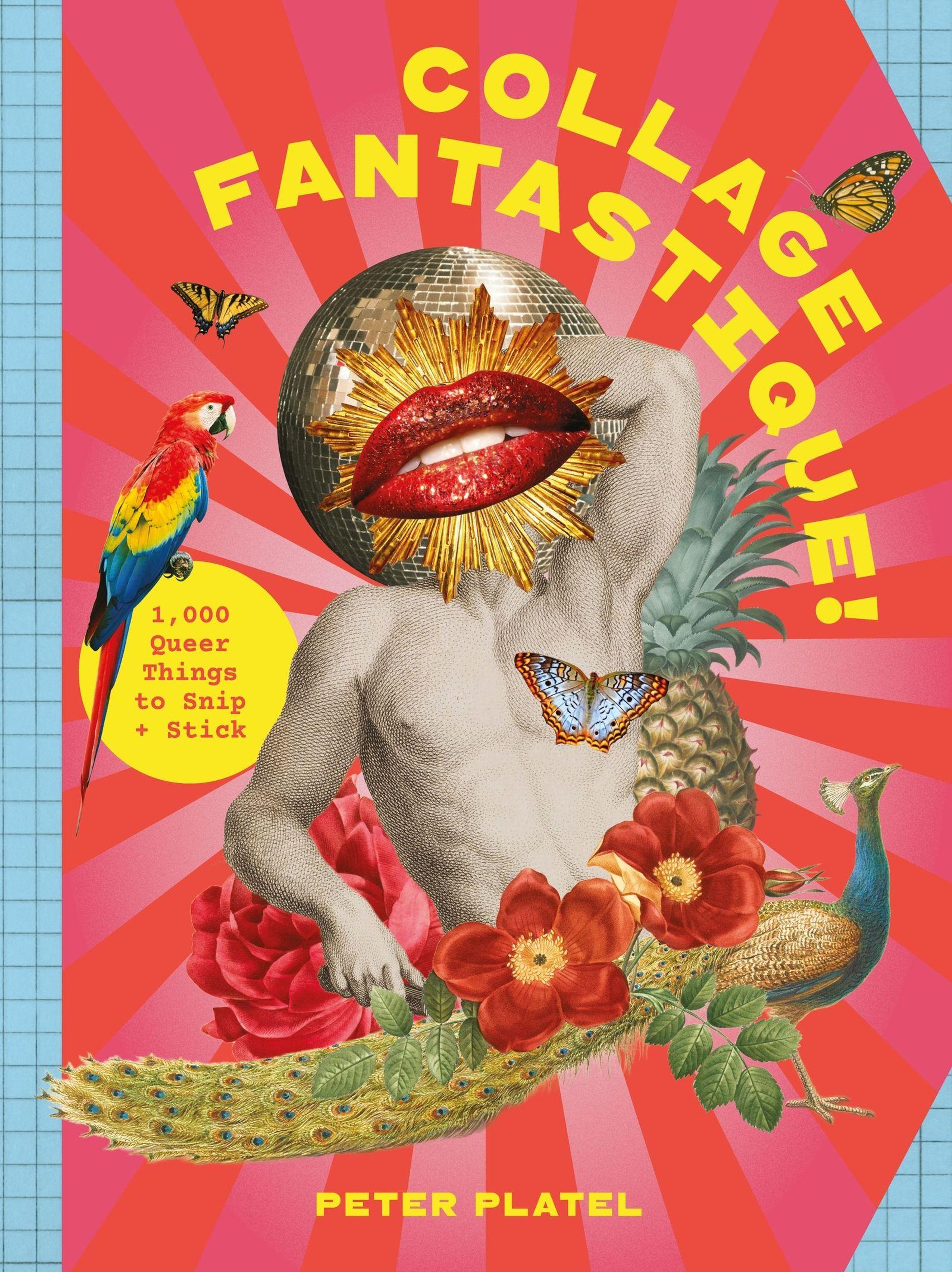 "Collage Fantastique!" steht in gelben Buchstaben auf rotem Hintergrund mit Sonnenstrahlen-Design. Eine surreale, bunte Illustration., Buch